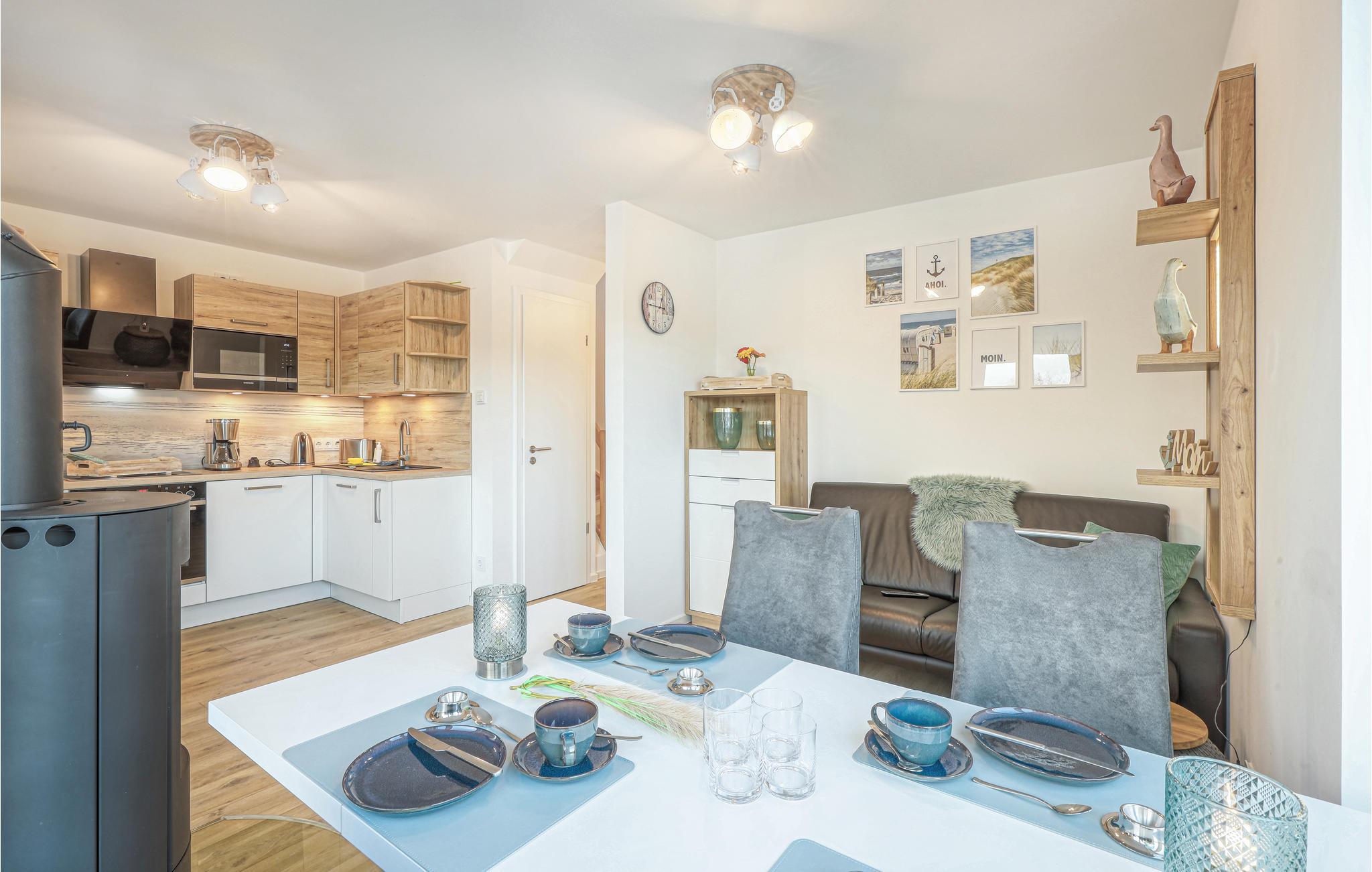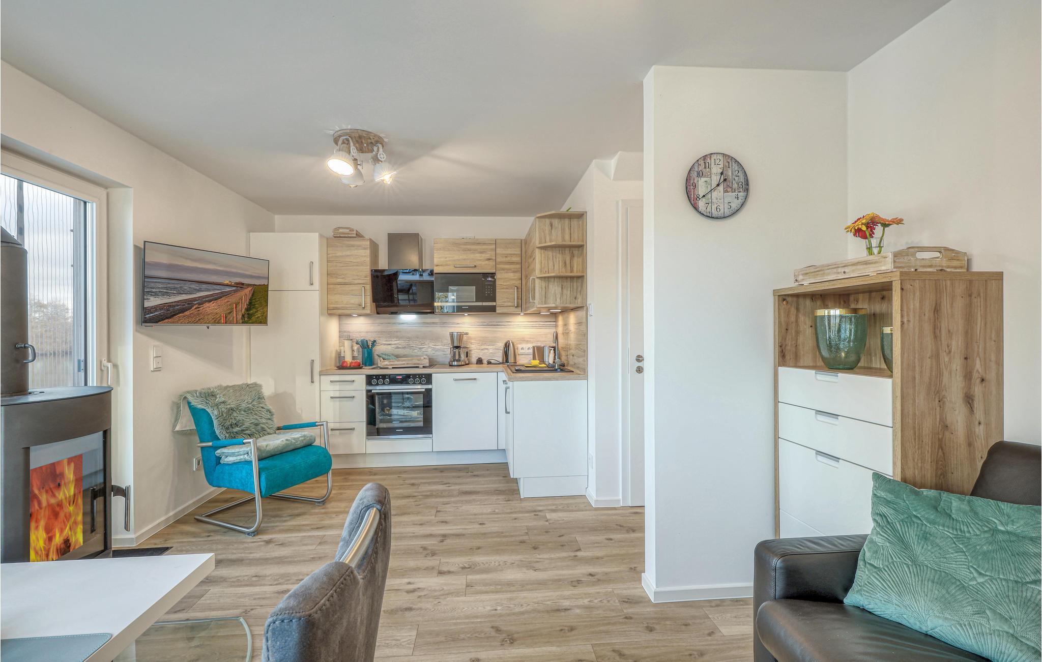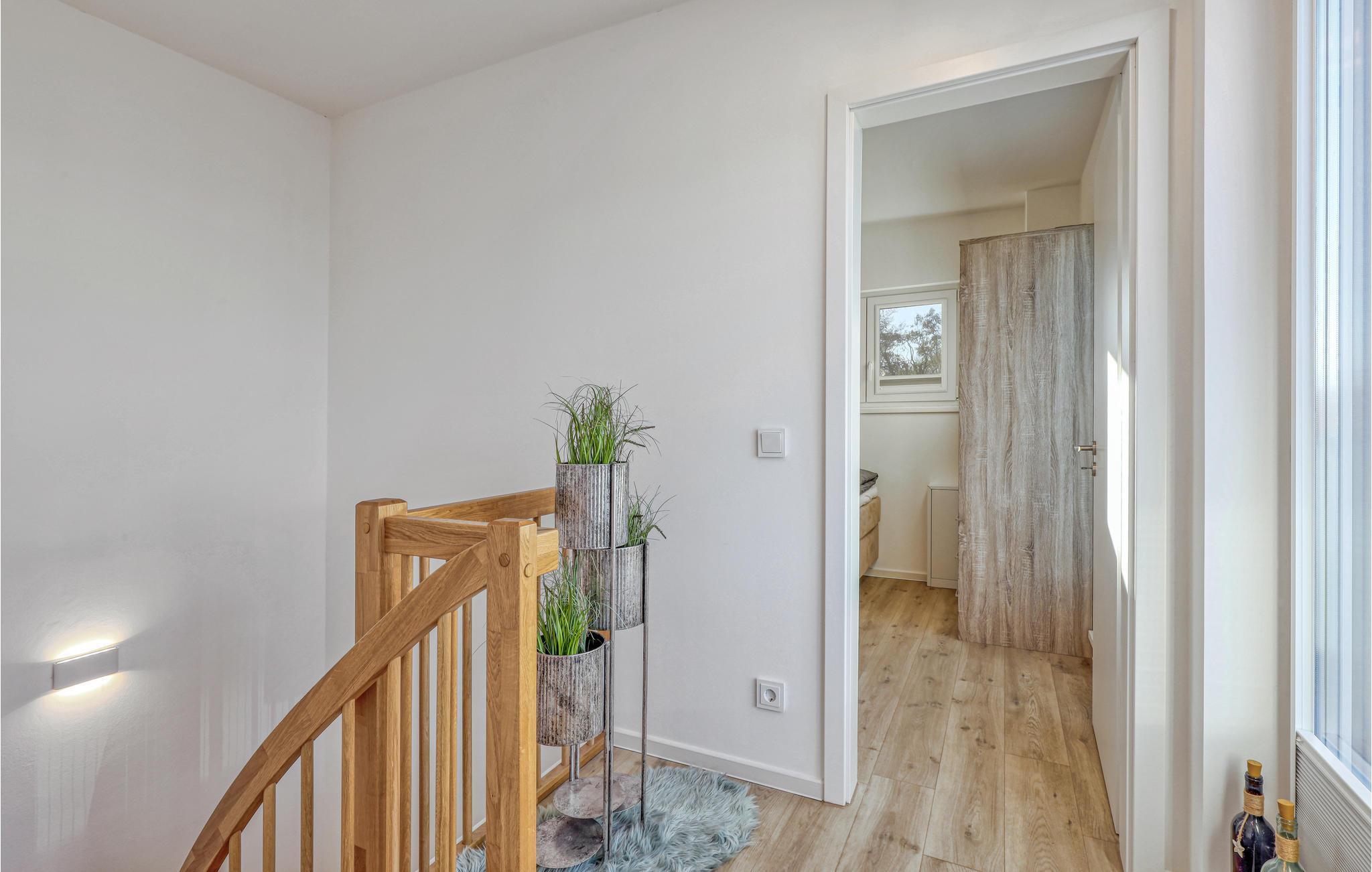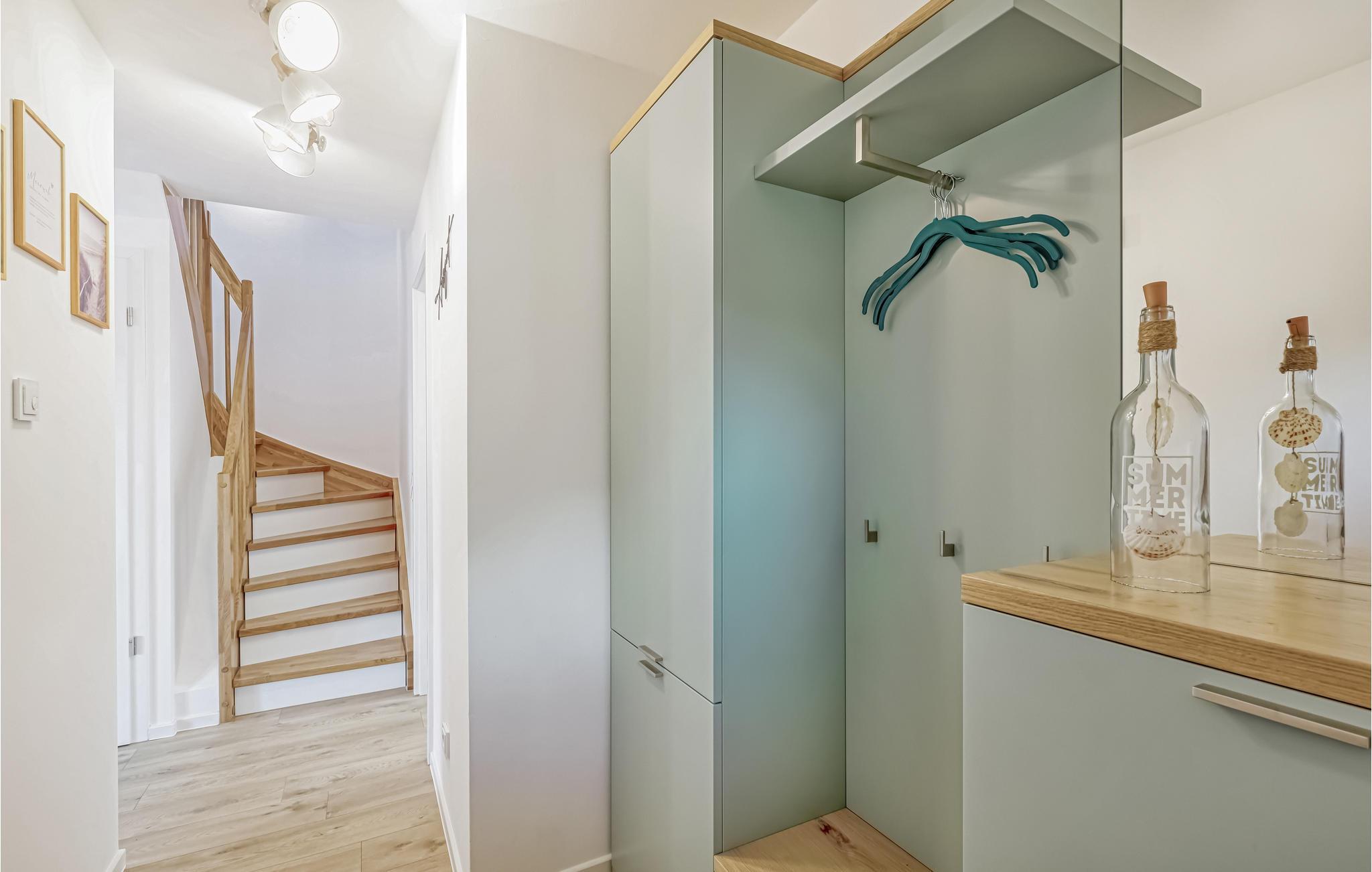 Vom Erdgeschoss gelangt man über eine geschwungene Treppe in das Obergeschoss des Doppelhauses, wo zwei geräumige Schlafzimmer auf Sie warten. Hier können Sie die schöne Nordseeluft von einem Balkon genießen, welcher von beiden Räumen aus zugänglich ist. Hochwertige Möbel und eine gelungene Raumaufteilung machen dieses Ferienhaus zu einem traumhaften Urlaubsdomizil.