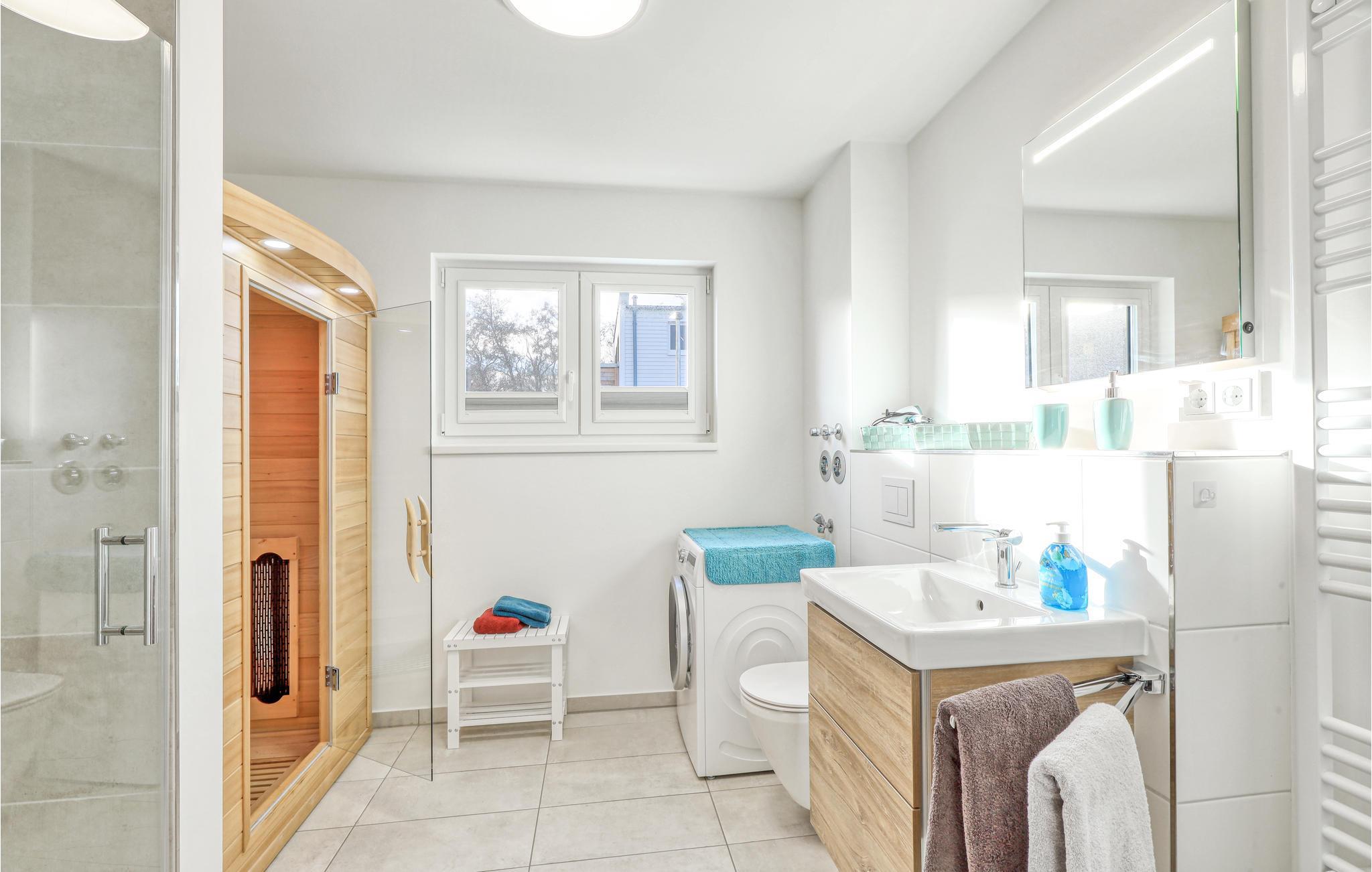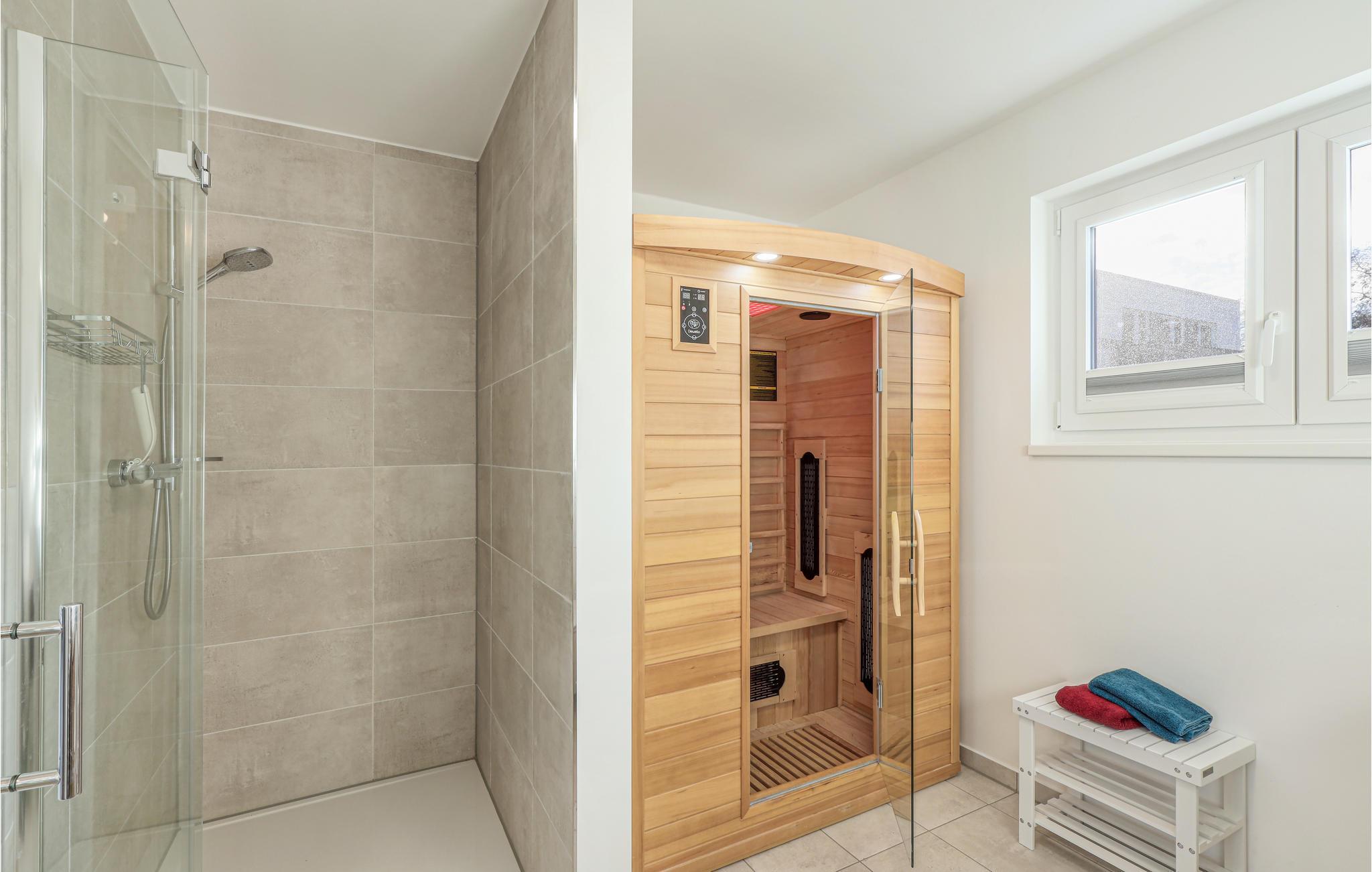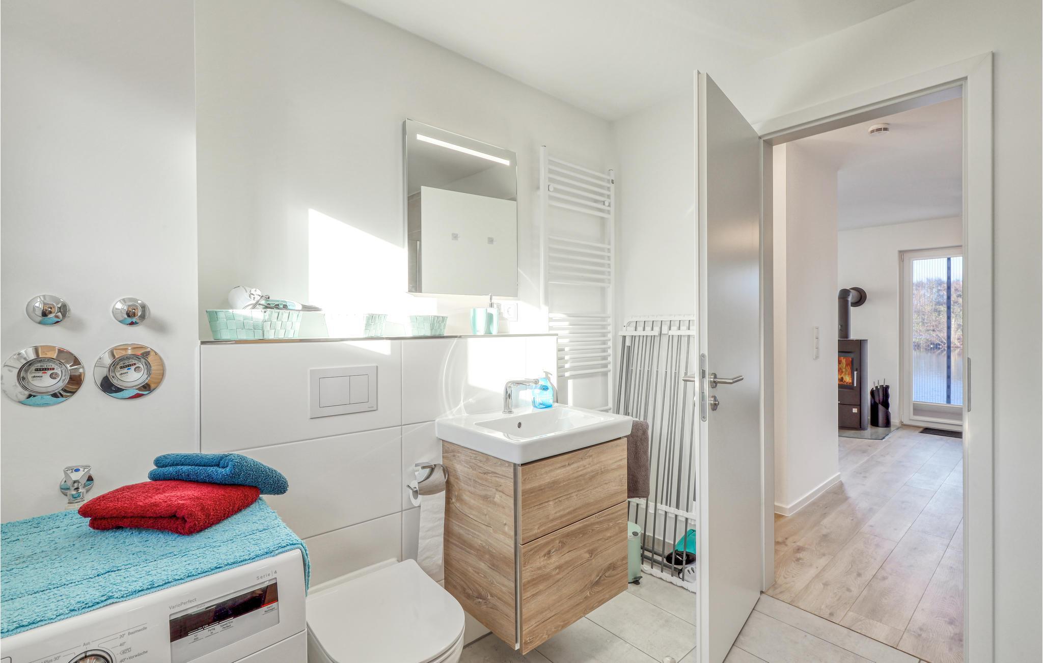 Ihr Haus erstreckt sich über 2 Etagen. Im Erdgeschoss befindet sich ein offener, gemütlicher Wohnbereich mit angrenzender Gartenterrasse und einer modernen Einbauküche, welche durch große Fensterflächen zum Verweilen einlädt. An kalten Tagen können Sie es sich vor dem eingebauten Kamin gemütlich machen. Ein helles Badezimmer mit Duschkabine und Infrarotsauna sowie eine Abstellmöglichkeit unterhalb der Treppe ergänzen die Etage.