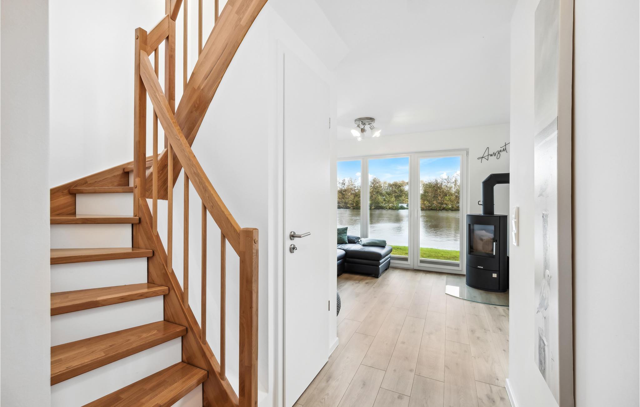 Ihr Haus erstreckt sich über 2 Etagen. Im Erdgeschoss befindet sich ein offener, gemütlicher Wohnbereich mit angrenzender Gartenterrasse und einer modernen Einbauküche, welche durch große Fensterflächen zum Verweilen einlädt. An kalten Tagen können Sie es sich vor dem eingebauten Kamin gemütlich machen. Ein helles Badezimmer mit Duschkabine sowie eine Abstellmöglichkeit unterhalb der Treppe ergänzen die Etage.