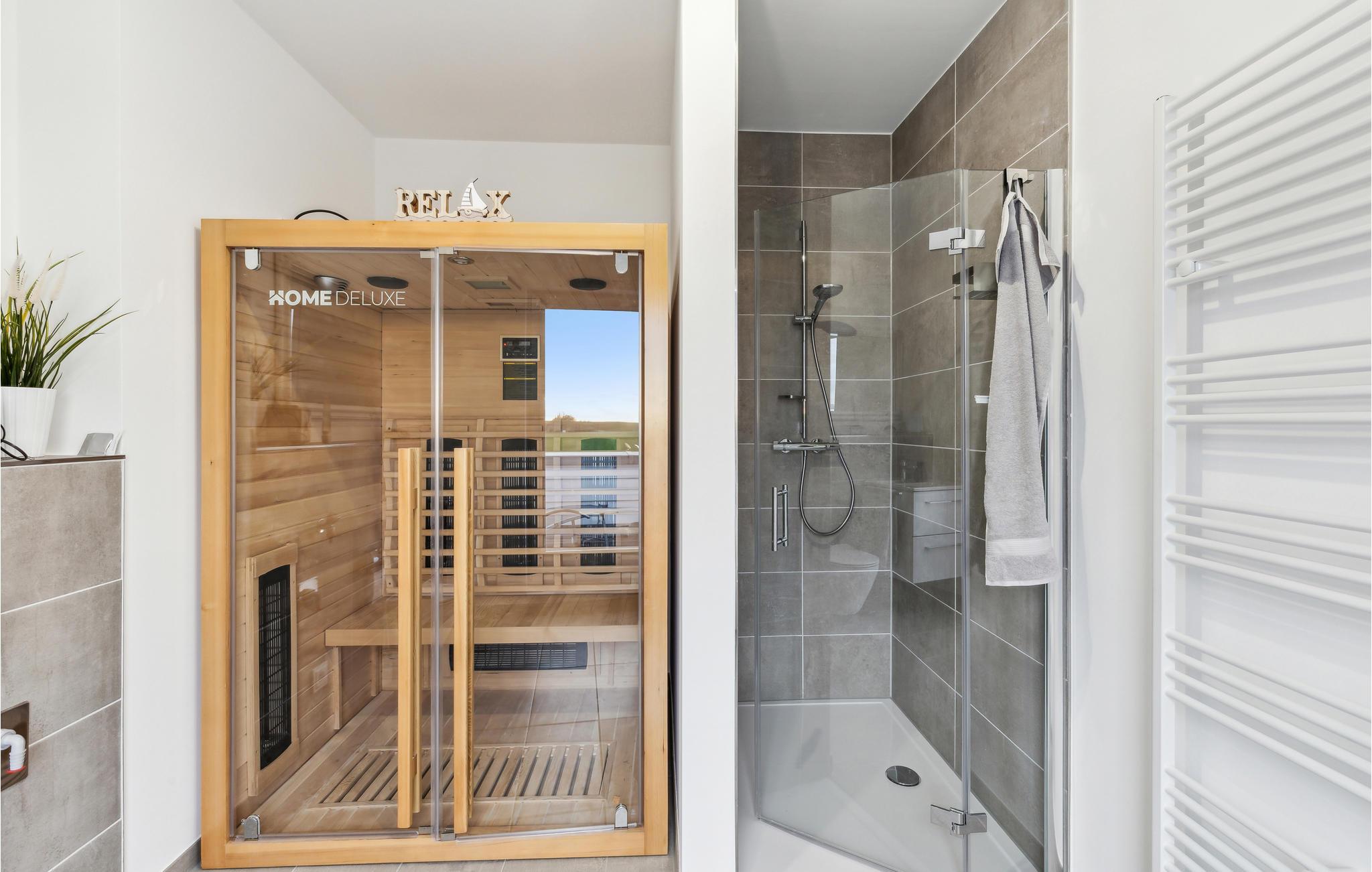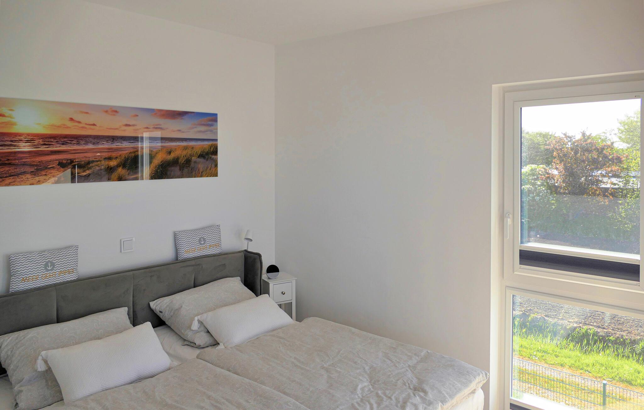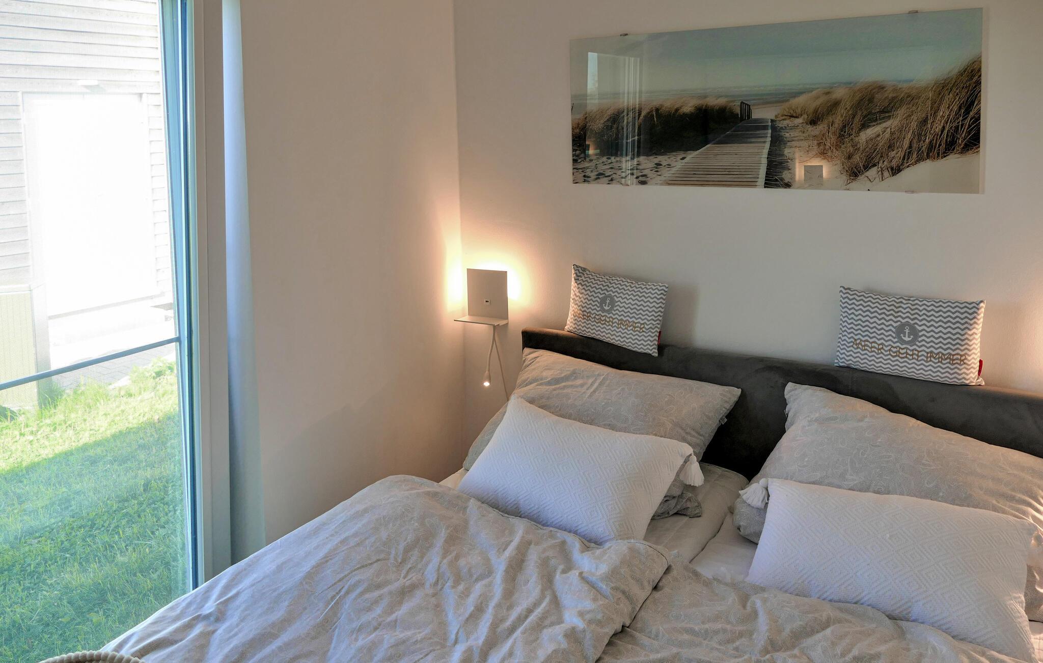 Dieses Haus erstreckt sich über zwei Etagen. Im Erdgeschoss befindet sich ein offener, gemütlicher Wohnbereich mit angrenzender Gartenterrasse und einer modernen Einbauküche, welche durch bodentiefe Fenster zum Verweilen einlädt. An kalten Tagen können Sie es sich vor dem eingebauten Kamin gemütlich machen. Ein Duschbad und ein Schlafzimmer säumen den Flur zu beiden Seiten und eine seitlich hinter dem Bad angelegte Treppe führt in das Obergeschoss. Hier befindet sich ein Schlafzimmer und ein Badezimmer mit Duschkabine und Infrarotsauna, die zum Entspannen einladen. Hier können Sie die schöne Nordseeluft von einem Balkon genießen, welcher von beiden Räumen aus zugänglich ist. Hochwertige Möbel und eine gelungene Raumaufteilung machen dieses Ferienhaus zu einem traumhaften Urlaubsdomizil.