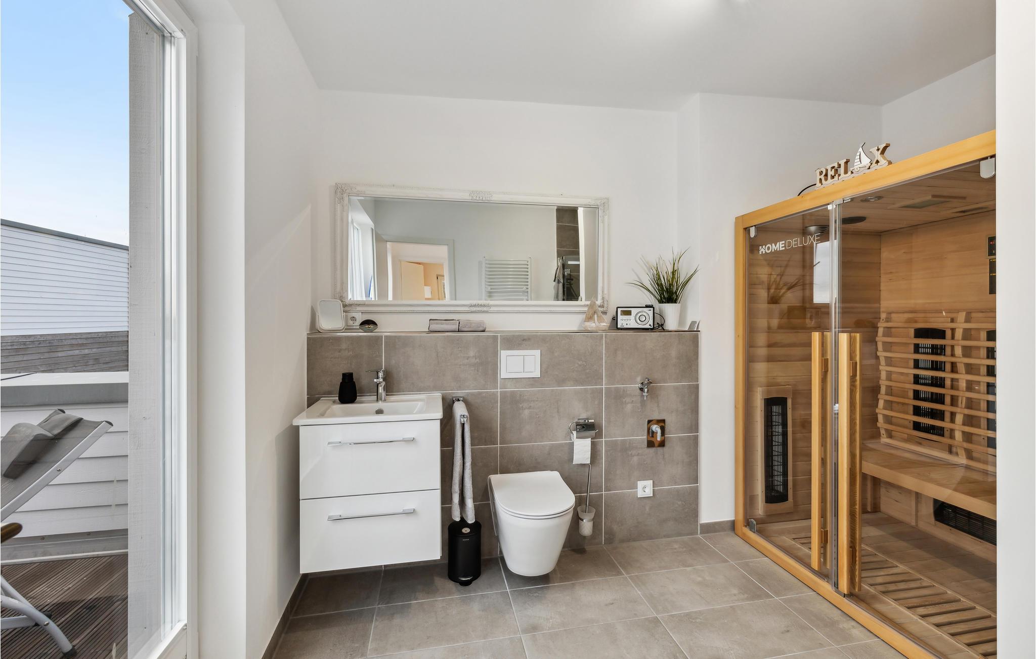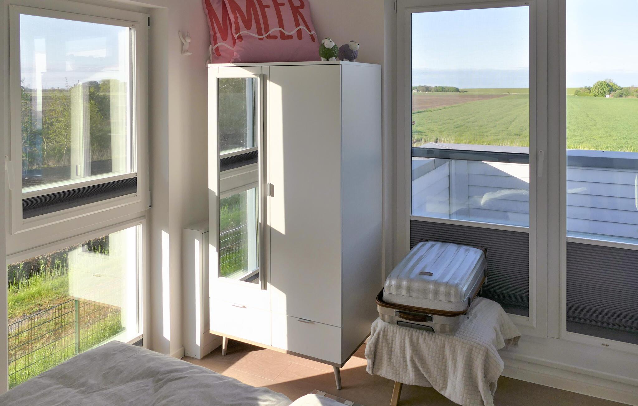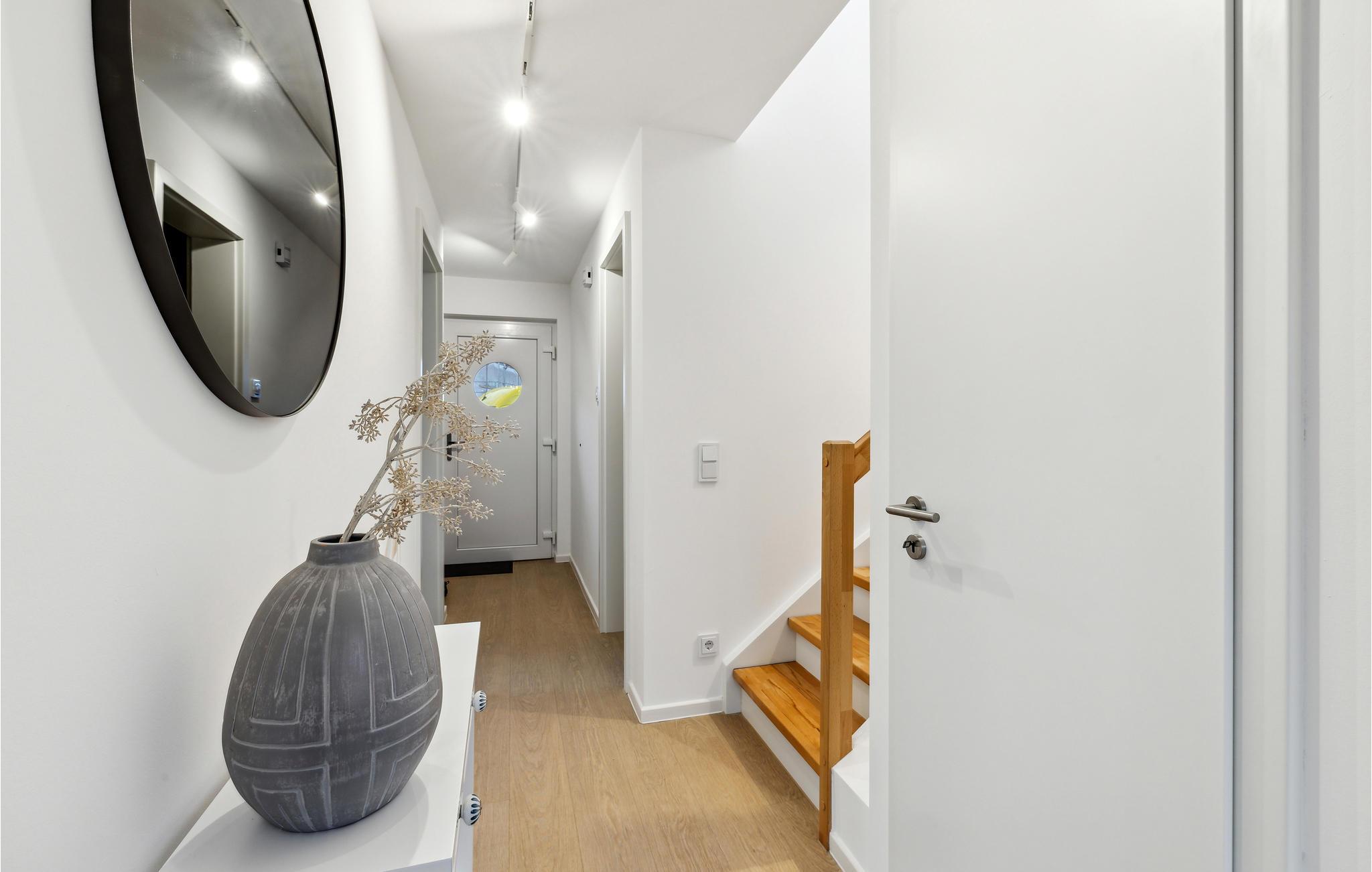 Dieses Haus erstreckt sich über zwei Etagen. Im Erdgeschoss befindet sich ein offener, gemütlicher Wohnbereich mit angrenzender Gartenterrasse und einer modernen Einbauküche, welche durch bodentiefe Fenster zum Verweilen einlädt. An kalten Tagen können Sie es sich vor dem eingebauten Kamin gemütlich machen. Ein Duschbad und ein Schlafzimmer säumen den Flur zu beiden Seiten und eine seitlich hinter dem Bad angelegte Treppe führt in das Obergeschoss. Hier befindet sich ein Schlafzimmer und ein Badezimmer mit Duschkabine und Infrarotsauna, die zum Entspannen einladen. Hier können Sie die schöne Nordseeluft von einem Balkon genießen, welcher von beiden Räumen aus zugänglich ist. Hochwertige Möbel und eine gelungene Raumaufteilung machen dieses Ferienhaus zu einem traumhaften Urlaubsdomizil.