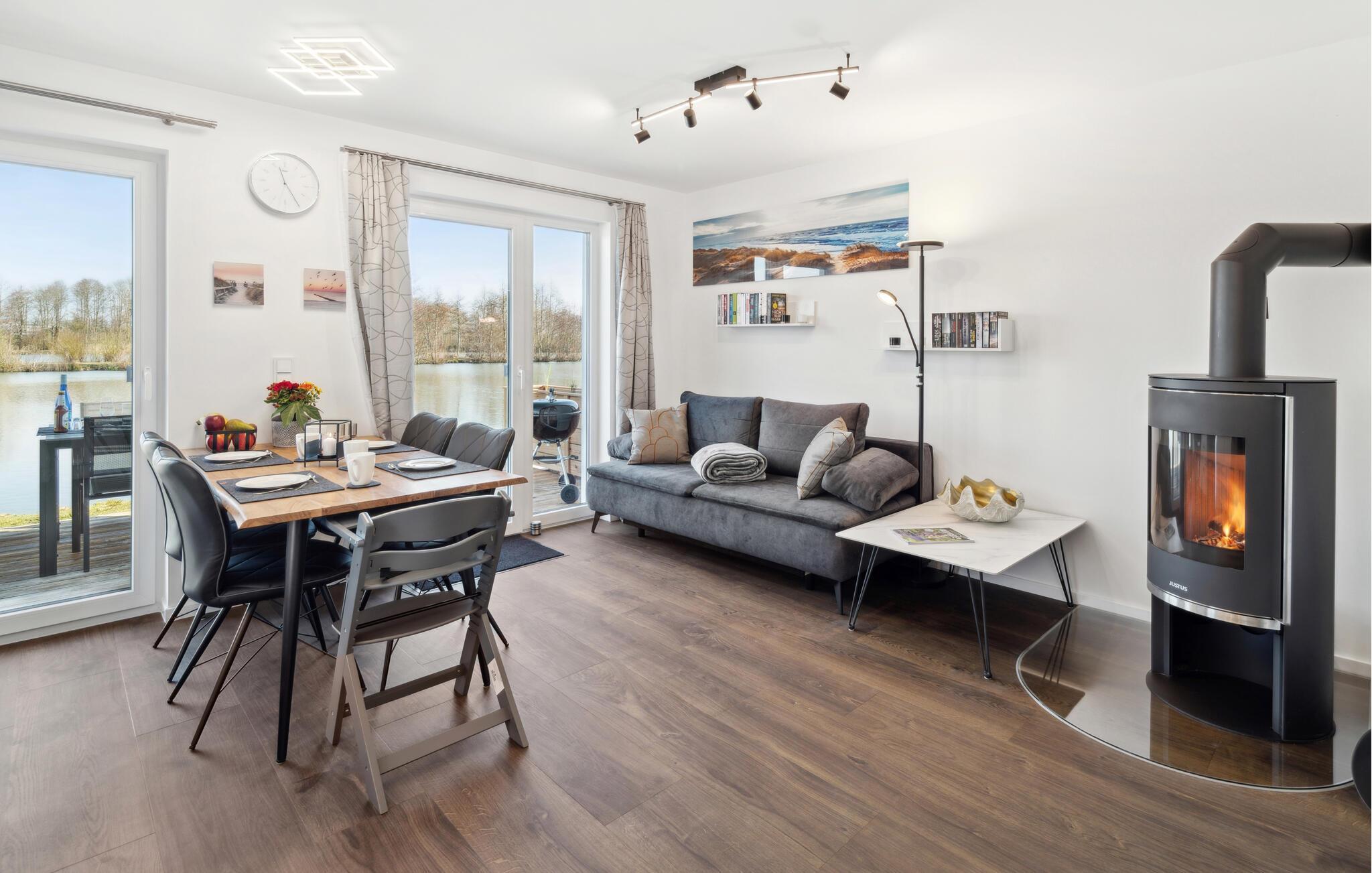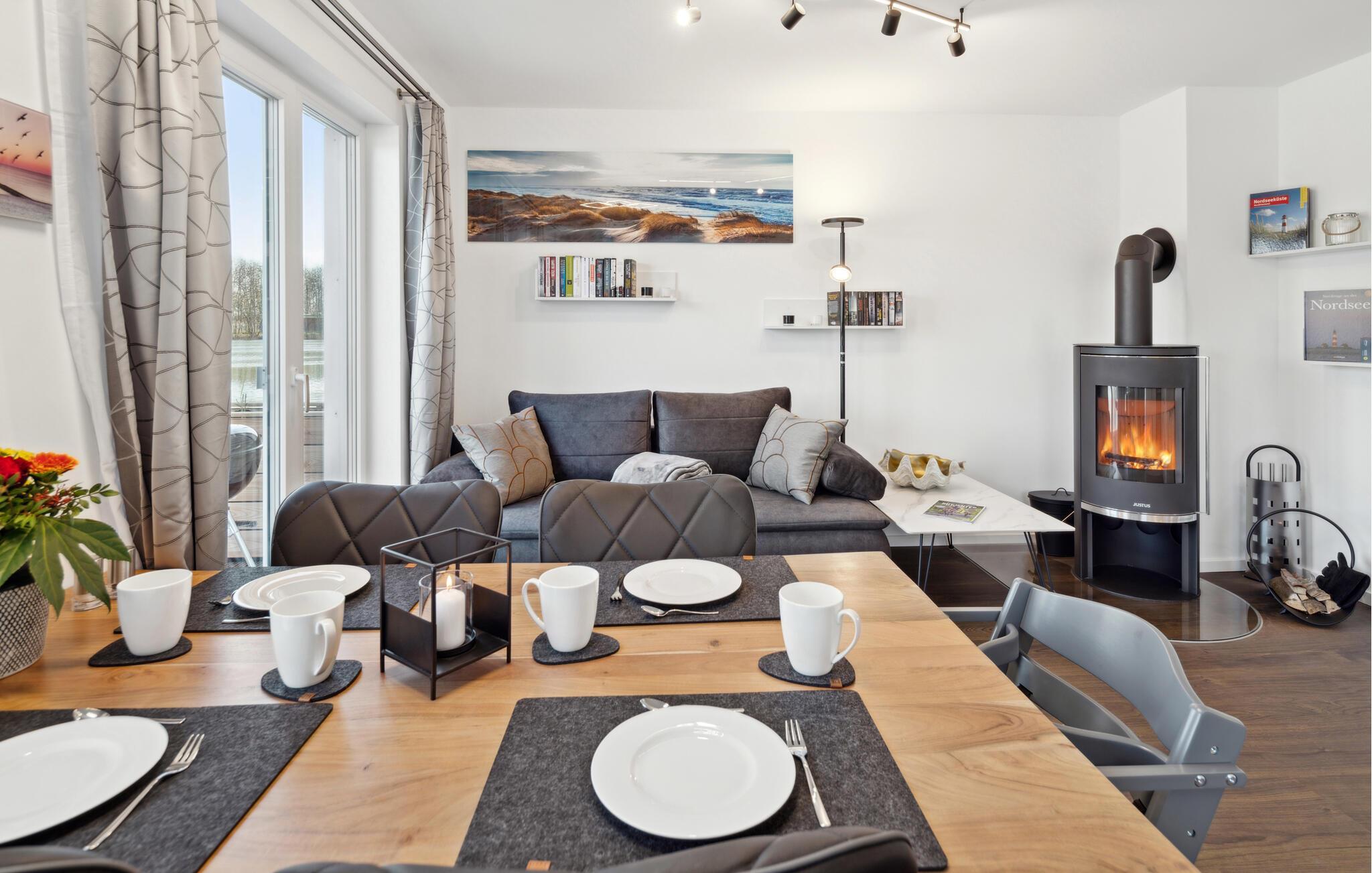 Modernes Ferienhaus in Tossens mit Panorama, Sauna und Kamin für erholsame Auszeit am Wattenmeer.