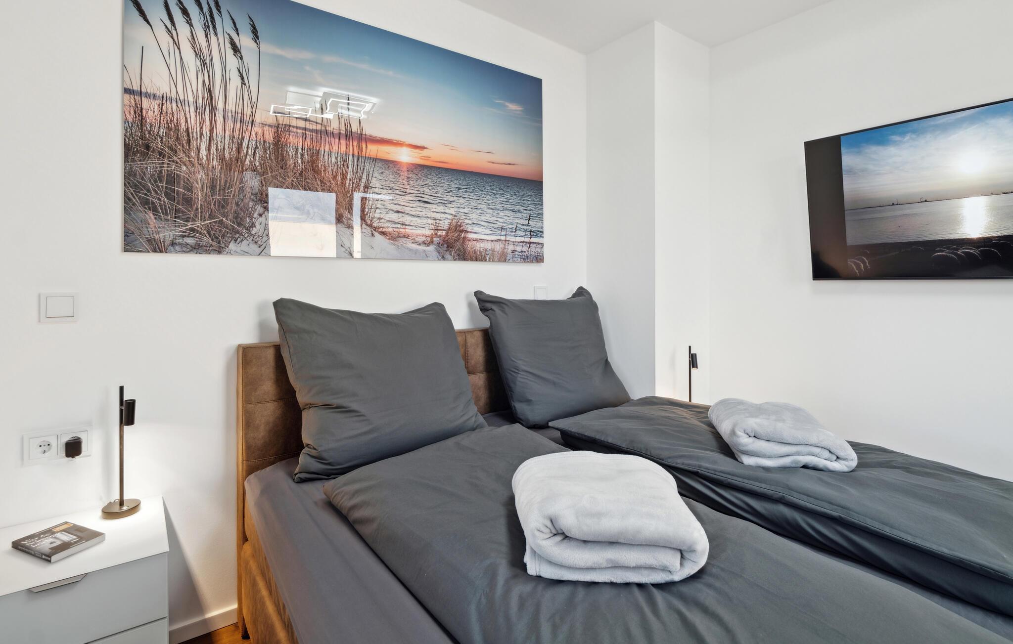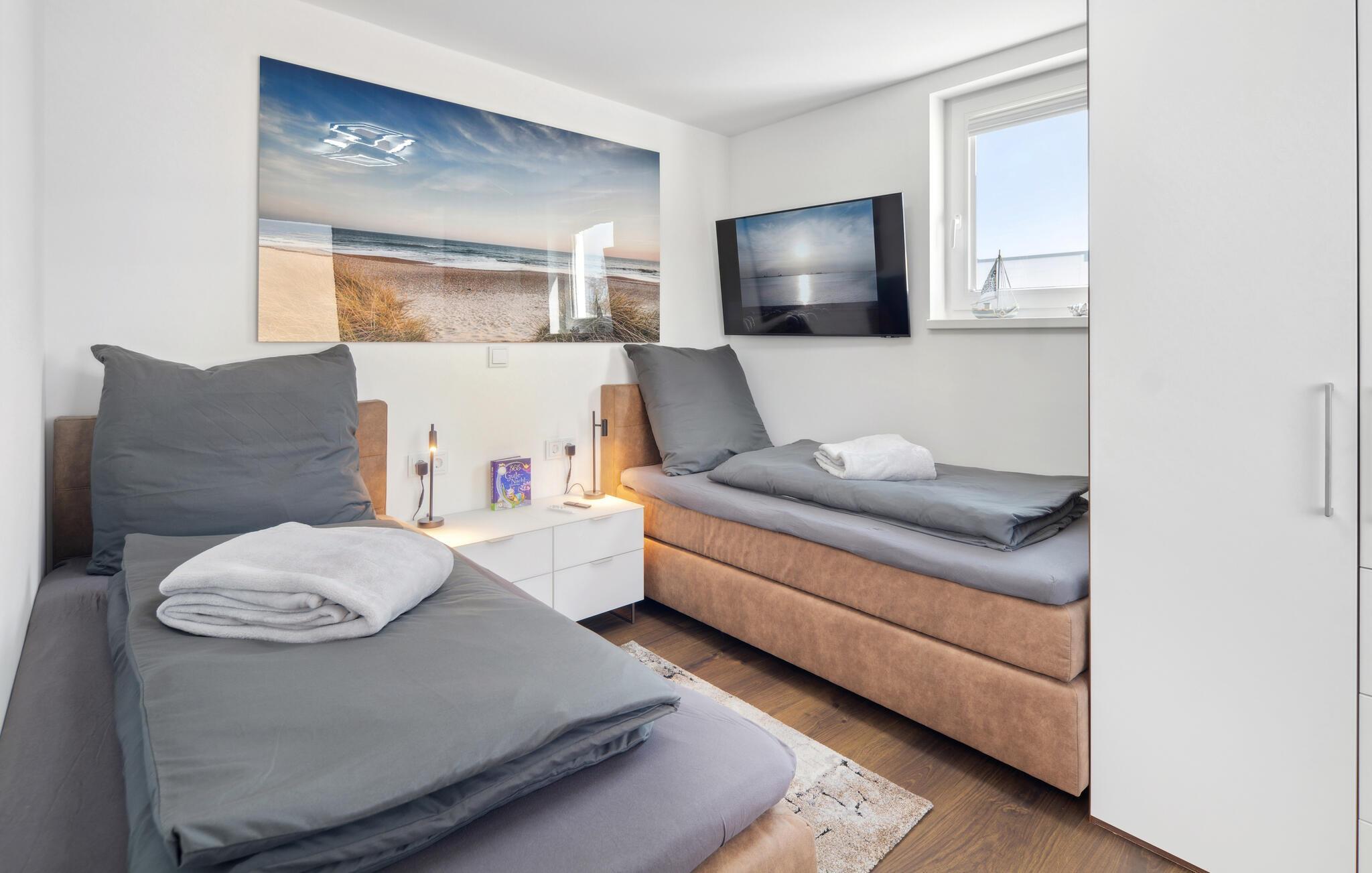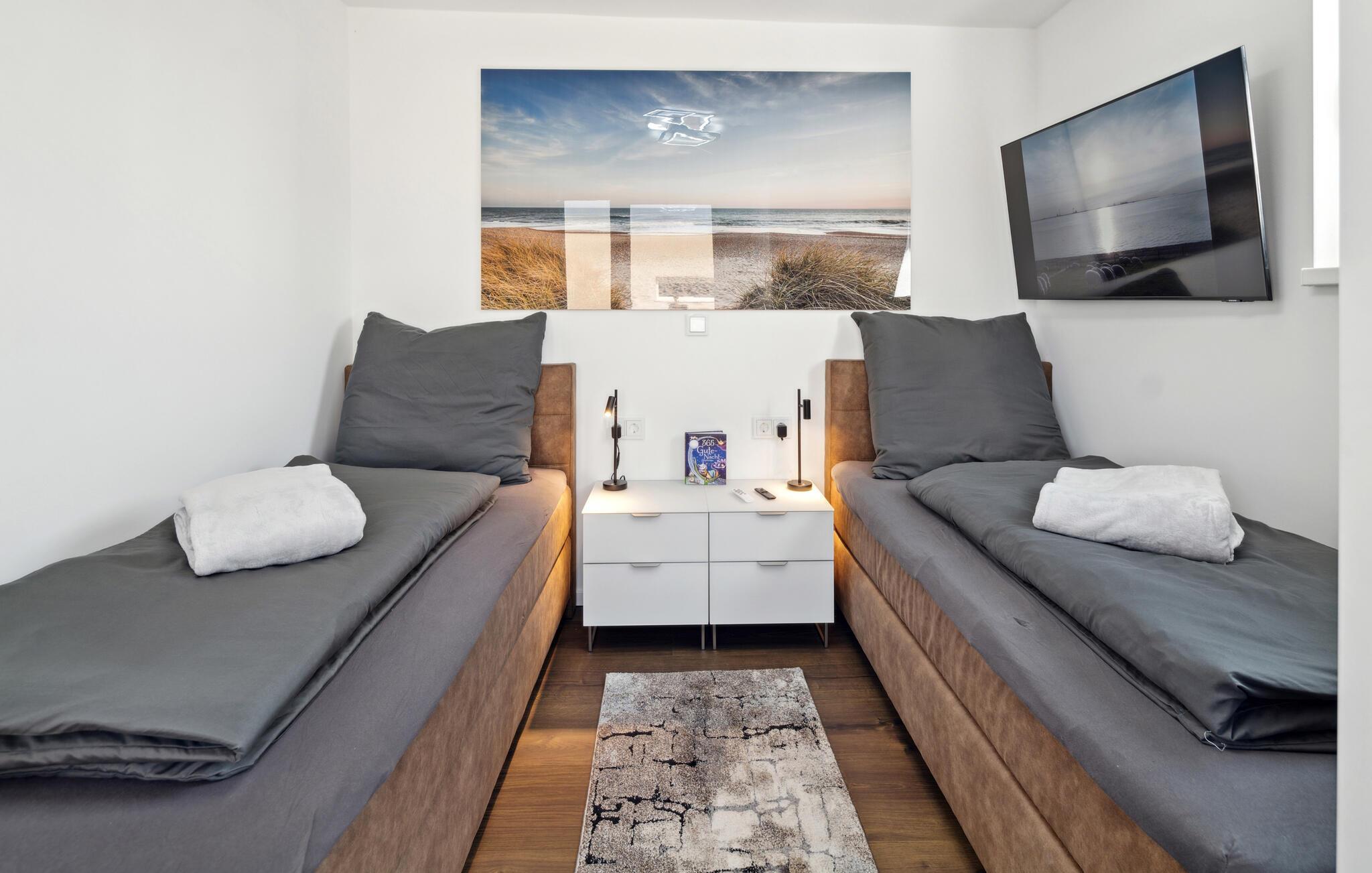 Treten Sie aus den Schlafzimmern auf den Balkon, um die Nordseeluft zu genießen. Servieren Sie die Mahlzeiten auf der Terrasse und lassen Sie den Blick über das Wasser schweifen.