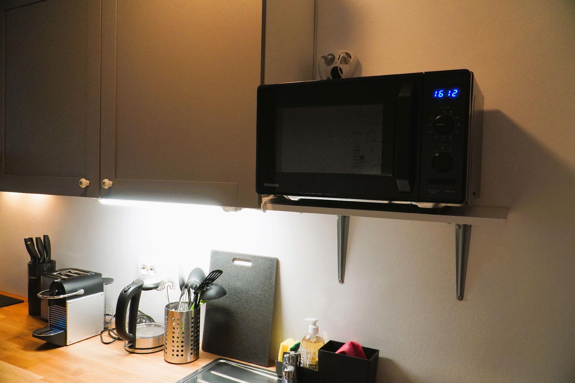 Kochen: 2-Plattenherd; Gefrierfach; Induktionsherd; Kaffekapselmaschine; Kühlschrank; Mikrowelle; Minibackofen; Toaster; Wasserkocher