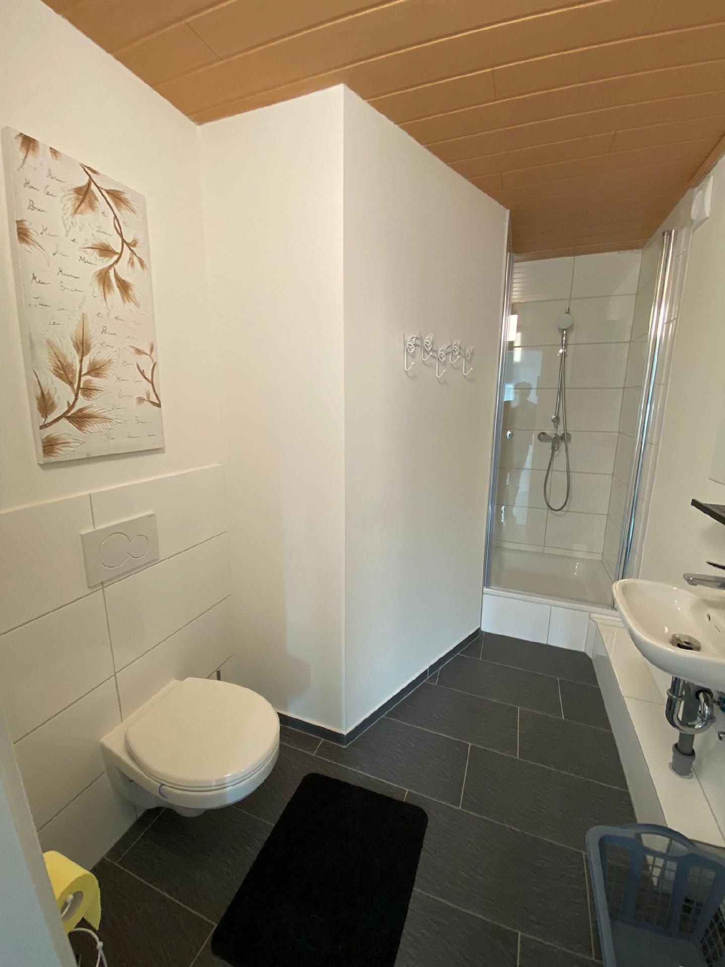 Bad/WC: Dusche; Föhn; Toilette; Waschbecken