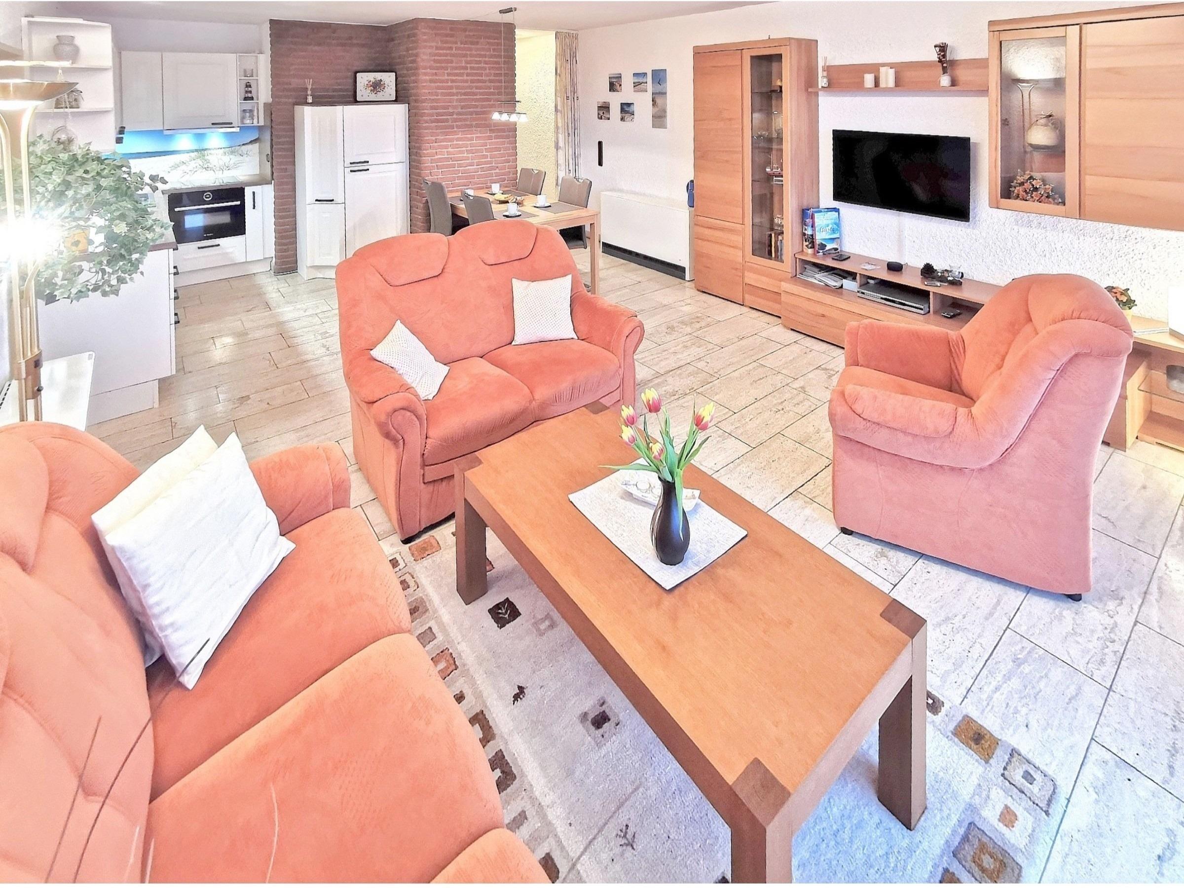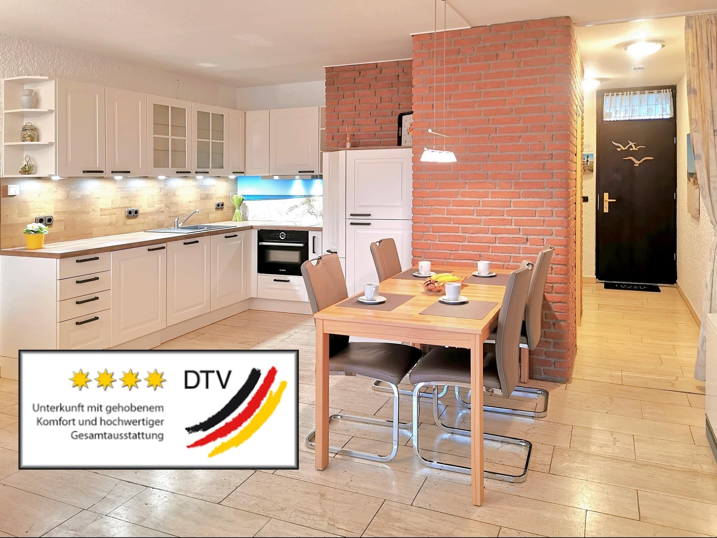 Die helle und maritim eingerichtete 75m² große 4-Raum Komfort-Traumferien-Wohnung in strandnaher Lage lädt Sie zum gemütlichen Verweilen ein. Sie liegt im 3.Stock des Albatros Appartementhauses und ist bequem per Lift erreichbar. Die ansprechend maritim dekorierte Wohnung verfügt über einen hellen Fußboden und einem großen möblierten Südbalkon mit Kunstrasen und ausgezeichneter Fernsicht auf das Hinterland. Im Sommer lädt die untergehende Abendsonne dazu ein dort den Tag entspannt ausklingen zu lassen. Im komplett renoviertem Wohnzimmer mit offener Küche und moderner, hochwertiger Schrankwand befindet sich eine bequeme Couchgarnitur sowie ein Esstisch für 6 Personen. Für den gemütlichen Familienabend stehen diverse Kinder- und Brettspiele zur Verfügung. Ebenso ist spannende Urlaubslektüre vorhanden. Für ein behagliches Ambiente sorgt die Lichtillumination die mit "ALEXA" gesteuert werden kann. Zu den Komfortmerkmalen gehören WLAN, DSL25-Internetanschluß, 1xSat-SmartTV, 2xDVB-T SmartTV, DVD/BlueRay, CD-Radio, 3x "ALEXA" und SmartHome Komponenten, el. Außenrollläden im Wohnzimmer, sensorgesteuertes Schlafzimmer-Bodennachtlicht, hochwertige Taschenfederkernmatrazen, Fahrstuhl, eigener Tiefgaragenparkplatz , Kinderhochstuhl, Kinderreisebett, Schreibtisch, Kindermalzeug. Eine voll ausgestattete hochwertige Einbauküche (ab Feb.2020) mit modernsten Bosch Markengeräten wie Waschmaschine, Induktionsherd, Spülmaschine, Kompaktbackofen mit Mikrowellenfunktion sowie eine Kühl-/Gefrierkombiation läßt keine Wünsche offen. Das Duschbad, verfügt über eine besonders helle LED-Wandbeleuchtung, einen Fön und ausreichende Ablagemöglichkeiten im Unterschrank. Für angenehme Raumtemperaturen sorgt bei Bedarf ein temperaturgesteuerter Schnellheizlüfter der sofort für ein behagliches Wohlgefühl sorgt. In den 3 Schlafzimmern, die alle mit Wandspiegeln und sensorgesteuertem Fußbodennachtlicht ausgestattet sind, können Sie auf Komfortaschenfederkernmatratzen in 2 Doppelbetten (1x Queen-Size und 1x King-Size) sowie in zwei Einzelbetten Ihre Traumferien genießen und entspannen. Der hell beleuchtete Flur mit rotem Naturstein verfügt über einen großen Kleiderspiegel, einer Kleidergarderobe sowie einer beleuchteten Nische mit Stauplatz für Staubsauger, Wäscheständer, Besen etc. und Zugang zum Sicherungskasten. Ein im Sommer angenehm temperierter eigener Tiefgaragenstellplatz ist bequem und schnell mit dem Lift zu erreichen. Die Tiefgarage verfügt über el. gesteuerte Automatik-Garagentore die sich selbständig schließen. In unmittelbarer Nähe befindet sich der Center-Parc mit tropischem Schwimmbad und vielfältigen Freizeit-,Sport und Gastronomieangebot.