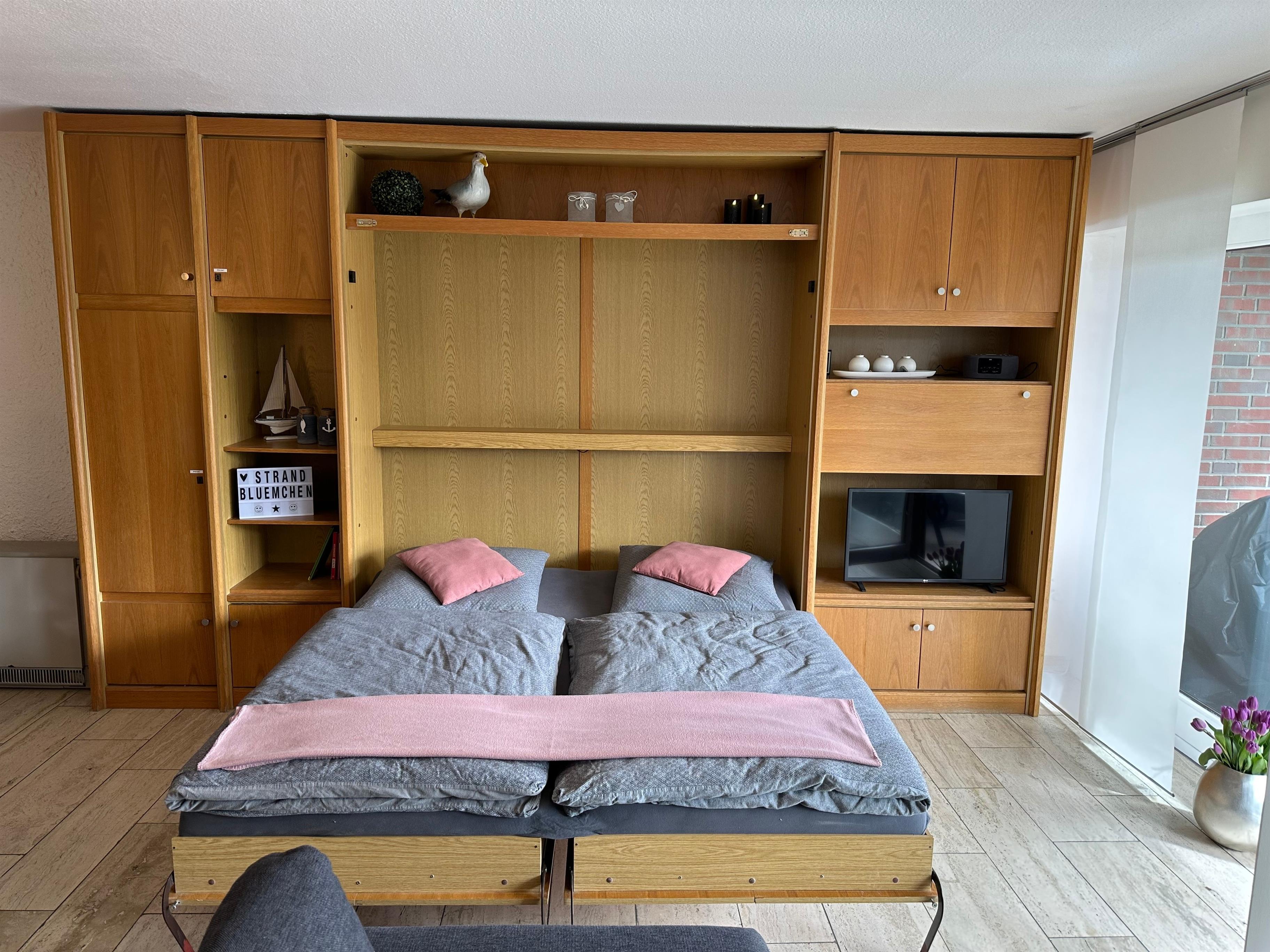 Unser Appartment mit 52 m² Wohnfläche befindet sich in der ersten Etage des Apartmenthauses Seeadler, direkt hinter dem Deich, in unmittelbarer Nähe vom Center Park Tossens und dem Friesenstrand mit dem großen Piraten-Abenteuer-Spielplatz. Unsere Wohnung ist modern und liebevoll eingerichtet und teilt sich auf in einen Flur, einem Schlafzimmer mit Doppelbett (180 x 200 cm), einem Bad mit Dusche sowie einem großen Wohn- und Essbereich. Im Wohnbereich befindet sich ein Schrankbett (jeweils 90 x 200 cm), ein gemütliches großes Sofa. Und bei schlechtem Wetter steht Ihnen ein Smart-TV (Netflix, Amazon Prime Video etc.) zur Verfügung. In der offenen Küche finden Sie eine Spülmaschine, Backofen, Kühl- und Gefrierschrank sowie weitere Küchenutensilien. In unserem Appartment haben Sie kostenfreies WLAN mit bis zu 50 Mbit/s. Ein Kinderhochstuhl, sowie ein Kinderreisebett sind vorhanden. Um abends gemütlich auf dem Balkon zu verbringen, steht Ihnen ein Elektrogrill zur Verfügung. Ein Fahrrad-Verleih in direkter Nähe ist vorhanden und bis zum Deich sind es nur ca. 500 m. Ausreichende Gelegenheiten zum Bummeln und Schlemmen auf der Nordseeallee Richtung Deich sind auch vorhanden, sowie das Aqua-Mundo Erlebnisbad in direkter Nähe. Sie haben die Möglichkeit kostenlos direkt vor Ort am Haus zu parken. Es gibt zusätzlich 4 Ladestationen für Elektro-Autos direkt vor dem Haus. Der Balkon zur Südseite hin lädt zum gemütlichen Verweilen und Entspannen ein. Hierfür steht eine moderne Sitzgruppe inklusive Tisch zur Verfügung. Unser Appartment ist und bleibt eine Nichtraucherwohnung. Für Raucher besteht die Möglichkeit, den Balkon zu nutzen. Die Energie- und Endreinigungskosten sind im Preis enthalten. Kinderbett und Hochstuhl sind vorhanden, Bettwäsche kann pro Person und als Paket mit Handtüchern geliehen werden. Es ist kein Haustier erlaubt.