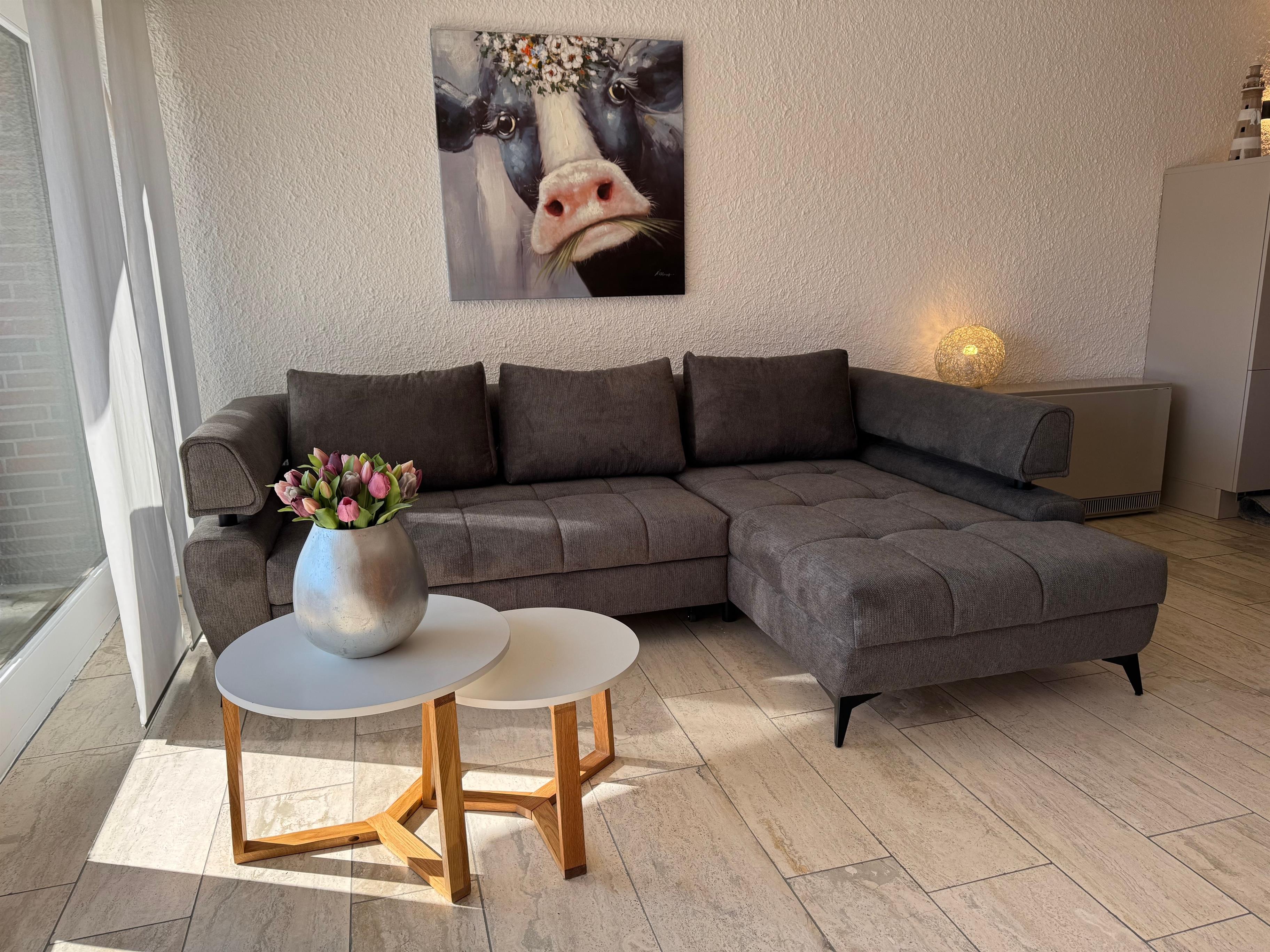 Das gemütliche, lichtdurchflutete 2-Zimmer-Apartment (52 m²) für 4 Personen und einem zusätzlichen Kleinkind bis 3 Jahren liegt im ruhigen und familienfreundlichen Nordseebad Tossens - ein Ortsteil der Gemeinde Butjadingen.