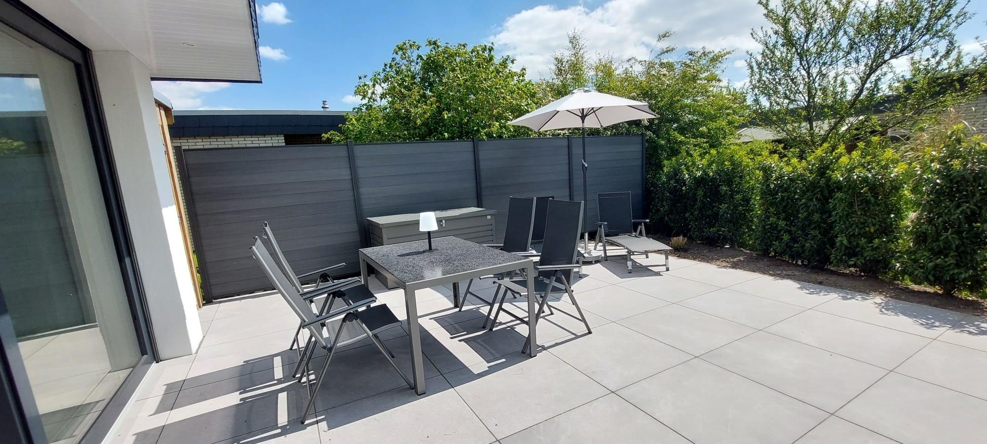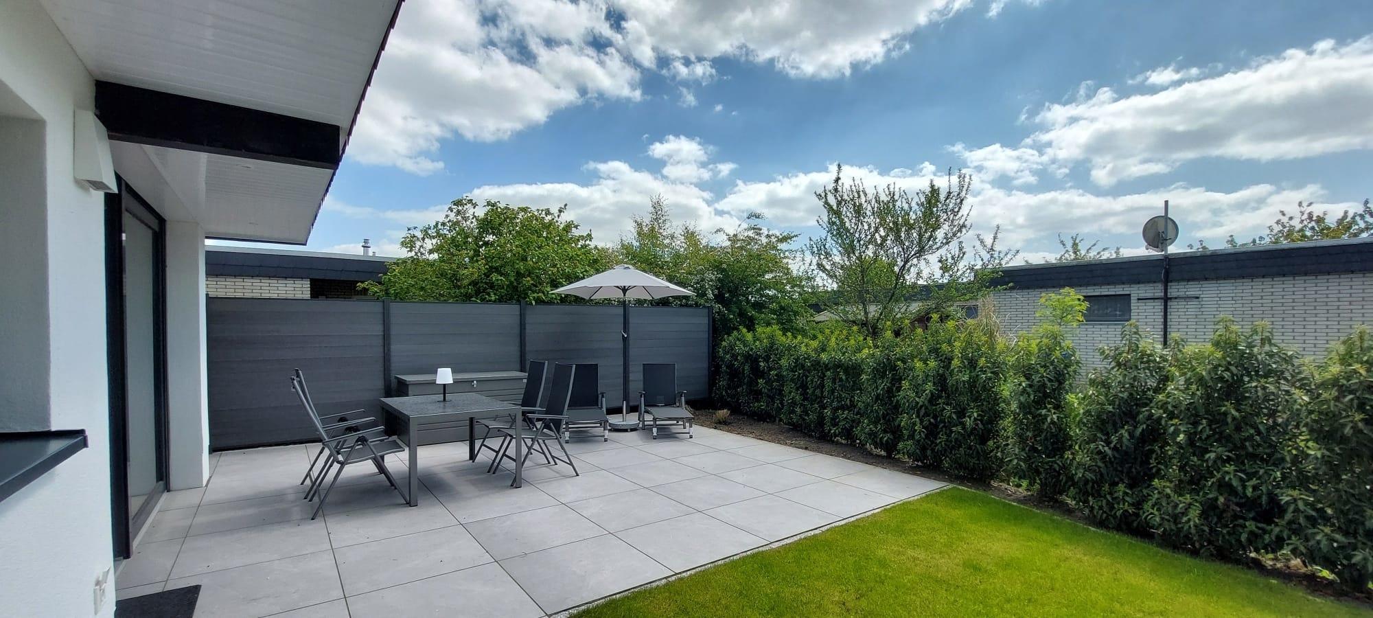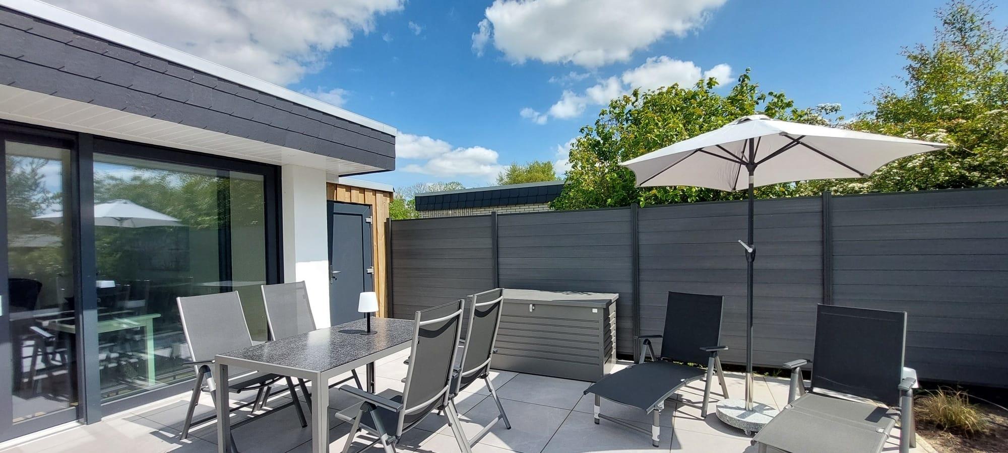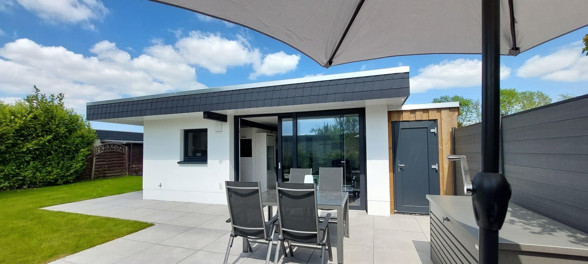 Modernen Bungalow in Tossens mit Garten, Strandnähe und nachhaltiger Ausstattung für erholsamen Urlaub.