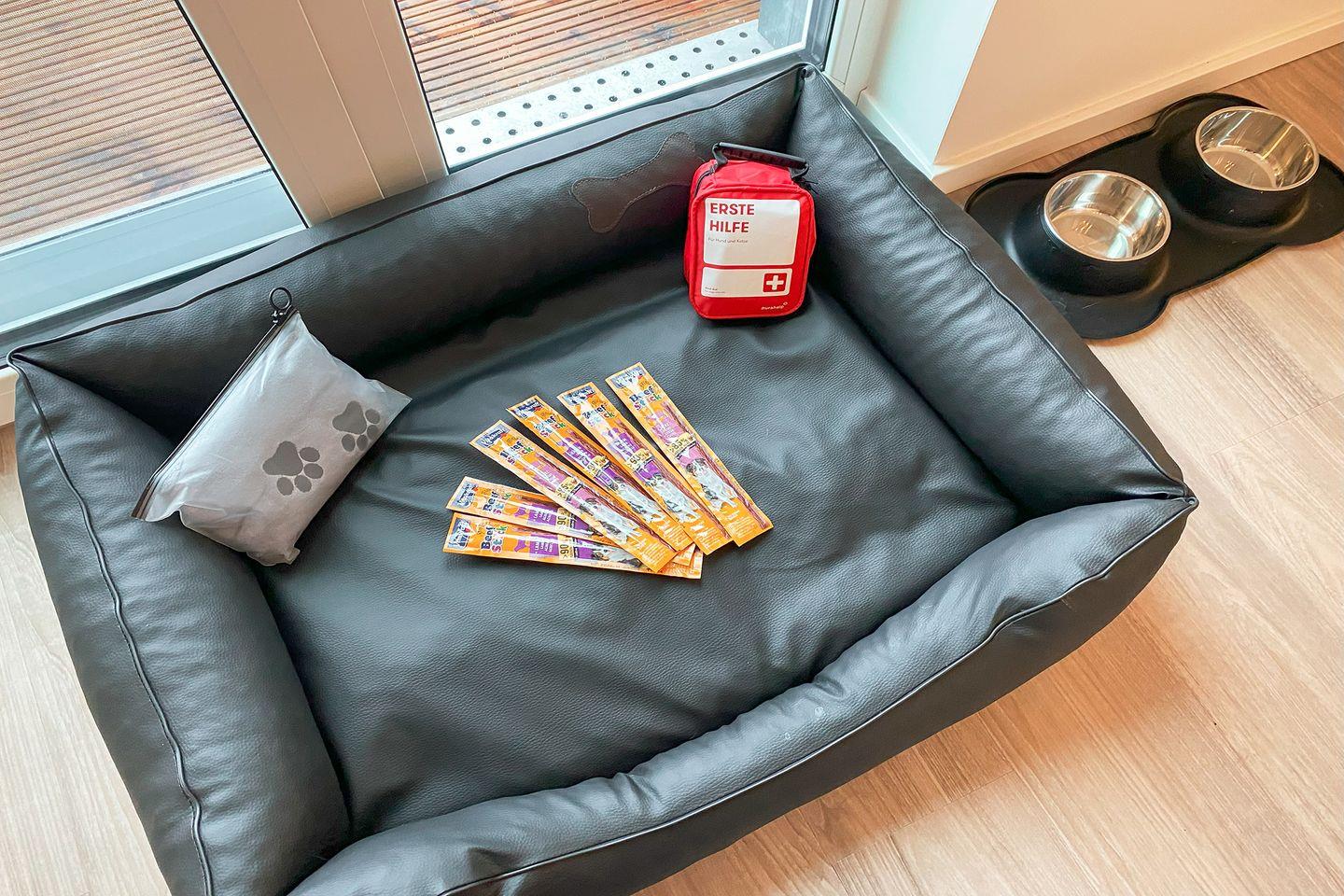 Auch dein Vierbeiner ist herzlich willkommen – hier ist wirklich an alles gedacht! Ein gemütliches Körbchen, Näpfe, Handtücher und sogar eine praktische Außenbrause warten schon auf deinen Hund. Für gemeinsame Abenteuer steht auf Anfrage kostenfrei ein Hundefahrradanhänger mit Kupplung bereit.