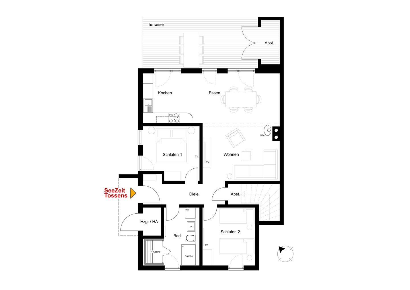 Die SeeZeit befindet sich in einem Vier-Parteien-Haus. Für größere Reisegruppen oder den Urlaub mit Freunden kann zusätzlich die obere Wohnung **HimmelFrei** mit großer Dachterrasse gebucht werden – so genießt ihr gemeinsame Zeit und gleichzeitig Privatsphäre.