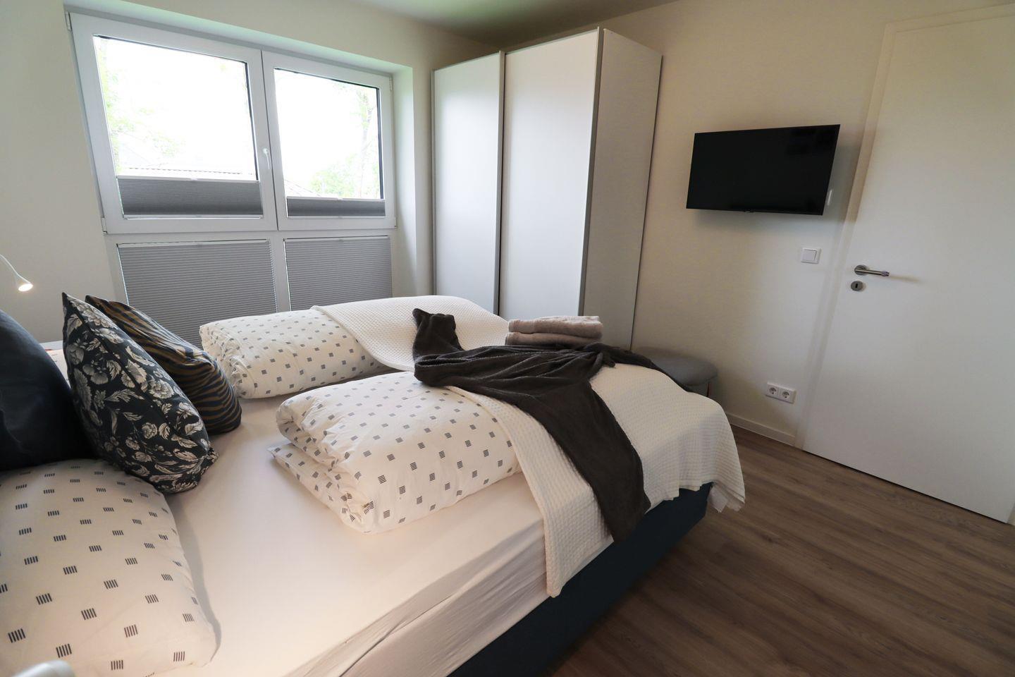 Zwei gemütliche Schlafzimmer mit hochwertigen Boxspringbetten (je 180x200?cm) und Smart-TV sorgen für erholsamen Schlaf. Verdunkelungsplissees ermöglichen eine angenehme Nachtruhe. Für ein Kleinkind stehen Reisebett und Hochstuhl bereit.