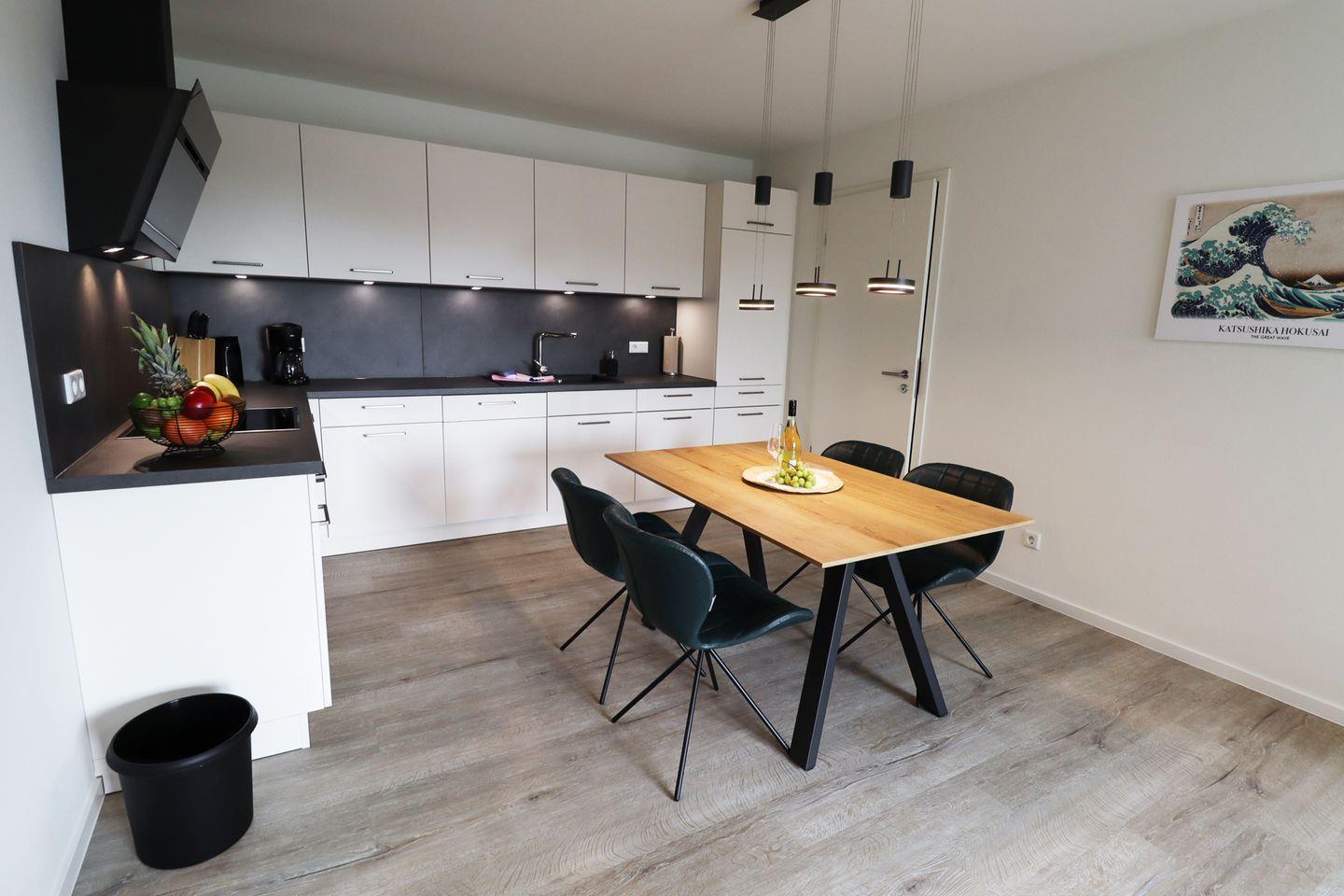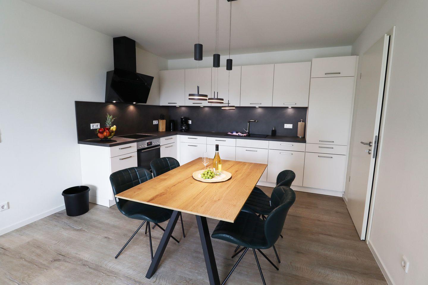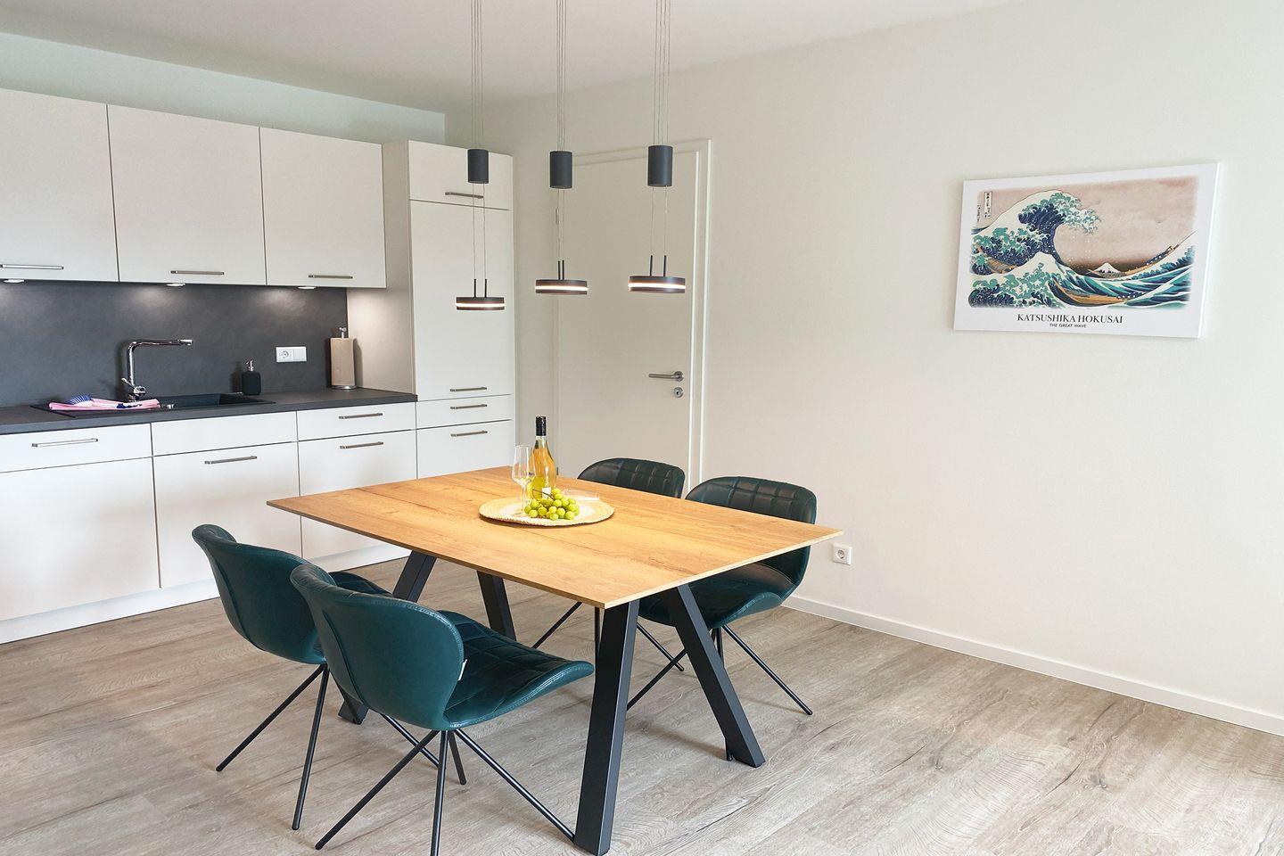 Im offenen Wohnbereich kannst du es dir auf der gemütlichen Couch bequem machen, den Tag mit einem Film ausklingen lassen oder auf dem Balkon die Nordseeluft genießen. Der große Essbereich verbindet sich mit der modernen, voll ausgestatteten Küche – perfekt für Kochabende zu zweit.