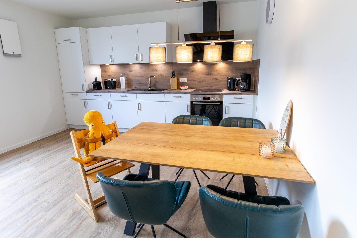 Das „Meerverliebt“ ist perfekt für den Urlaub mit Kindern. Ein Babyreisebett, Hochstuhl, Kindergeschirr und Spiele für die Kleinen stehen bereit. Auch ein Waschtrockner erleichtert längere Aufenthalte. Besonders praktisch: ein eigener Bollerwagen für entspannte Spaziergänge oder Ausflüge an den Strand. Die strandnahe Lage macht das Apartment ideal für Familienabenteuer am Meer.