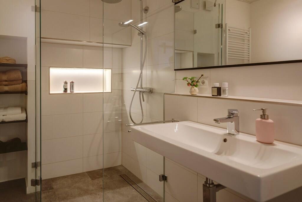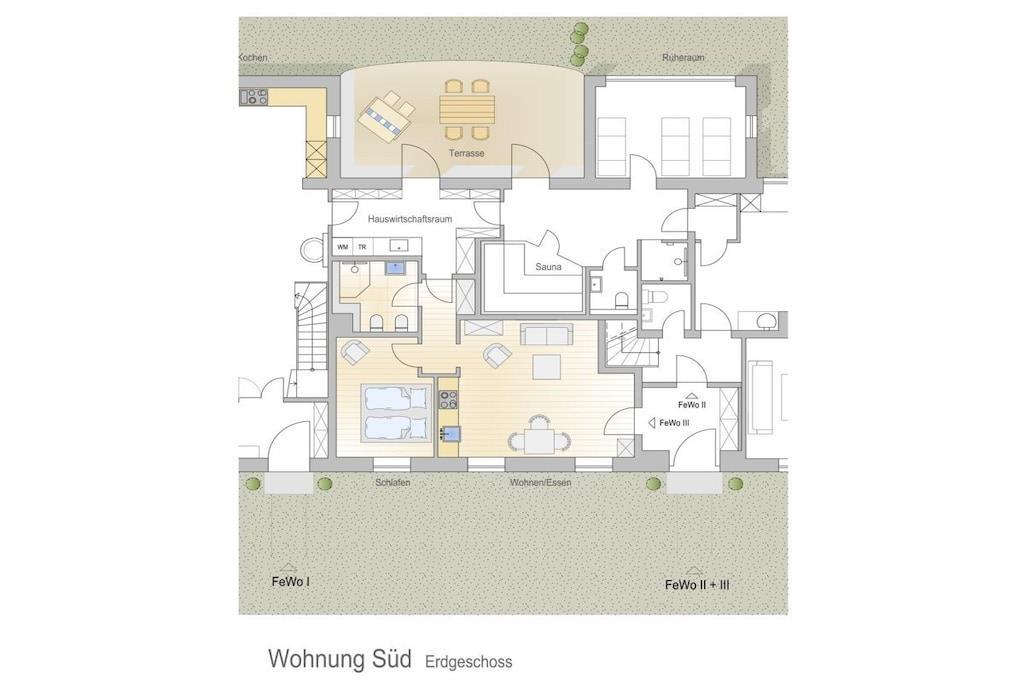 *** Besuchen Sie unsere Webseite: www.huus-uelvesbuell.de *** Inmitten der weiten Marschlandschaft Eiderstedts steht unser fast 120 Jahre altes Reetdachhaus Huus Uelvesbüll, das wir 2017 mit Liebe zum Detail grundlegend saniert haben. Aus jedem Fenster unseres lichtdurchfluteten Hauses mit den drei Hausteilen Ost, Süd und West schauen Sie in die Weite: auf Deiche, Felder und grasende Schafe. Die äußere Weite wird auch innen spürbar: durch eine schnörkellose, skandinavisch inspirierte und sehr hochwertige Einrichtung und Ausstattung. In der Wohnung Richtung Süden finden Sie auf 45qm ein Wohnzimmer mit Küchenzeile und Essplatz, ein Schlafzimmer, in dem Sie wahlweise zwei Einzelbetten oder ein Doppelbett vorfinden und ein Badezimmer. Im Haus stehen Ihnen ein großzügiger Saunabereich mit Ruheraum sowie ein Hauswirtschaftsraum zur Verfügung. Eine Aufladesäule für E-Autos ist auf dem Parkplatz des Hauses verfügbar.