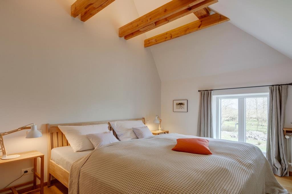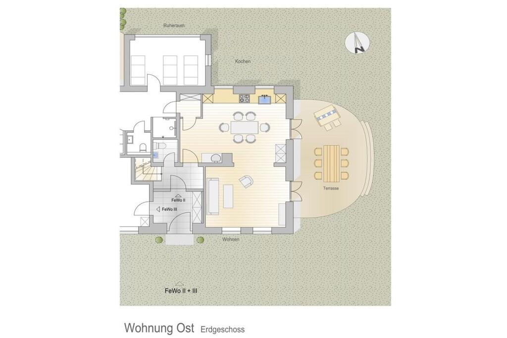 Inmitten der weiten Marschlandschaft Eiderstedts steht unser fast 120 Jahre altes Reetdachhaus Huus Uelvesbüll, das wir 2017 mit Liebe zum Detail grundlegend saniert haben. Aus jedem Fenster unseres lichtdurchfluteten Hauses mit den drei Hausteilen Ost, Süd und West, schauen Sie in die Weite: auf Deiche, Felder und grasende Schafe. Die äußere Weite wird auch innen spürbar: durch eine schnörkellose, skandinavisch inspirierte und sehr hochwertige Einrichtung und Ausstattung. In der Wohnung Ost finden Sie auf 150qm eine Wohnküche mit Jugendstil-Kaminofen und angrenzendem Wohnzimmer und Terrasse, drei Schlafzimmer für bis zu 6 Personen (7. Person auf Anfrage), zwei Bäder sowie eine Gästetoilette. Im Haus stehen Ihnen ein großzügiger Saunabereich mit Ruheraum sowie ein Hauswirtschaftsraum zur Verfügung. Eine Aufladesäule für E-Autos ist auf dem Parkplatz des Hauses verfügbar.