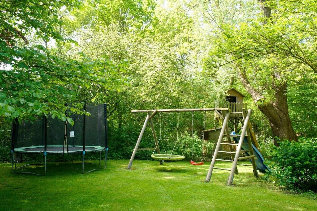 Parterre: (Küche(, , Kochnische, Kochplatte, Wasserkocher, Toaster, Kaffeemaschine, Kühlschrank, Tiefkühlschrank), Wohn-/Schlafzimmer(, , Doppelbett, TV, Esstisch, DVD-Spieler, DVD-Spieler, Blu-ray-Player, Radio, CD-Spieler, Stereoanlage), Badezimmer(, , Toilette, Dusche, Waschbecken, Heizung, Föhn)) , , , Ruheraum(Sauna), Internet, Internet, Erste-Hilfe-Station, Waschmaschine, Heizung, Terrasse(, Zentraler Grill, Strand, Kaminofen, Grill, Gartenmöbel, Liegen), Garten(, Zentraler Grill, Strand, Liegewiese, Kaminofen, Grill, Gartenmöbel, Liegen, Trampolin, Rutsche, Gartenhaus, Schaukel), Parkplatz, Bügelbrett, Bügeleisen, Trockenschrank, Ladestation für Elektroautos