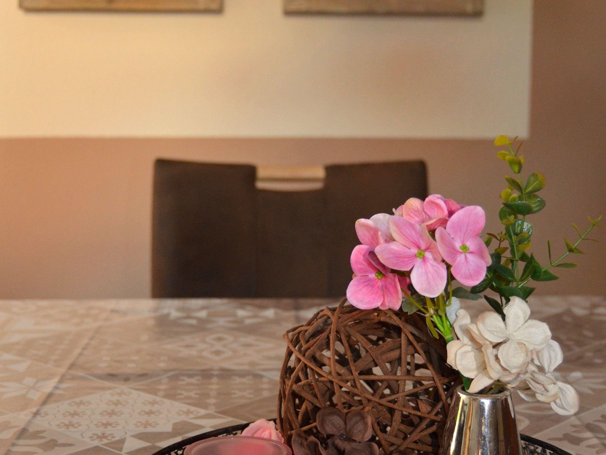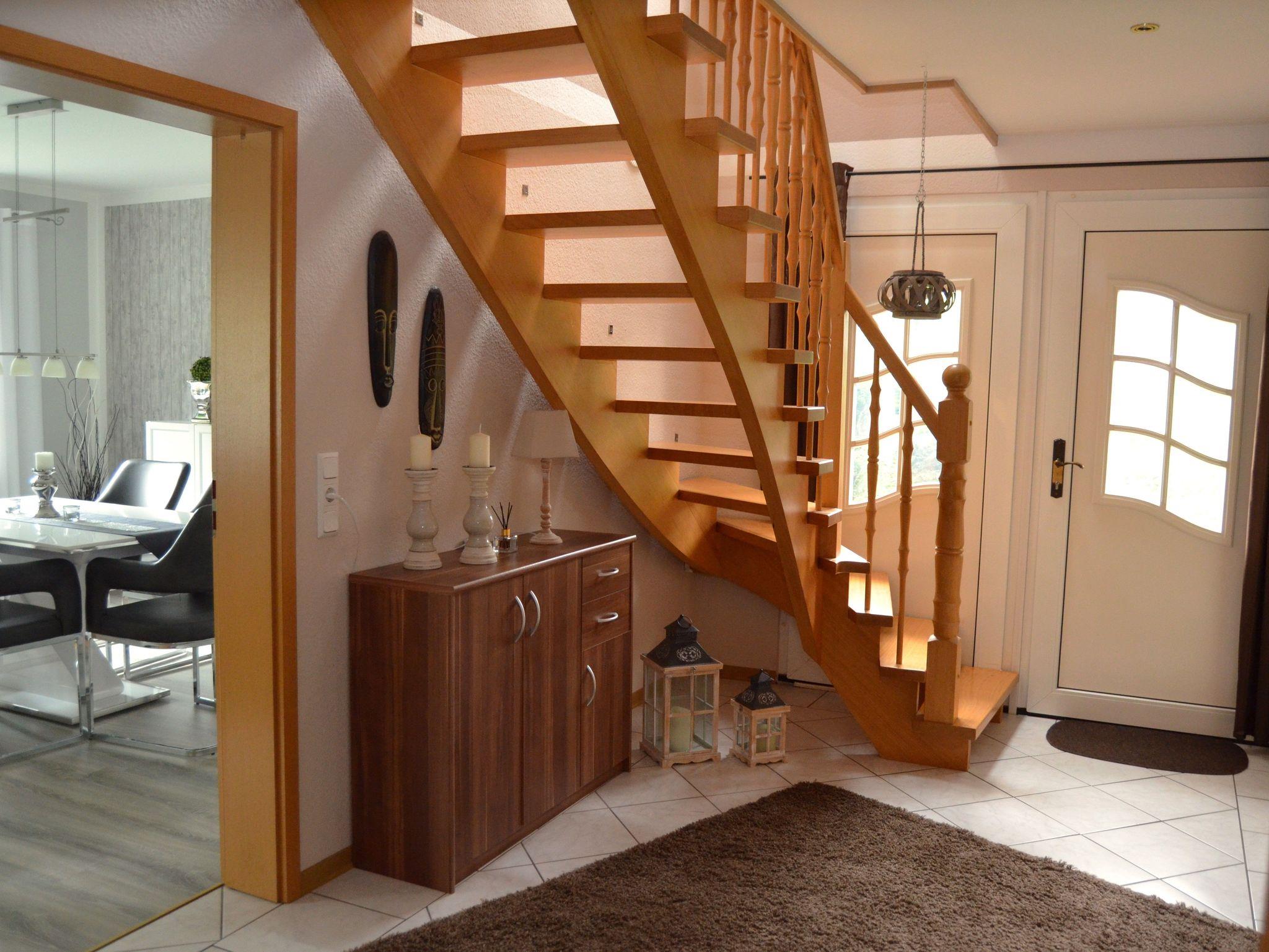 Im Erdgeschoss finden Sie die voll ausgestattete Küche mit Zugang zur überdachten Terrasse, ein großes Wohnzimmer mit Essecke, ein Badezimmer mit Dusche sowie ein separates WC.