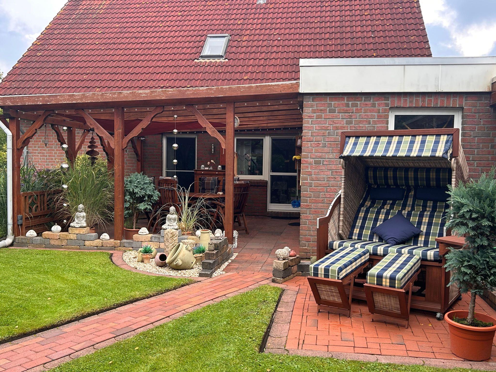 Modernes Ferienhaus in idyllischer Lage nahe Nordgeorgsfehnkanal mit großem Garten und Terrasse.