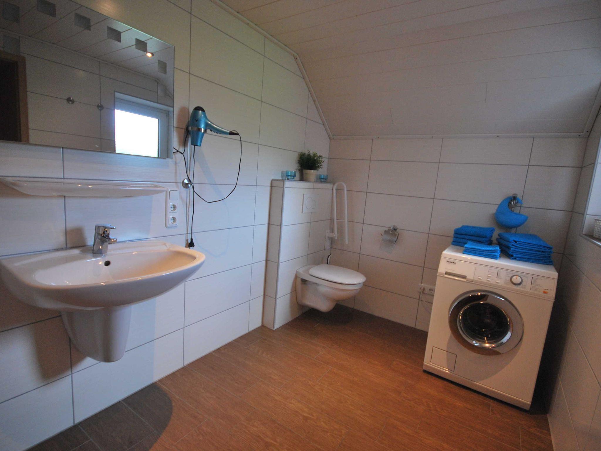 Das Ferienhaus verfügt über ein behindertengerechtes Bad mit Dusche und WC, sowie ausreichend breite Türen für Rollstuhlfahrer. Weiter lädt ein Wohnzimmer und das Doppel- bzw. Mehrbettzimmer zum Verweilen ein. Die Betten sind bezogen, zusätzliche Decken und Kopfkissen auf Wunsch erhältlich, Abstellraum verfügbar. Bitte beachten Sie, dass Haustiere 5Euro/Nacht/Tier zahlen, diese sind ggfls. gesondert vor Ort zu zahlen.