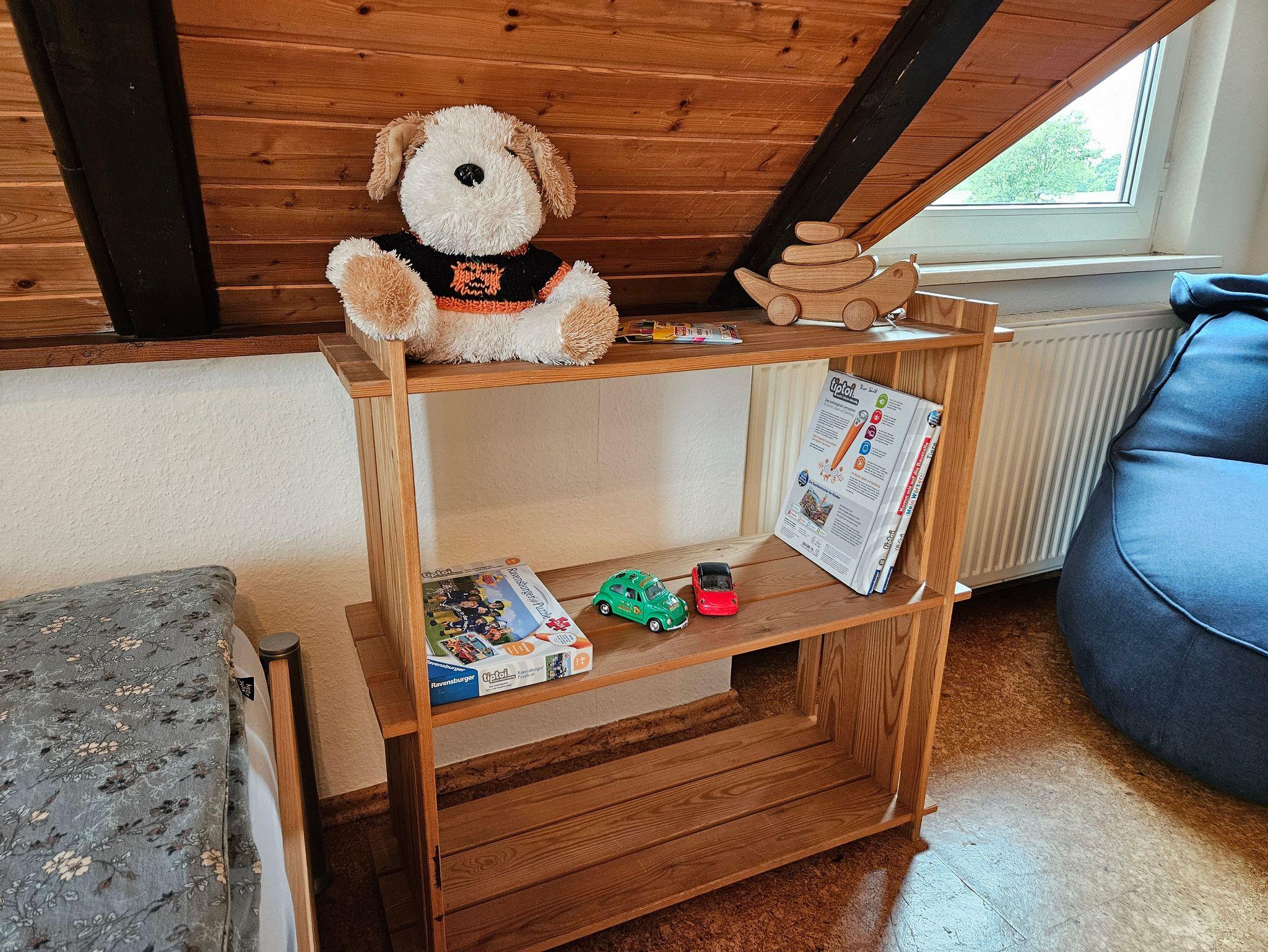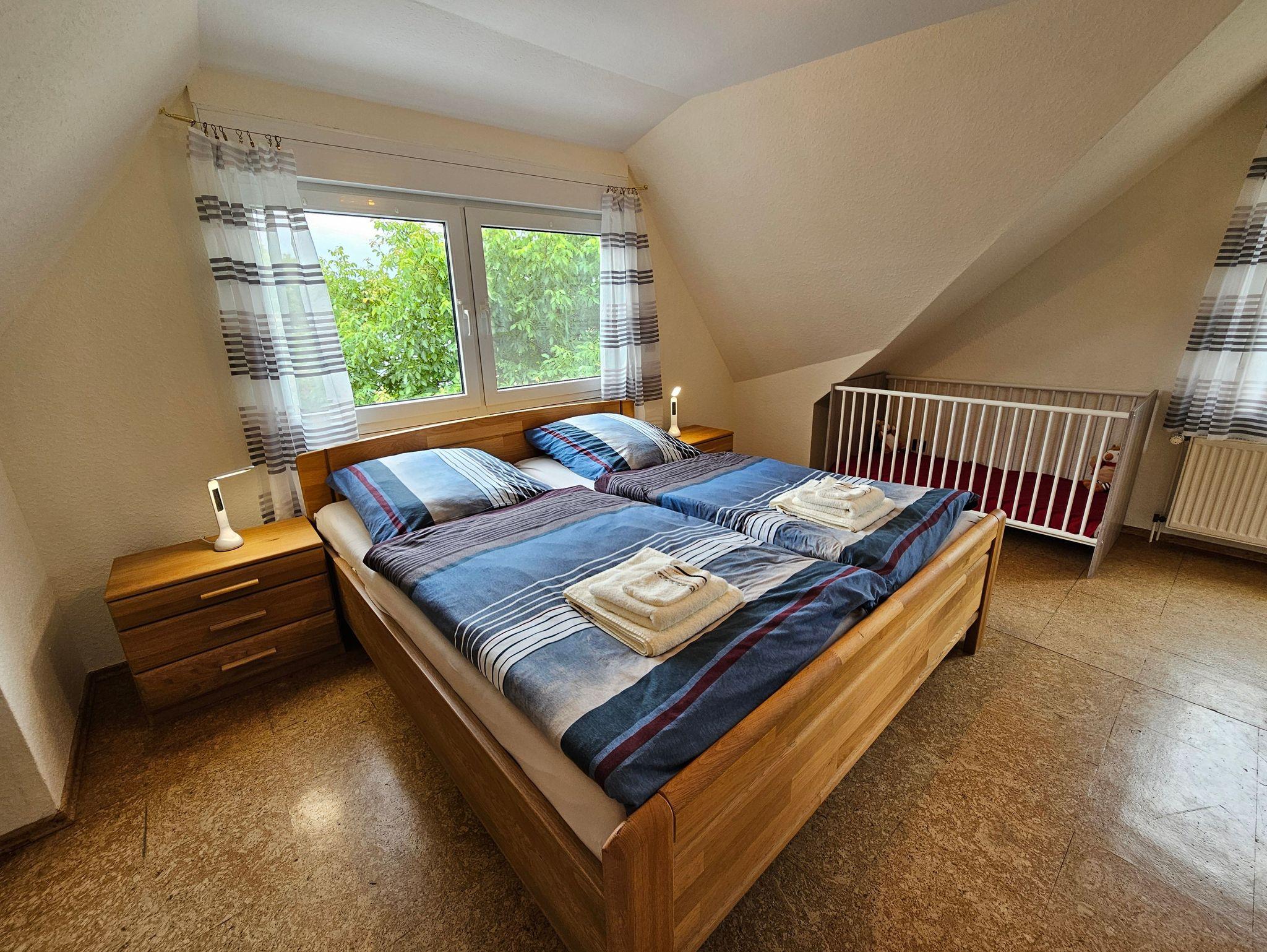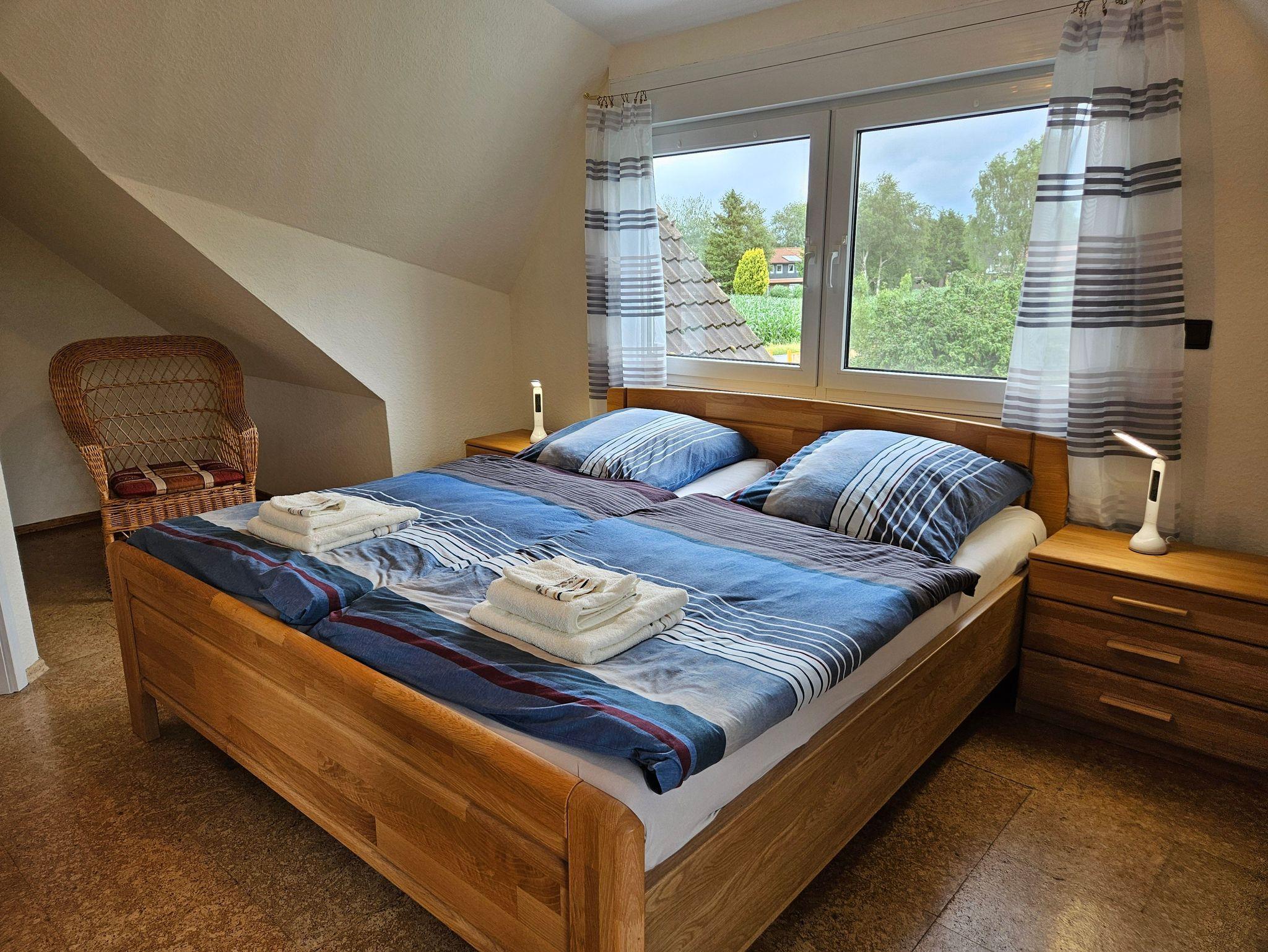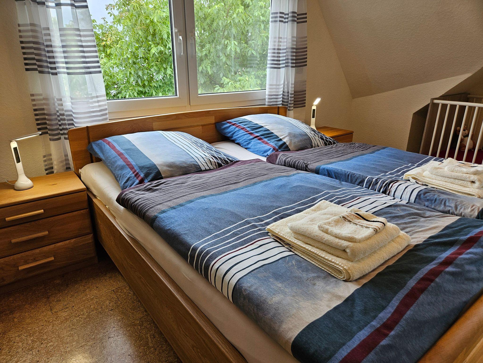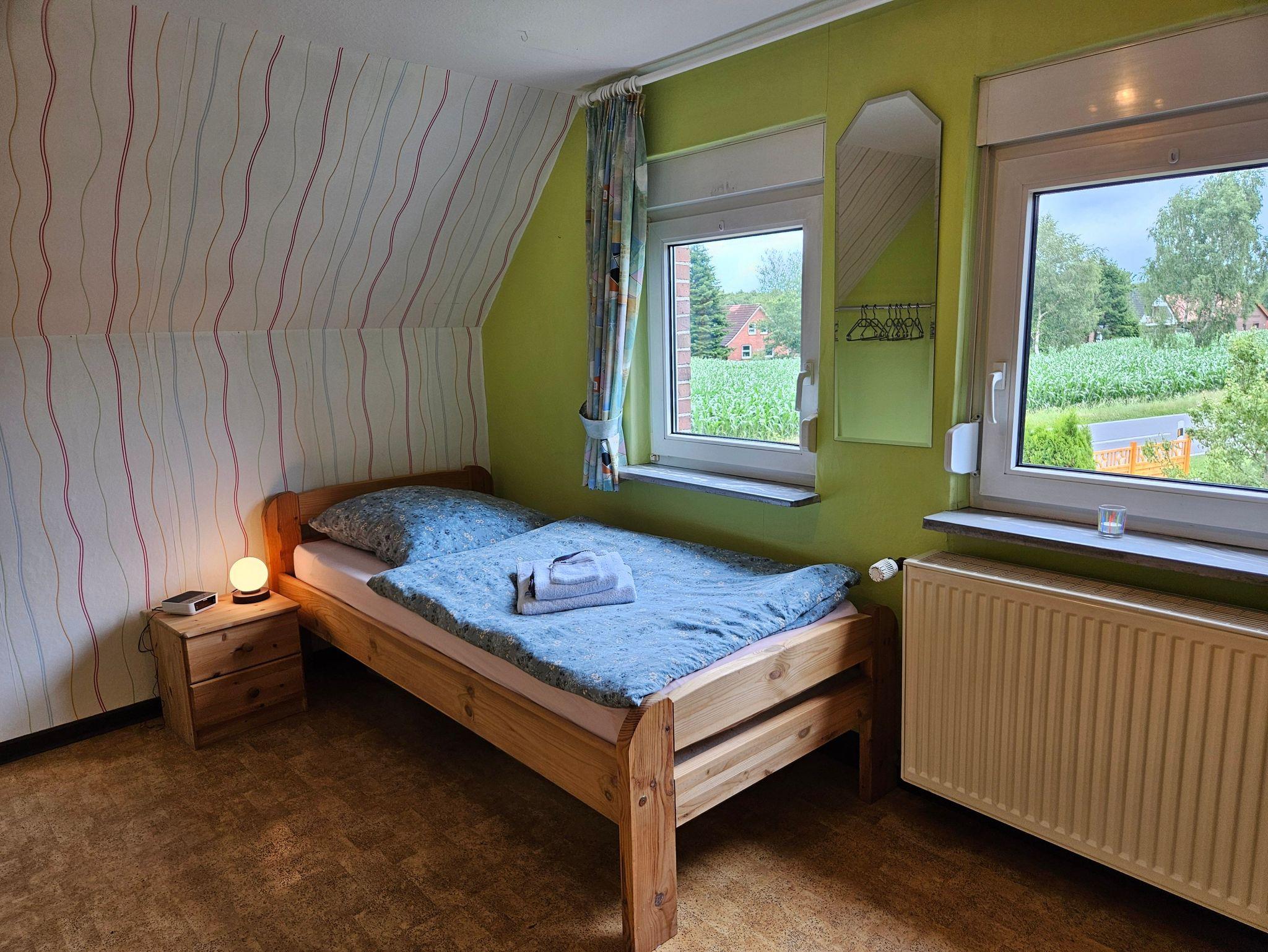 Die rund 80m² große Ferienwohnung Moi Tied befindet sich im Obergeschoss eines gepflegten Privathauses und bietet mit drei Schlafzimmern und einer separaten Küche viel Platz und Komfort für bis zu fünf Personen. Die Wohnung ist besonders familienfreundlich ausgestattet und überzeugt durch eine durchdachte Raumaufteilung: Ein Schlafzimmer ist mit einem gemütlichen Doppelbett und Kinderbett eingerichtet, zwei weitere Zimmer verfügen jeweils über ein Einzelbett.