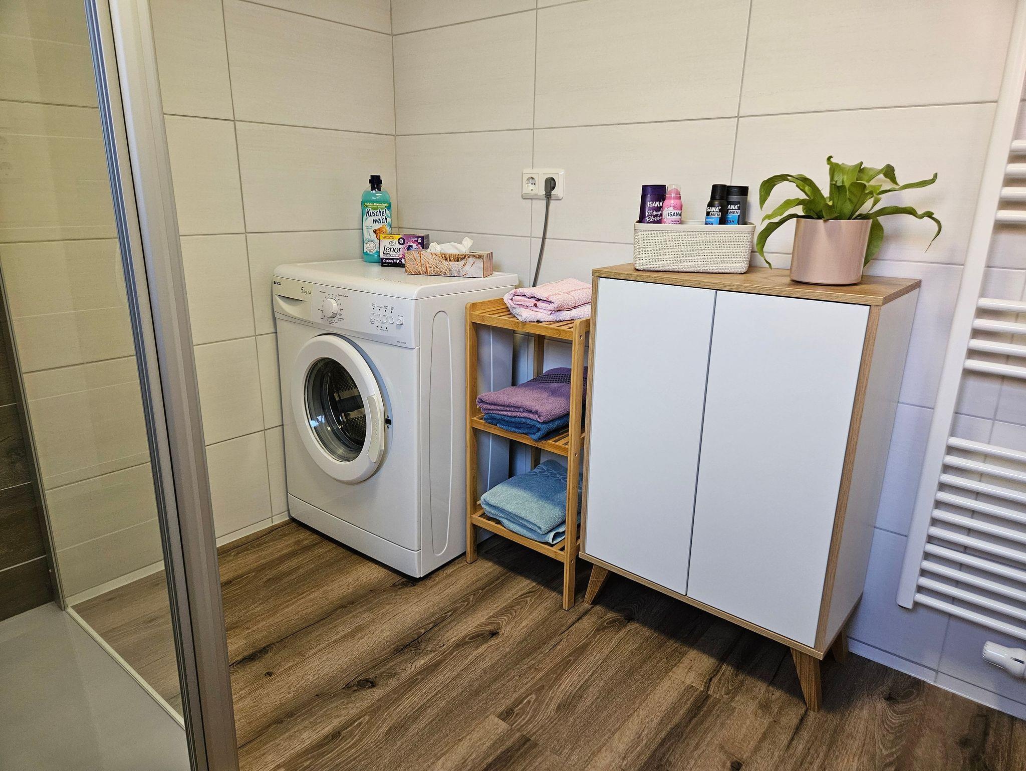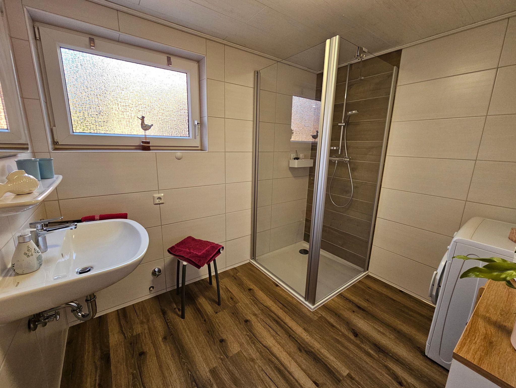 Die Ferienwohnung verfügt über eine vollausgestattete Küche mit Mikrowelle, Backofen und Geschirrspüler, Badezimmer mit Dusche sowie ein separates WC. Sie verfügen über einen separaten Eingang. Die Betten sind selbstverständlich bezogen und zusätzliche Decken und Kopfkissen sind auf Wunsch erhältlich. Das Wohnzimmer lädt zum Verweilen ein. Das Doppelzimmer in Gartenrichtung lädt zum Erholen ein.
