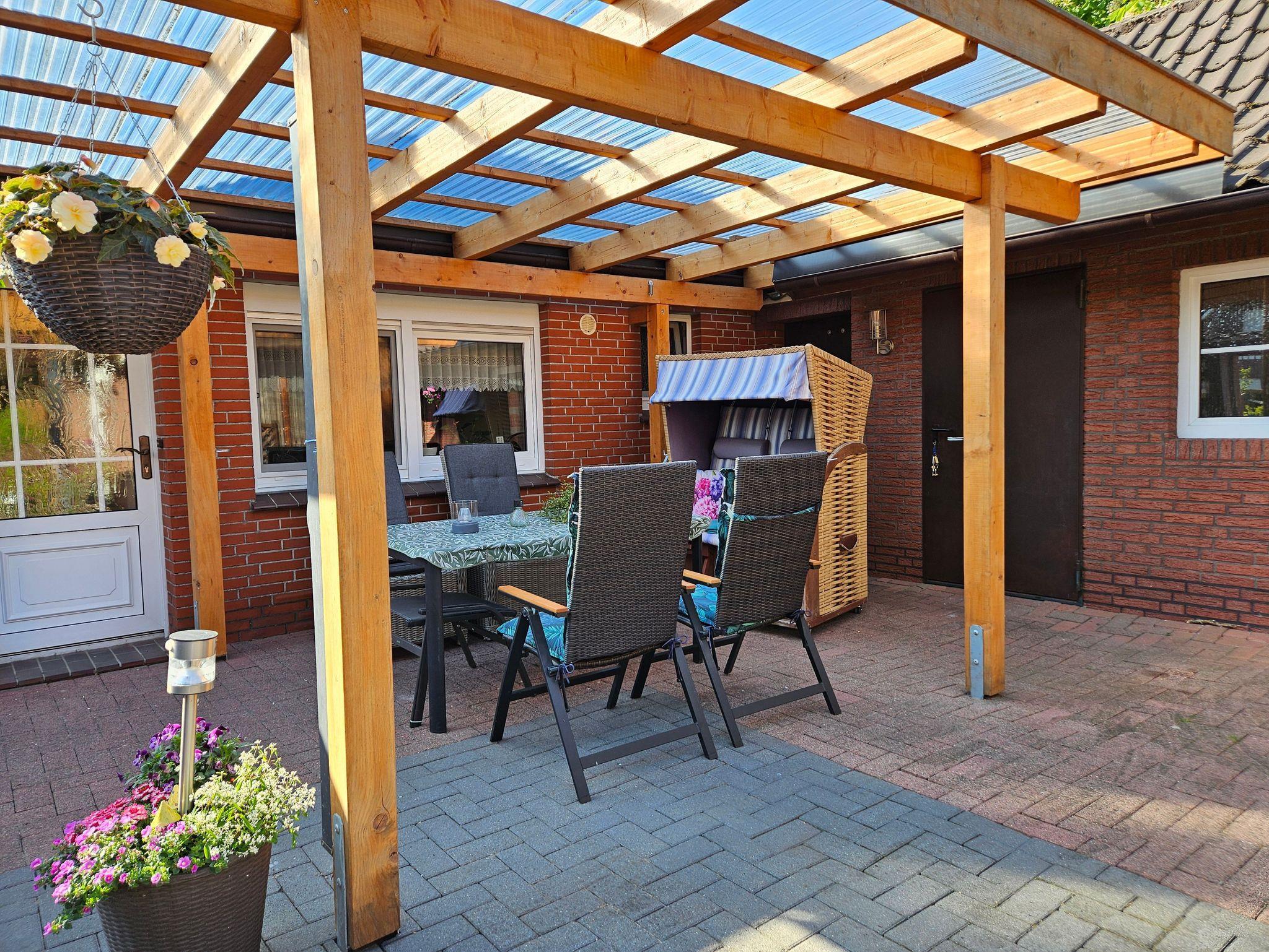 Gemütliche Ferienwohnung in Uplengen mit Terrasse, Strandkorb und umfangreicher Ausstattung für erholsame Tage.