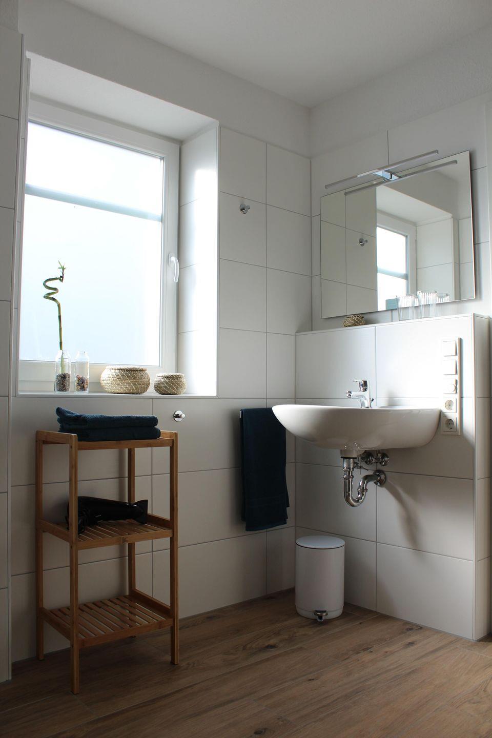 • Obergeschoss: Vinyl-Boden in Holzoptik, Fliesen im Bad