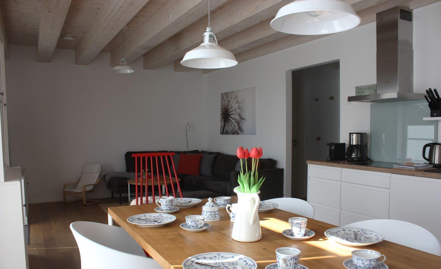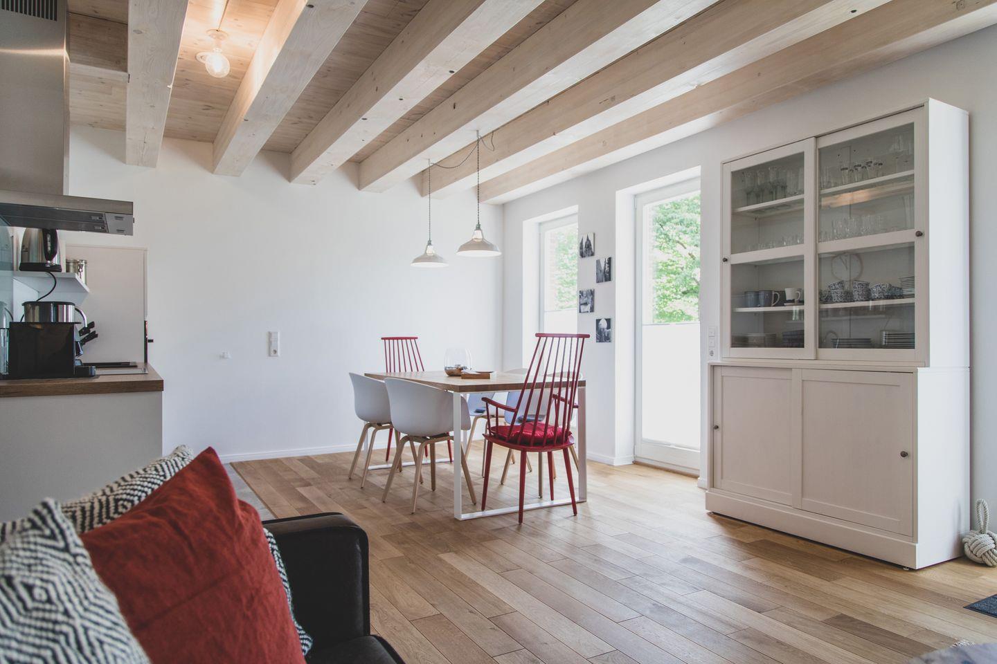 Die Ferienwohnung Memke ist ein Ort zum Wohlfühlen. Der großzügige Wohn-, Ess- und Küchenbereich ist offen gestaltet und lädt zum geselligen Verweilen ein. Die von der Scheune her zugängliche Wohnung bietet mit 77 qm Wohnfläche bequem Platz und Ausstattung für bis zu 6 Personen.