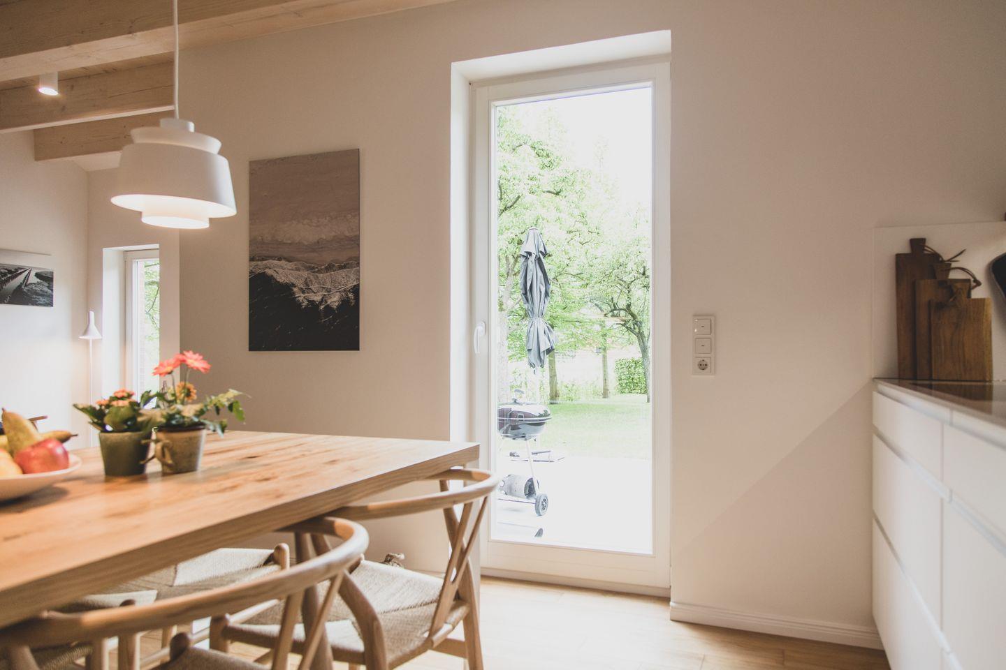Besonders hervorzuheben ist die großzügige Terrasse, die zu geselligen Stunden im Freien einlädt. Sie bietet einen wunderbaren Blick in den Garten, der zum Verweilen einlädt, sei es beim Grillen mit Freunden oder beim Entspannen unter dem Sonnenschirm. Kinder sind herzlich willkommen und können sich im Kinderzimmer oder auf der Liegewiese mit Spielzeug und Spaß austoben. Für die ganz kleinen Gäste stehen zudem Kinderhochstuhl und Babybett zur Verfügung.