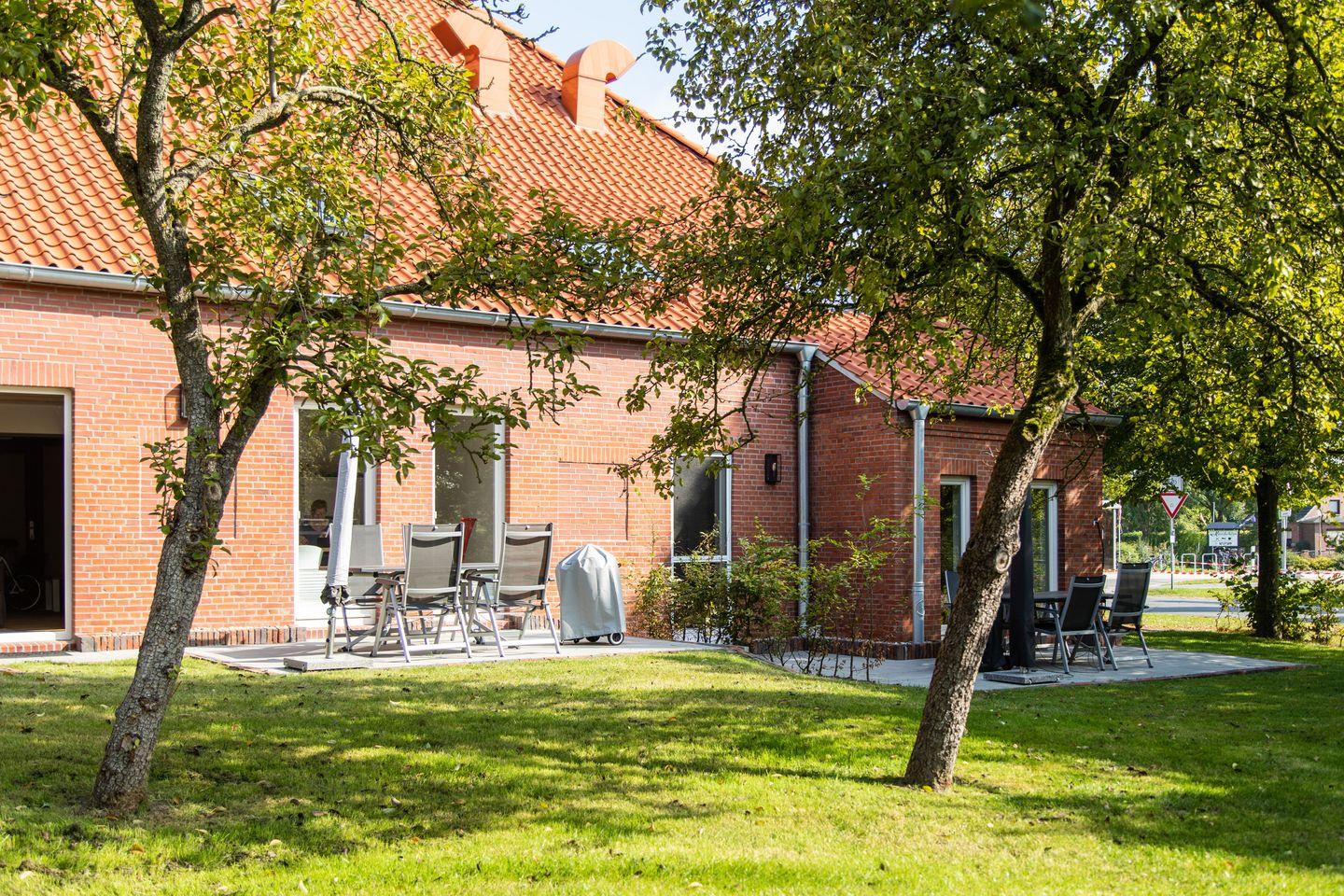 Gemütliche Ferienwohnung Gulfhof Boomgaarden 6 Lucas mit Terrasse und Gartenblick in Upleward.