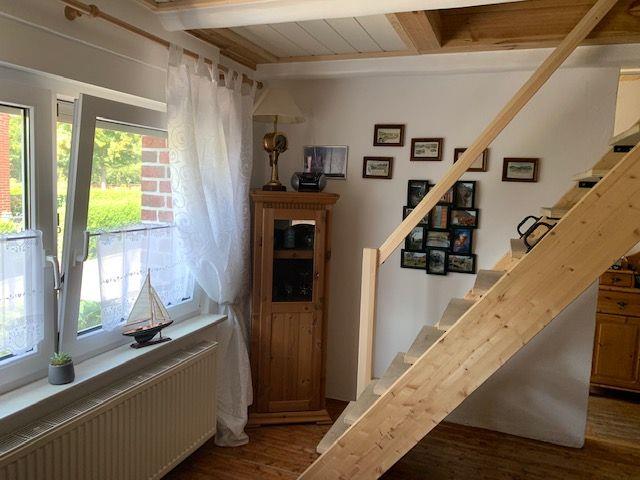 Das im Jahre 1900 erbaute Friesenhaus Lüttje Huus an´t Diek steht mitten im Dorfkern in der Ortschaft Upleward. Zum Deich und zur Nordsee sind es ca. 1 km und mit dem Fahrrad prima zu erreichen. Kommen Sie herein ins Lüttje Huus! Sie werden sich gleich wohlfühlen! Vom kleinen Flur gelangen Sie in den Koch-Wohn- und Essbereich. Die Küche ist voll ausgestattet: z. B. Kühl-Gefrier-Kombination, Pad-Kaffeemaschine, Wasserkocher, Toaster, Herd mit Ceranfeld. Am Esstisch mit gemütlichem Ostfriesensofa können Sie die zubereiteten Speisen genießen oder schöne Klönabende verbringen. Ein Kaminofen und die schöne Balkenlage sorgen für eine gemütliche Atmosphäre. Nebenan befindet sich das helle Bad mit ebenerdiger Dusche und WC. In einer kleinen Kammer im hinterem Bereich stehen Waschmaschine und Trockner bereit. Das Schlafzimmer mit Doppelbett lädt zum Träumen und Entspannen ein. Ebenfalls gibt es noch ein gemütliches Wohnzimmer, wo kuschelige Abende verbracht werden können. Alle Räume im EG verfügen über Außenrollos. Es befinden sich einige kleine Stufen im Haus. Über eine Treppe kommen Sie ins Dachgeschoß, wo sich noch ein Schlafbereich mit 2 Einzelbetten und eine gemütliche Leseecke befinden. Die große überdachte Terrasse lädt zum frische Nordseeluft schnappen und Relaxen ein. Für die nötige Wärme sorgt ein Außenholzofen. Ein Holzkohlegrill steht zur Verfügung. Die Aussicht auf die Landschaft ist traumhaft. Im Strandkorb genießen Sie die Sonnenuntergänge. Im Abstellschuppen können mitgebrachte Fahrräder untergestellt werden. Ein dort aufgestellter Kühlschrank sorgt für kalte Getränke in den lauen Sommerabenden. Es gibt am Haus zwar keinen eigenen Parkplatz, Da das Haus ist einer kleinen Sackgasse liegt, können Sie problemlos direkt vor der Haustür parken. WLAN ist verfügbar!