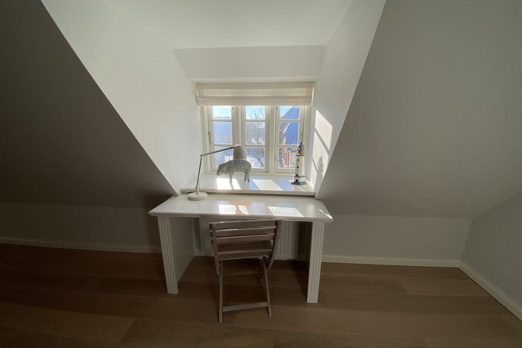 Im Erdgeschoss befindet sich das großzügige, lichtdurchflutete Wohnzimmer mit Kaminofen, gemütlichem Lesesessel, LCD-TV und direktem Gartenzugang. Die Farbgestaltung ist hell und bietet eine herrliche moderne Wohnatmosphäre mit Wohlfühlcharakter. Der Esstisch schließt sich der modernen Komfortküche an. Zur Ausstattung gehören Geschirrspüler, Backofen und Mikrowelle. Das Schlafzimmer mit Doppelbett im Erdgeschoss bietet ein en Suite Duschbad. Zusätzlich gibt es im Erdgeschoss ein Gäste-WC und einen kleinen separaten Raum mit Waschmaschine und Trockner. Im Obergeschoss befindet sich das geräumige Elternschlafzimmer mit Doppelbett und das Kinderzimmer mit 2 Alkovenbetten (1,95 x 0,90). Weiterhin steht ein modernes Vollbad mit Dusche und Sauna zur Verfügung. Dieses lädt auch in der ungemütlichen Jahreszeit zur Entspannung ein. Genießen Sie den sonnigen eigenen Garten in Süd- und Westausrichtung mit Terrasse, eigenem Strandkorb sowie die ruhige Lage mit kurzen Wegen zum Strand (ca. 10 Min.) und in das Dorf mit seiner hervorragenden Infrastruktur.