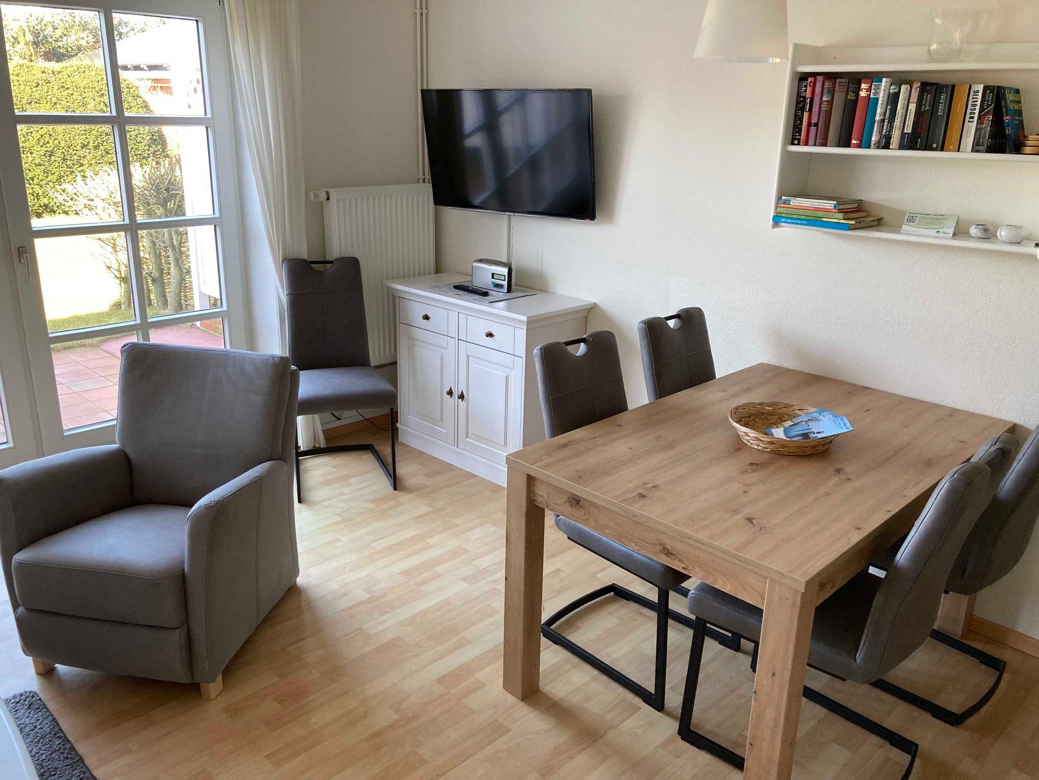 ...ist ein 4- Zimmer-Reihenhaus mit Terrasse für 4 bis 6 Personen. Es liegt in Ost-Westrichtung und verfügt über einen separaten Eingang . 3 Schlafräume sowie ein Duschbad, ein einzelnes WC, sowie ein grosses helles Wohnzimmer gehören zur Wohnung. Die tolle Küche ist im Wohnzimmer ( mit 40ZollTV) integriert.