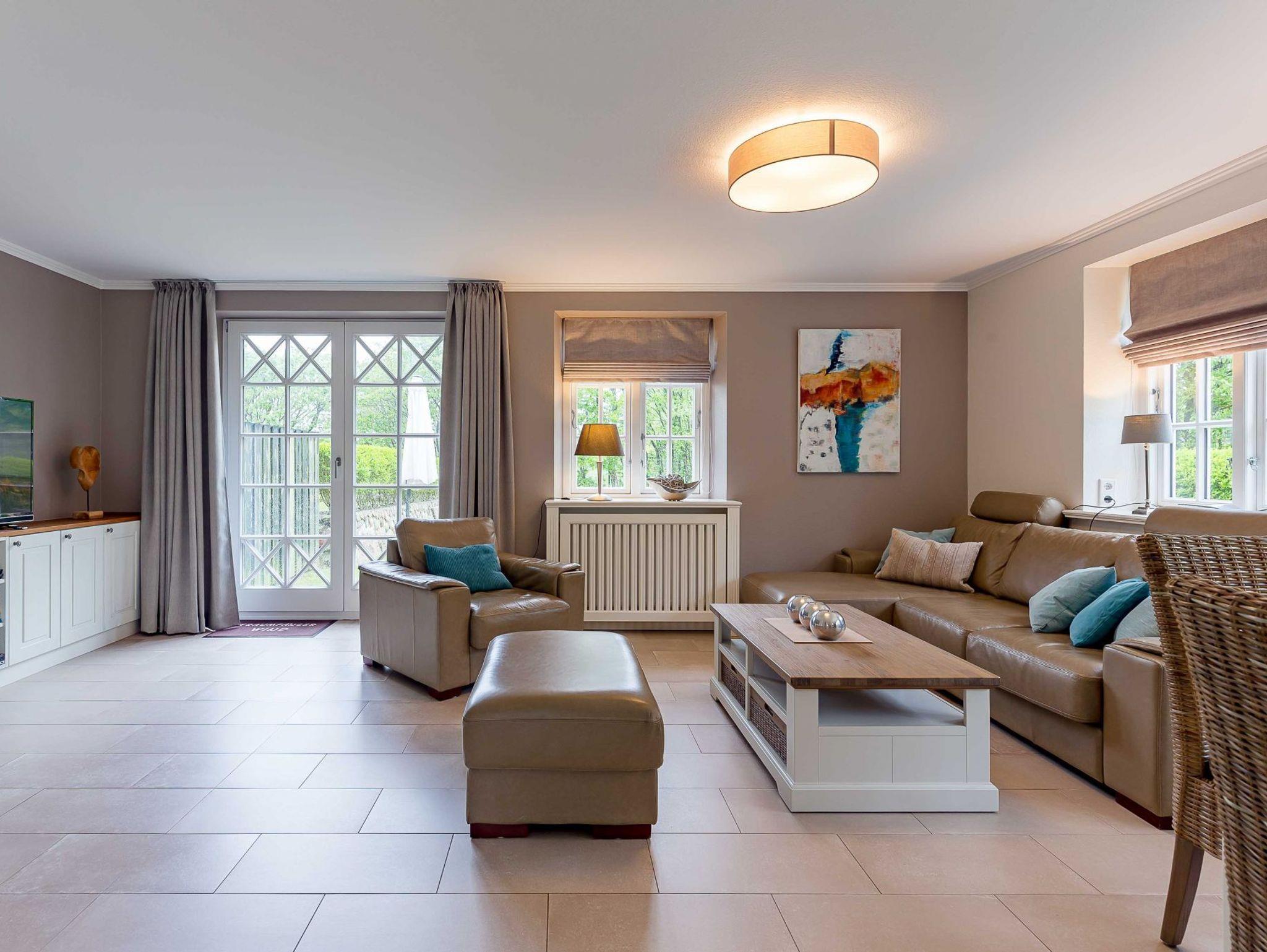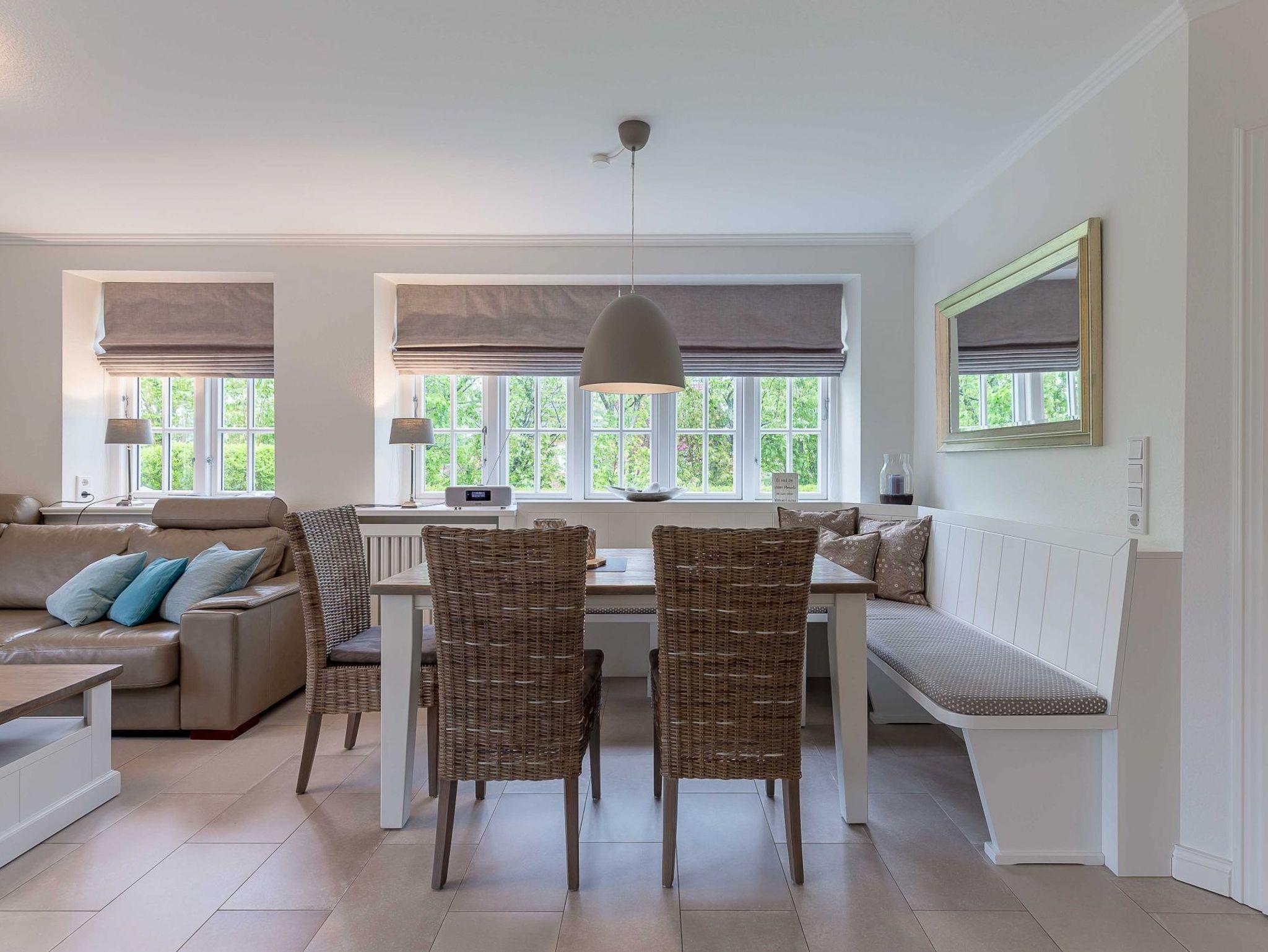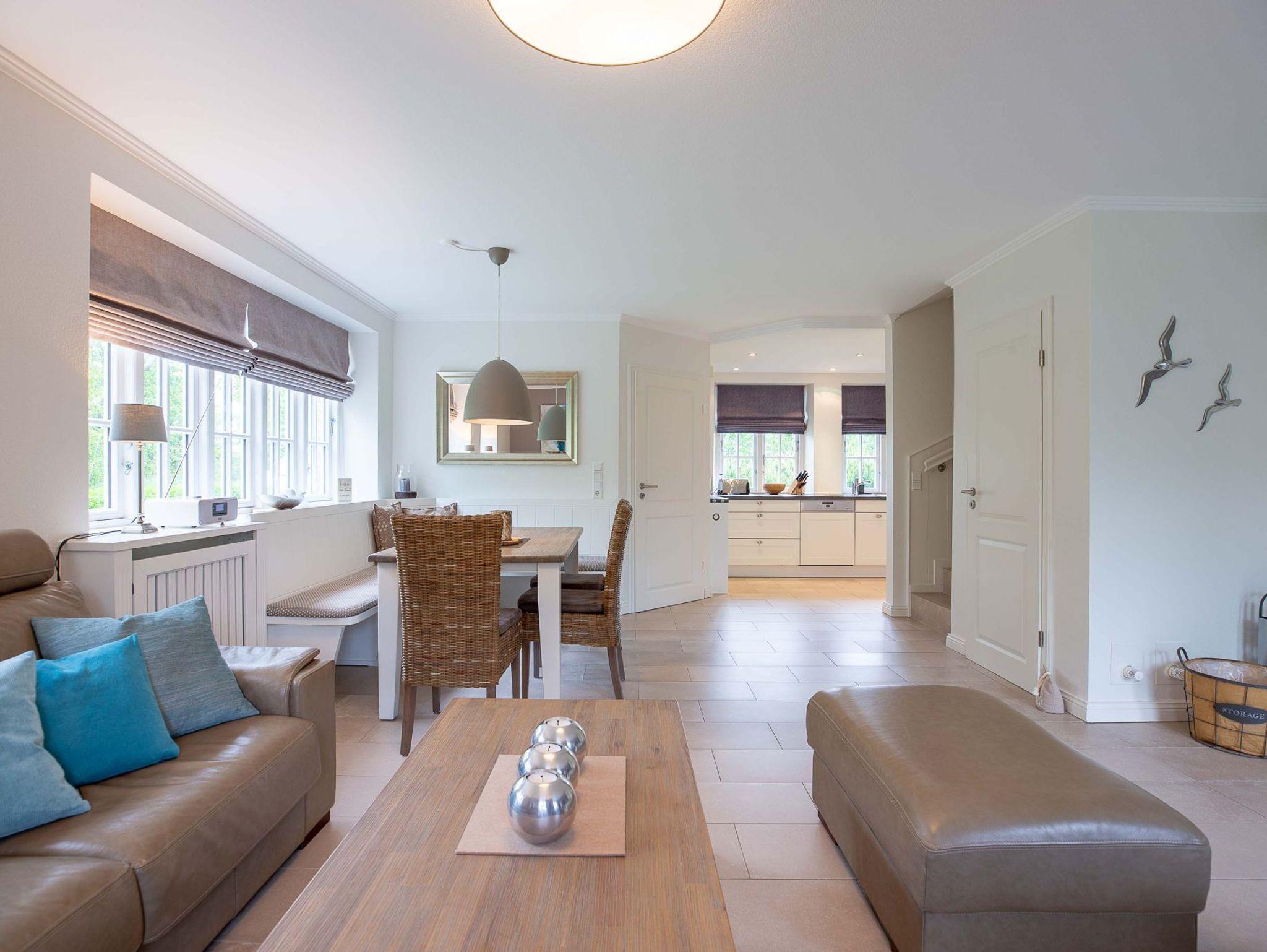 Genießen Sie modernen Komfort und Reetdachcharme im Doppelhaus Traumfänger Wind in Utersum, nahe Strand und Meerblick.