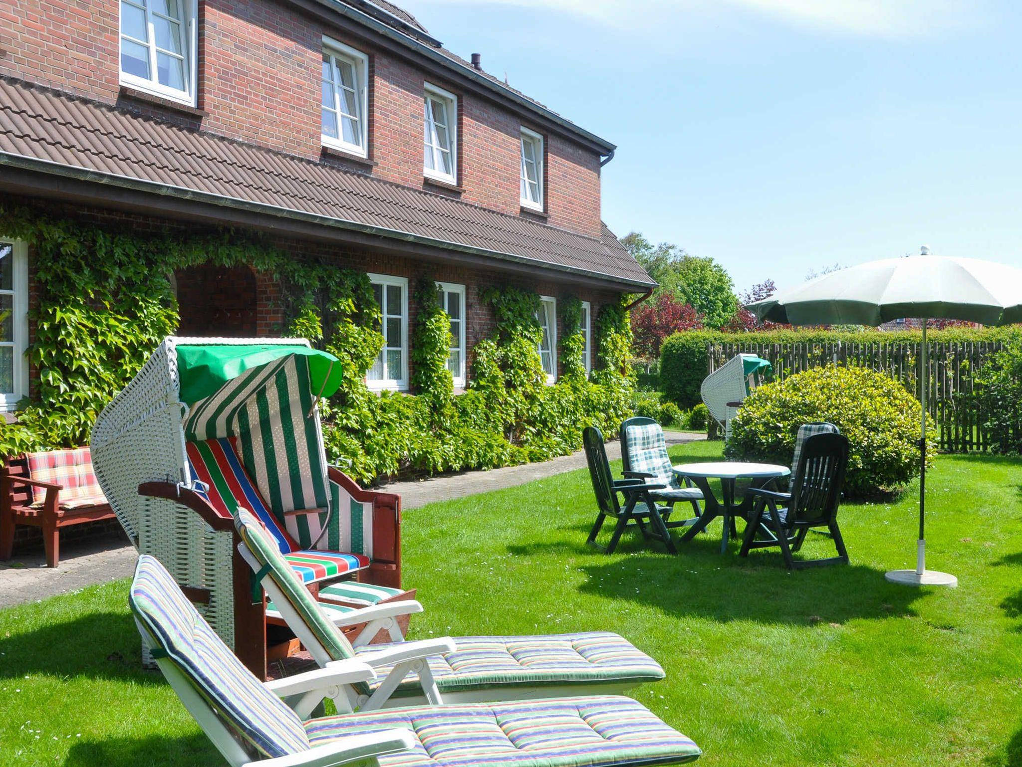 Gemütliche 2-Zimmer-Ferienwohnung "Hooge" im Haus am Deich mit großem Garten nahe Strand und Nationalpark Wattenmeer.