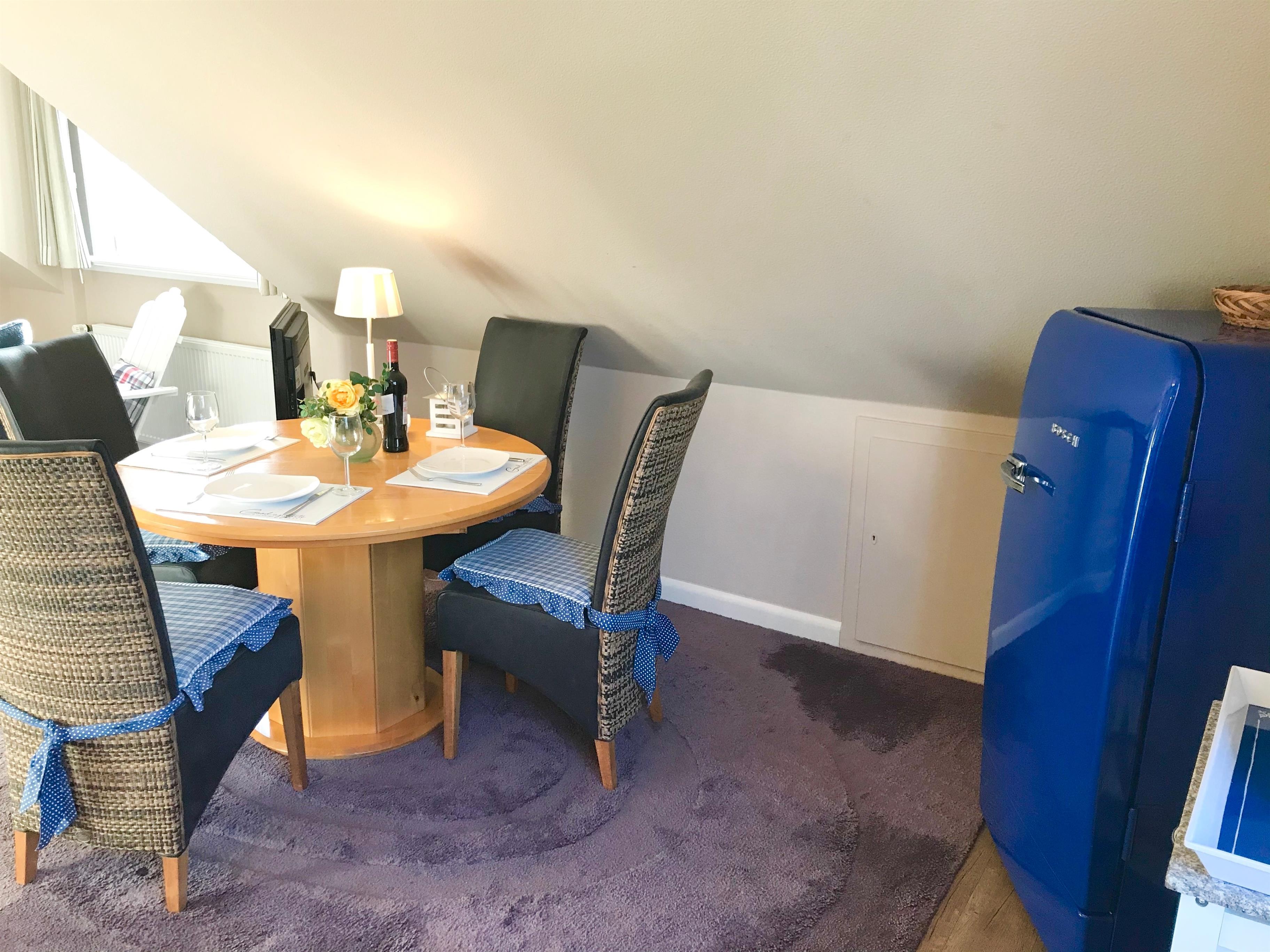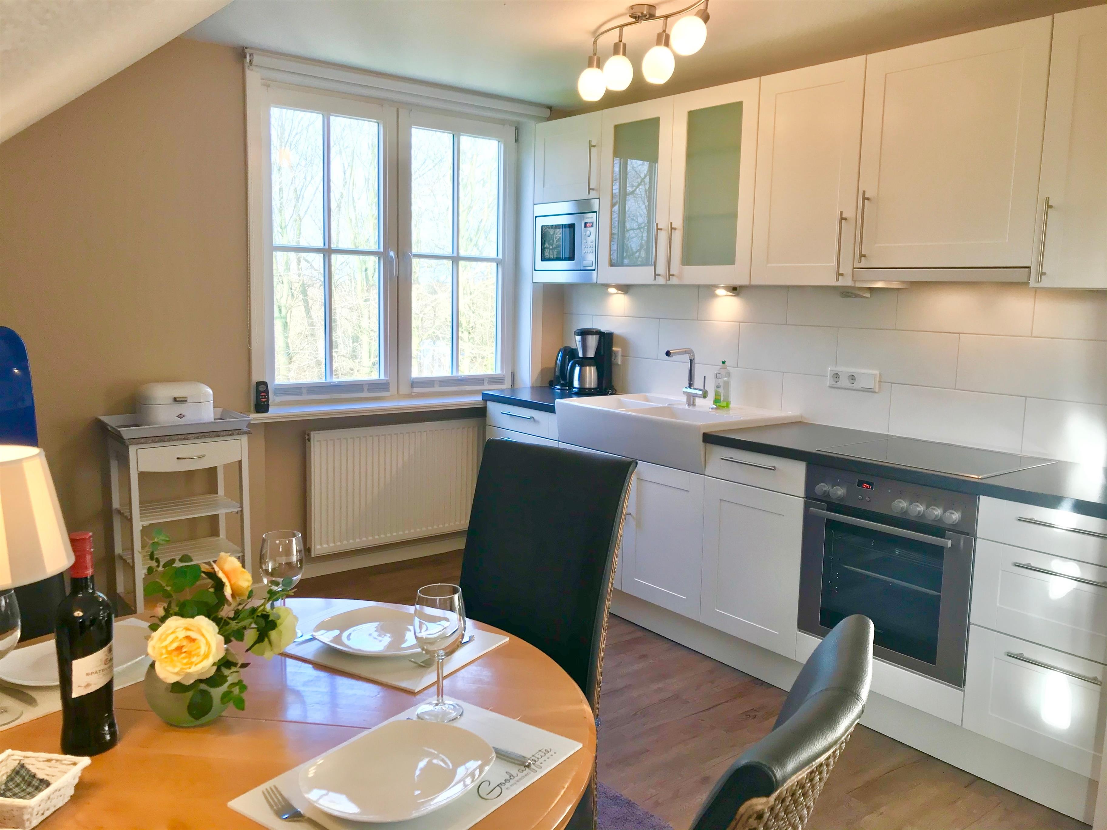 Die Ferienwohnung befindet sich im Obergeschoss und ist optimal für 4 Personen geeignet. Jedes der beiden Schlafzimmer hat ein eigenes Bad. Von einer Seite der Wohnung haben Sie den Blick in Richtung Meer. Ein Ofen im Wohnzimmer sorgt für gemütliche Winterabende. Im einem Teil des Gartens stehen Ihnen mit Strandkorb, Tisch und Tühle, sowie 2 Liegen zur Verfügung. Der große Garten bietet ausreichend Platz zum erholen und spielen für die Kinder. Eine Waschmaschine und ein Trockner, als auch Wäscheleinen im Garten stehen den Gästen der beiden Wohnungen gemeinschaftlich zur Verfügung. Ihre Versorgung vor Ort ist ebenfalls gesichert, denn das hübsche und ruhige Inseldorf Utersum bietet mehrere Restaurants und Einkaufmöglichkeiten. Auch ein Bäcker ist fußläufig in wenigen Minuten zu erreichn. Abends genießen Sie traumhafte Sonnenuntergänge am Strand, an dem Sie tagsüber sportlich oder ruhig das Meer erleben. Dieses ist nur einige Fußminuten vom Haus entfernt. Auf keinen Fall sollten Sie sich den traumhaften und unvergesslichen Sonnenuntergang am Strand entgehen lassen.