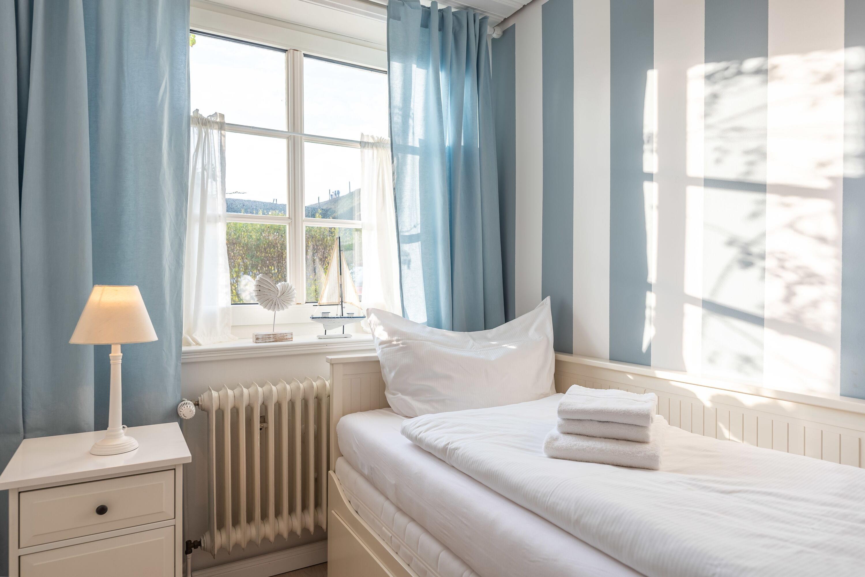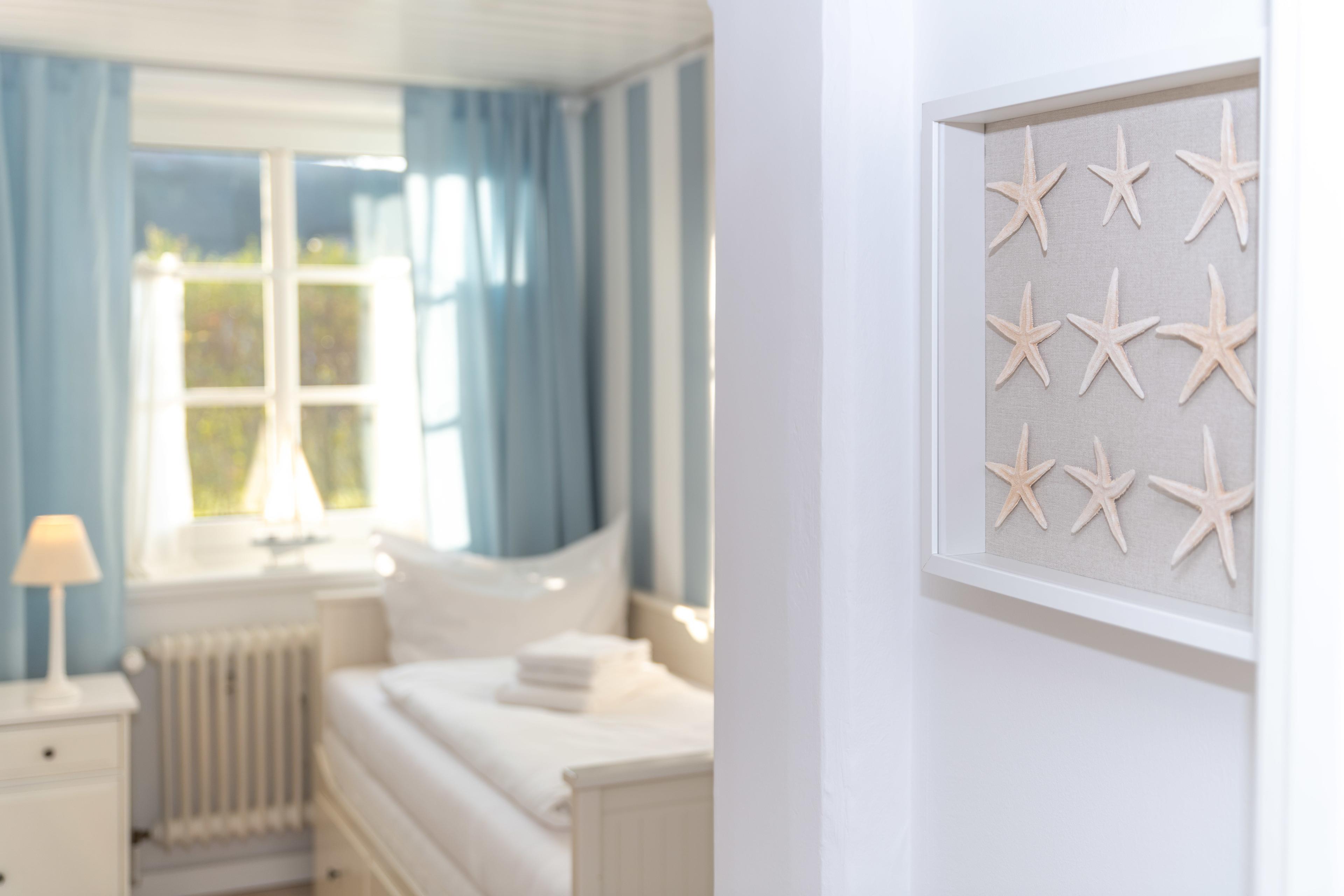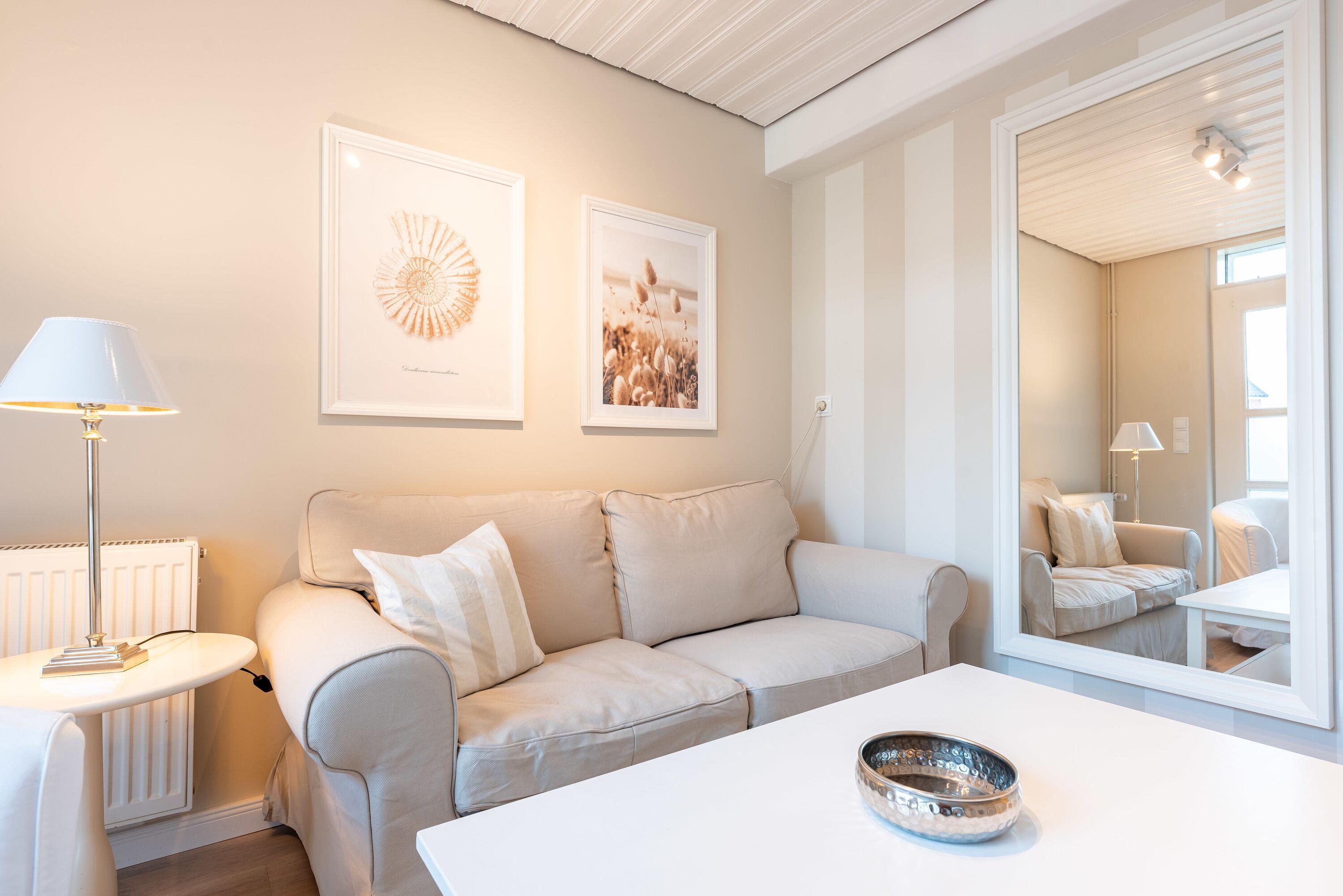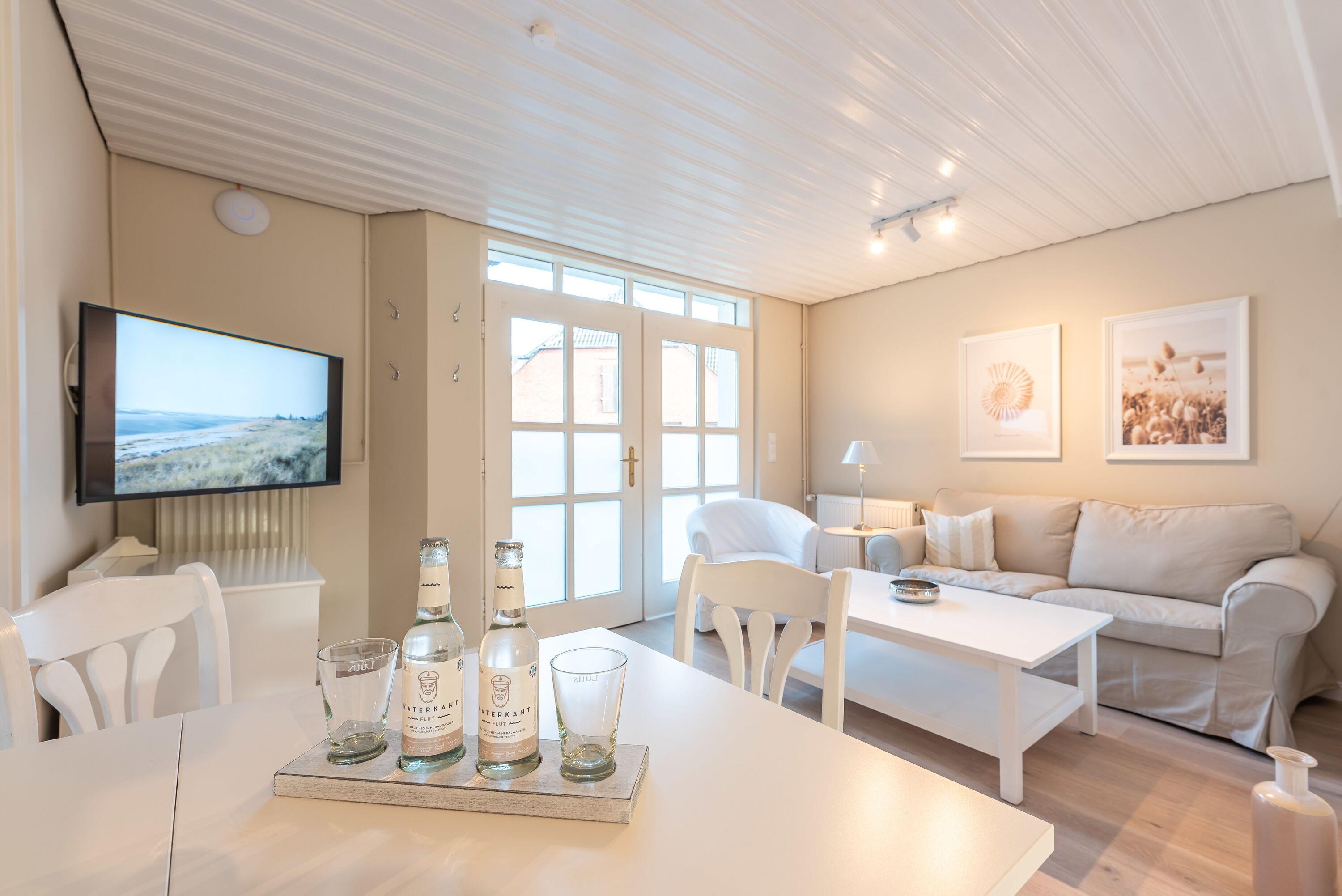 Diese schöne Dreizimmerwohnung besticht durch ihre Gemütlichkeit. Die hell gehaltenen Sandtöne und die Kombination aus gemütlichen Farben mit heller Einrichtung setzen diese Wohnung gekonnt in Szene. 2022 von Grund auf saniert und mit tollen Extras wie USB/ USB Mini Steckdosen an jedem Nachttisch, integriertem Radio im Badezimmer, hochwertigen original Tempur-Matratzen sowie einem 43 Zoll großem Fernseher ausgestattet, um Ihnen eine wunderbare Auszeit und die bestmögliche Entspannung bieten zu können. Die Wohnung verfügt über ein Doppelbett und ein Einzelbett mit ausziehbarer zusätzlicher Matratze, das sich ideal für zwei Kinder eignet. Direkt vor dieser Wohnung befindet sich ihre eigene Terrasse mit zartgrau gehaltenen Terrassenmöbeln und dem wohl besten Bäcker um die Ecke.