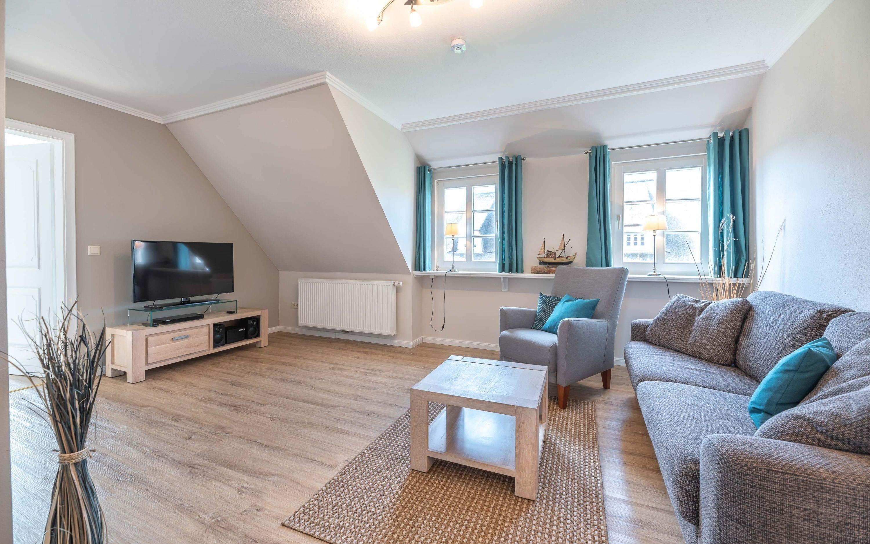 Schönes Wohnen in Utersum auf Föhr. Die helle und freundliche Ferienwohnung ist genau richtig, um die schönste Zeit des Jahres zu genießen. Die Wohnung bietet Platz für 4 Personen. Das über 600 Jahre alte Dorf im äußersten Südwesten der Insel mit seinen urgemütlichen Reetdachhäusern im alten Ortskern und schönen, neu gebauten Häuser am Rande des Dorfes, hat einiges an Schönheit und Erholungsmöglichkeiten zu bieten. Erkunden Sie unsere Insel auf dem Fahrrad, wandern Sie durch Marsch und Geest, verbringen Sie den Tag sportlich aktiv oder faulenzen Sie an unserem kinder- und familienfreundlichen Strand. Zum Abschluss eines ereignisvollen Tages genießen Sie am besten den wohl schönsten Sonnenuntergang Deutschlands auf der großen Sonnenuntergangsbank.