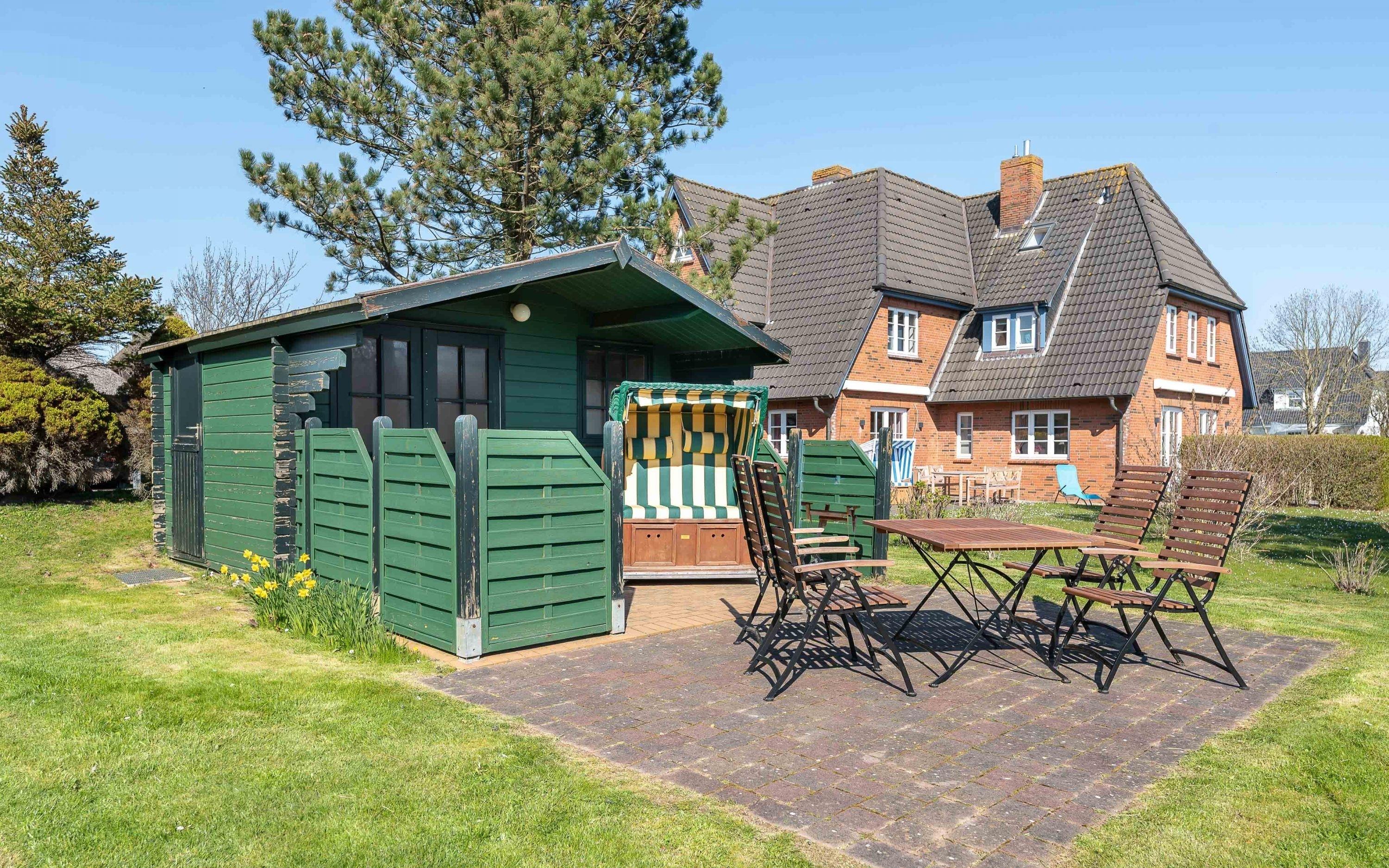 Helle Ferienwohnung in Utersum auf Föhr mit Garten, Terrasse und Strandkorb für erholsame Tage am kinderfreundlichen Strand.