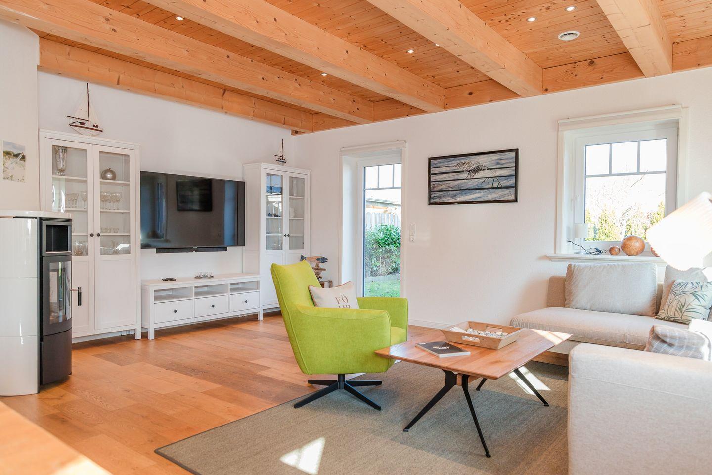 Reetgedecktes Ferienhaus, modern ausgestattet, mit Ethanol-Kamin und Garten mit Terrasse.
