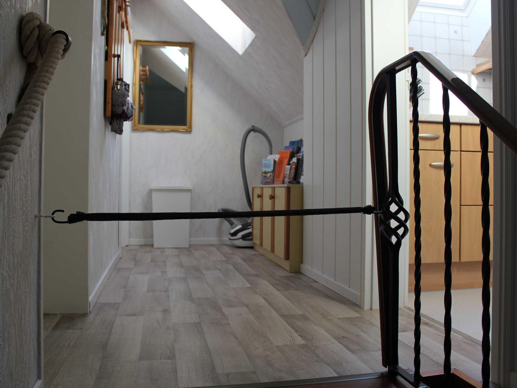 Es ist eine liebevoll gestaltete 3 Sterne Oberwohnung in familiärer Atmosphäre. Große Räume mit schönem Ambient Die 80 qm große Wohnung besteht aus vier Zimmern, Küche und Bad mit hochwertiger Ausstattung und bietet Platz für 1 bis 5 Personen, zusätzlich 1 Kinderbett. Haupt-Schlaffzimmer mit Doppelbett 2x2m.
