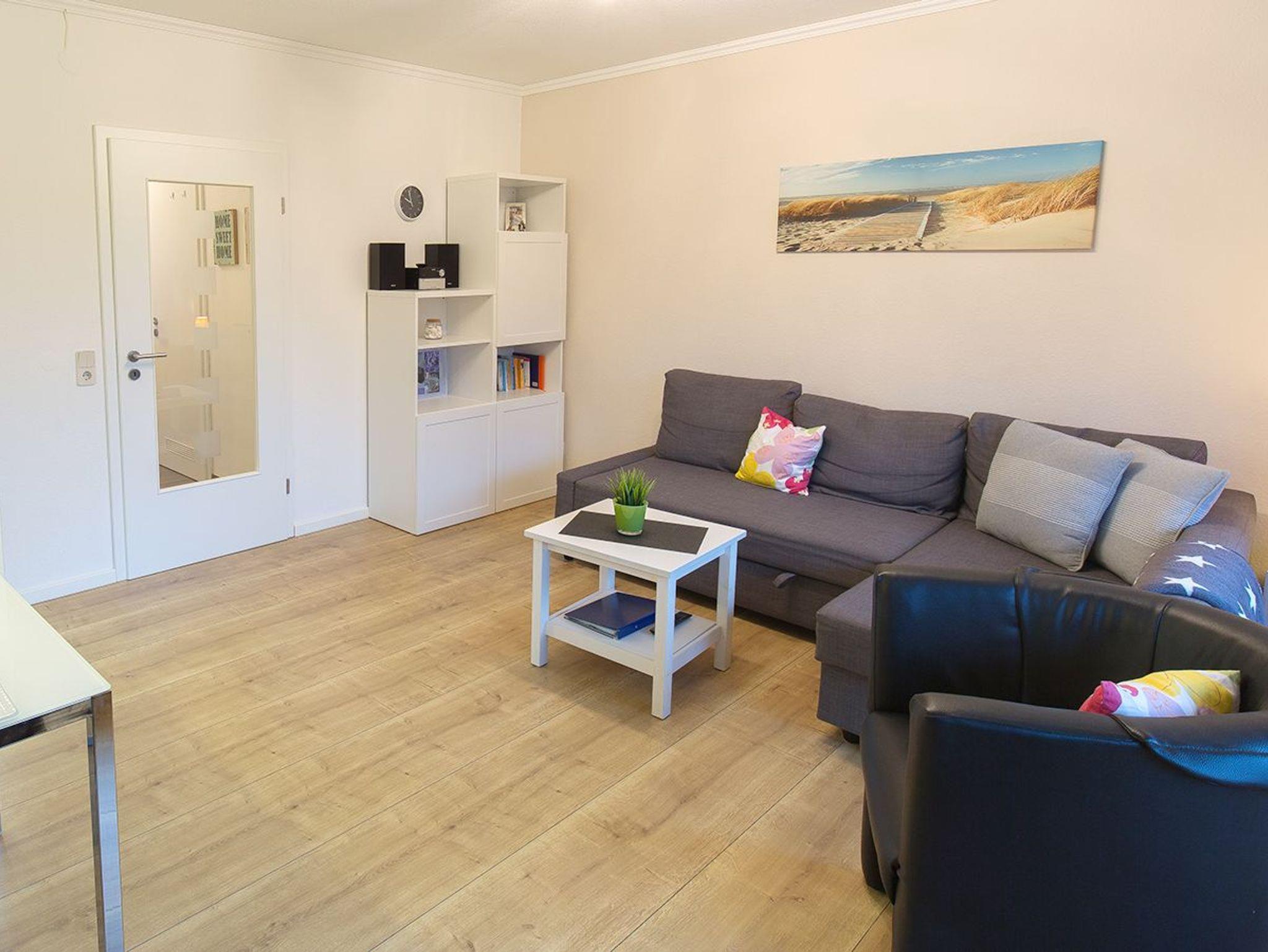 Unsere gemütliche EG-Wohnung liegt zentral am Ende eine Spielstraße. Über einen kleinen Privatweg erreichen Sie bequem zu Fuß alle Geschäfte und den Strand. Durch den einladenden Flur mit Garderobe gelangen Sie in das modern eingerichtete Wohnzimmer mit Ottomane und Sessel. Integriert ist die komplett eingerichtete L-Küchenzeile mit Essbereich. Der erste Schlafraum hat ein bequemes Boxspringbett in den Maßen 180x200, das Kinderzimmer ist mit einem Etagenbett ausgestattet. Das moderne Duschbad verfügt über einen bodengleichen Einstieg, eine komfortablen Waschplatz und eine Waschmaschine. Entspannen Sie auf der schönen Terrasse in frischer friesischer Luft. Ihr Fahrzeugstellplatz liegt direkt vor der Haustür.