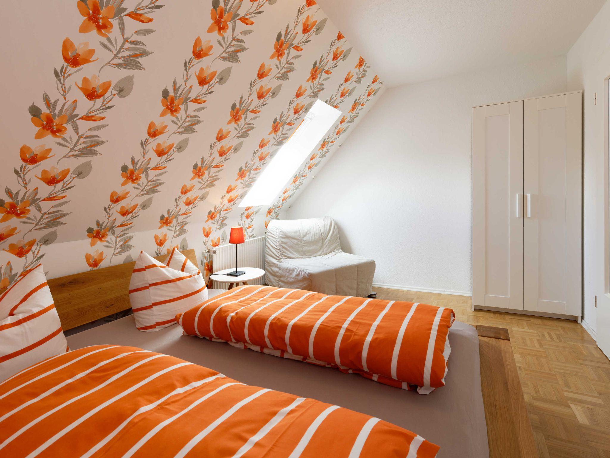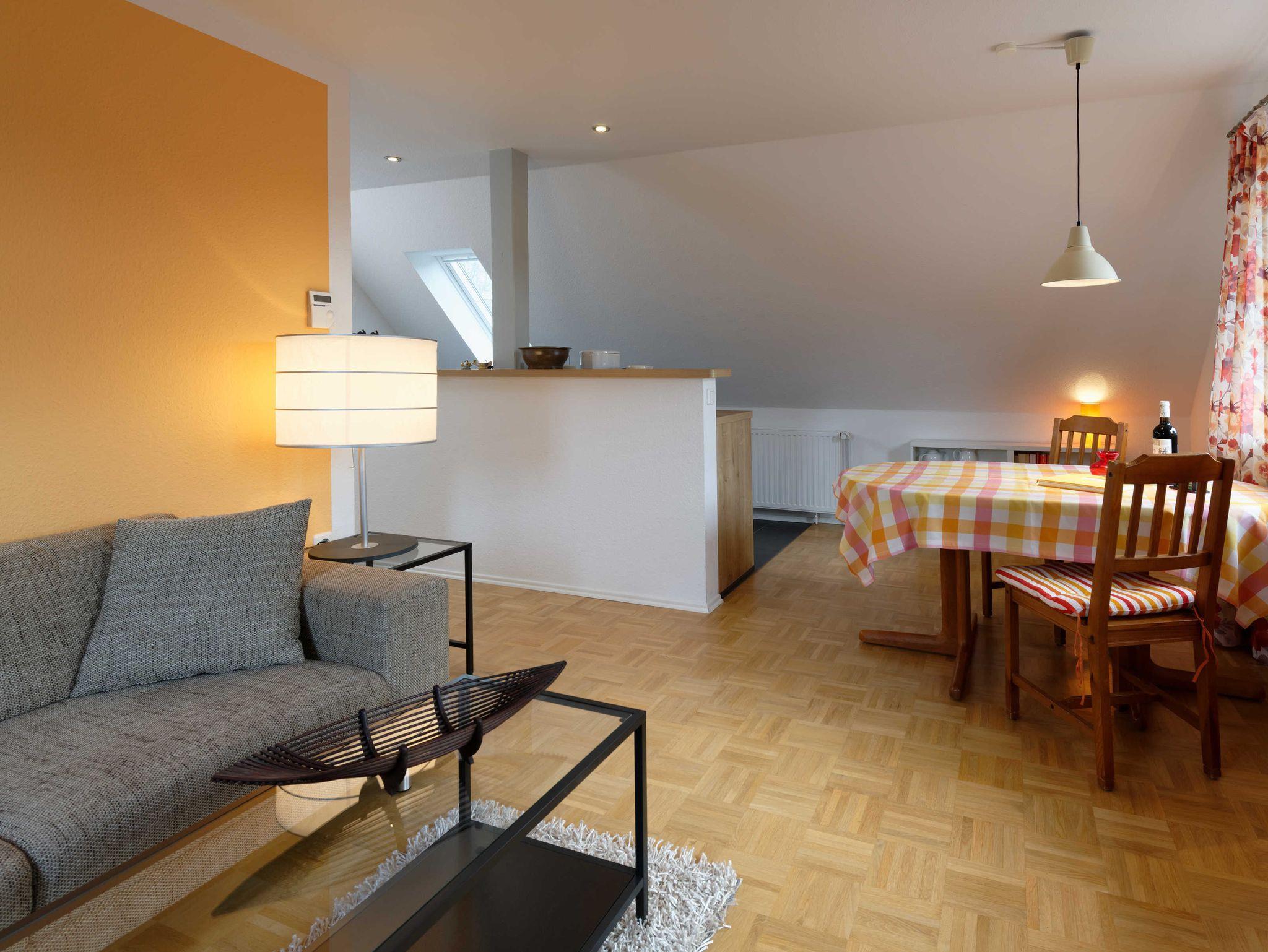 Die Wohnung befindet sich im Dachgeschoss (1. Stock) des Haupthauses.