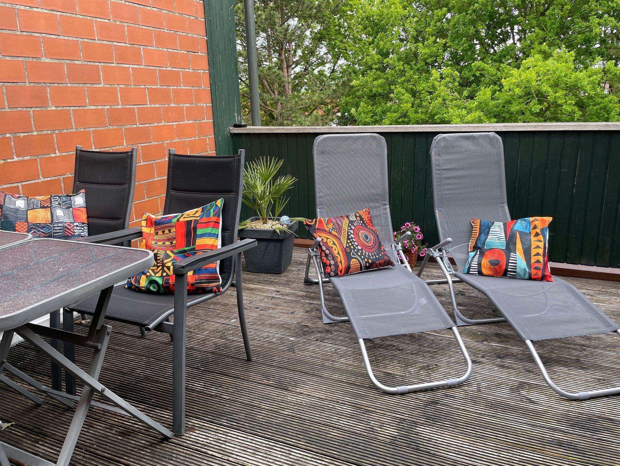 Ferienwohnung Blue Sky in Dangast bietet moderne Architektur und zwei Balkone mit Blick ins Grüne.