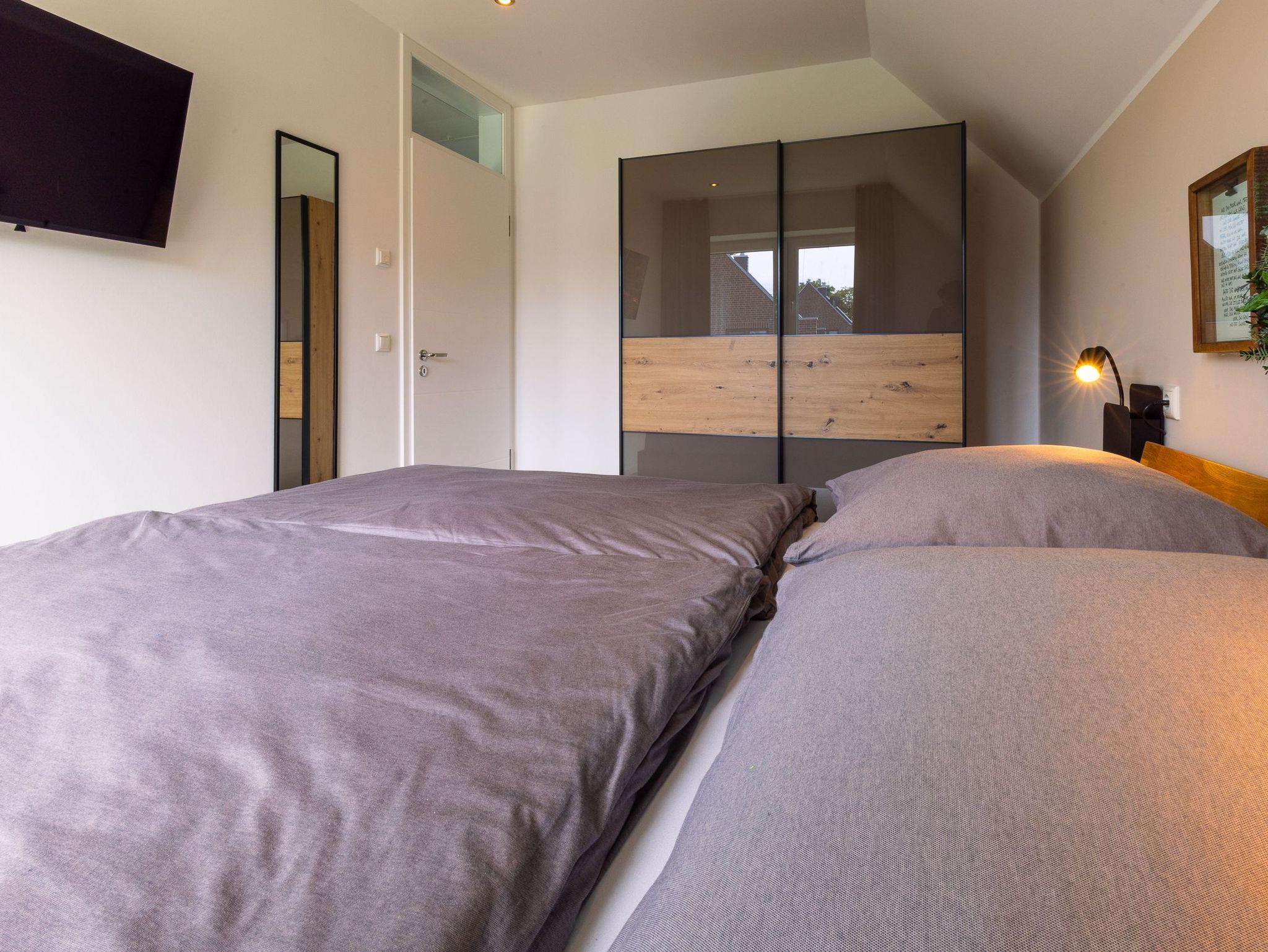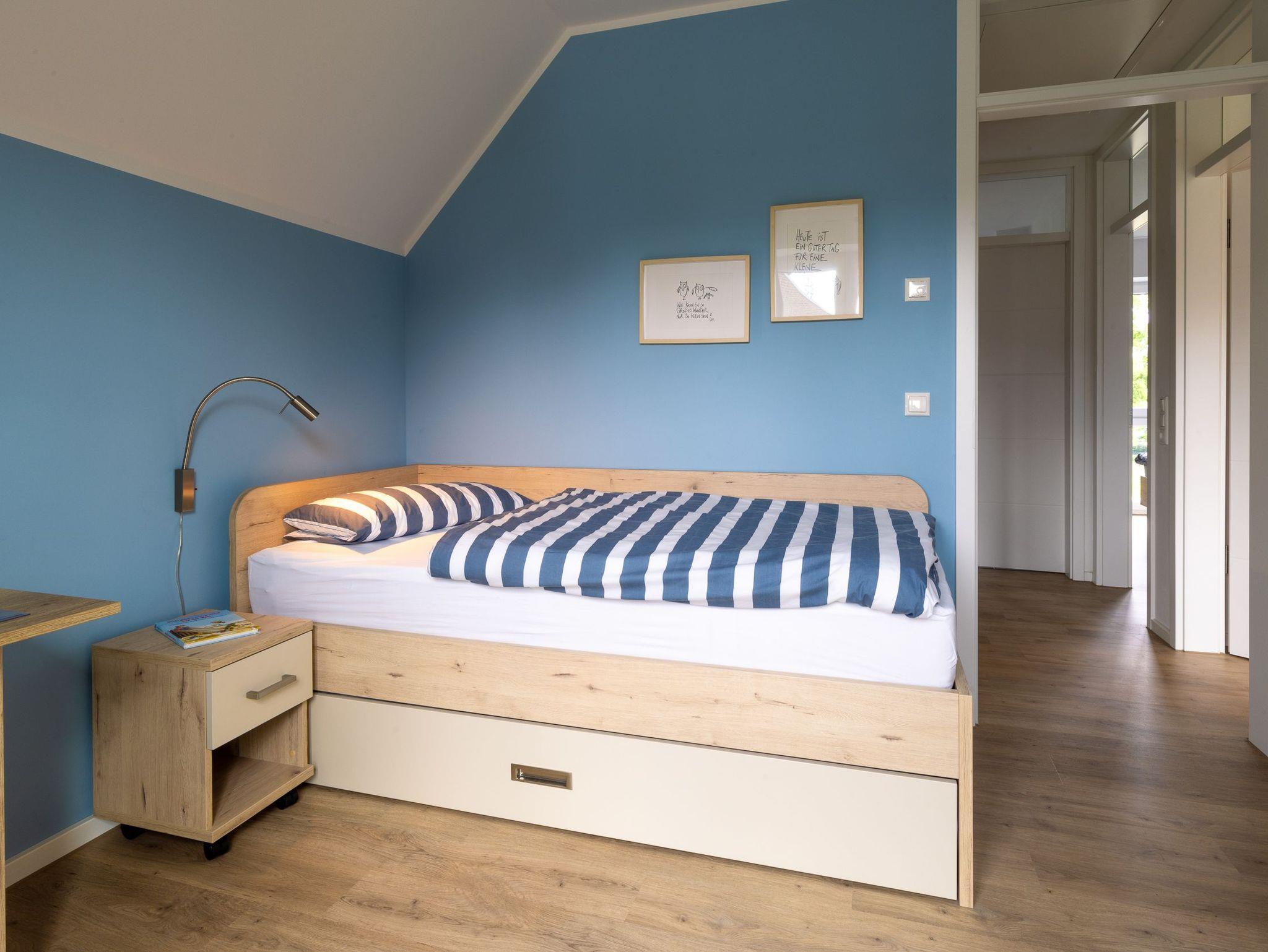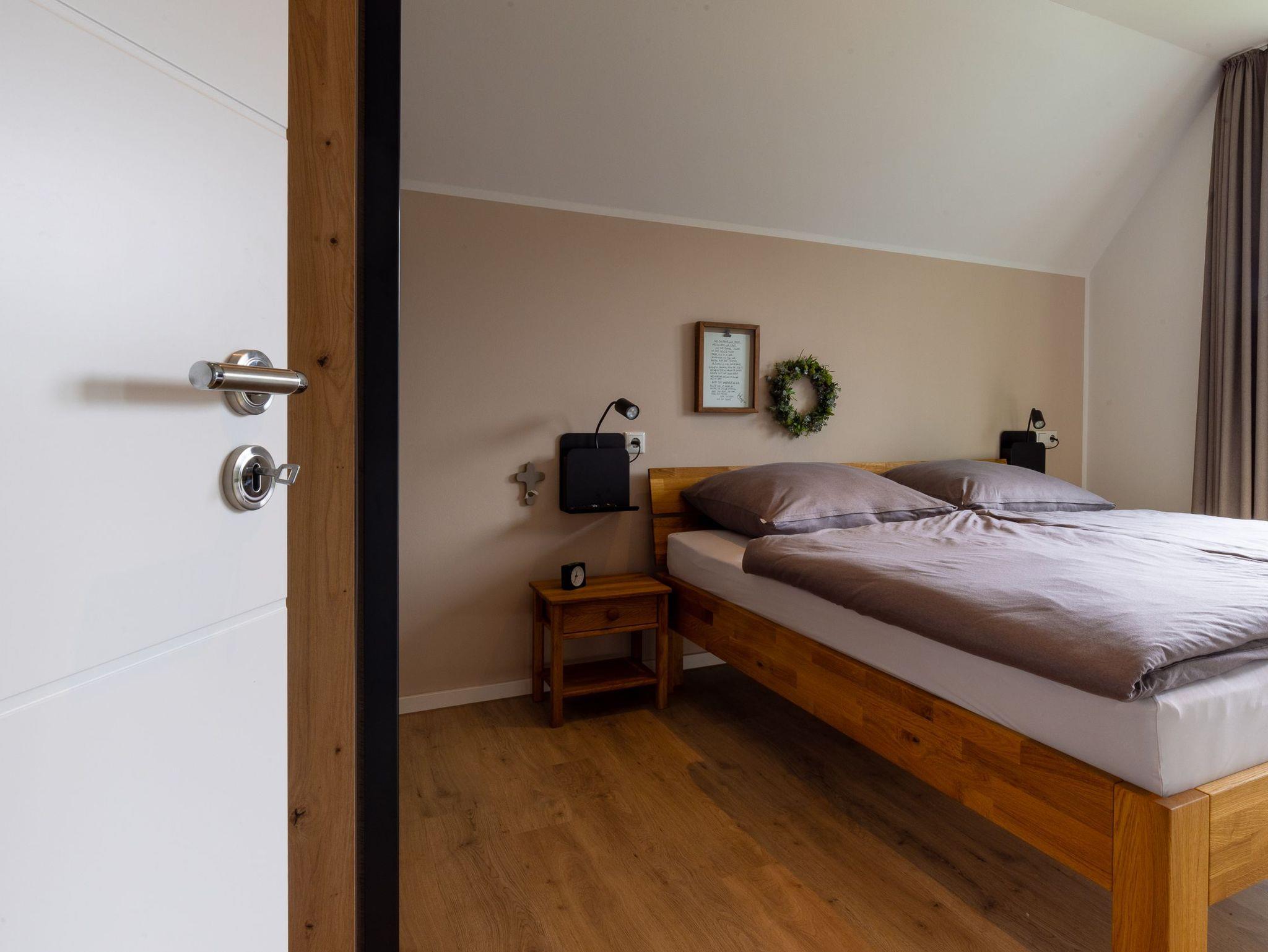 Der Neubau bietet Platz für bis zu 6 Personen und verfügt über 3 gemütliche Schlafzimmer im Obergeschoss, in denen Sie nach einem ereignisreichen Tag zu Ruhe kommen können. Zwei Schlafzimmer verfügen über je ein 1,80m breites Doppelbett sowie je einen Fernseher, das dritte Schlafzimmer ist als mögliches Kinderzimmer mit einem ausziehbaren Bett ausgestattet.
