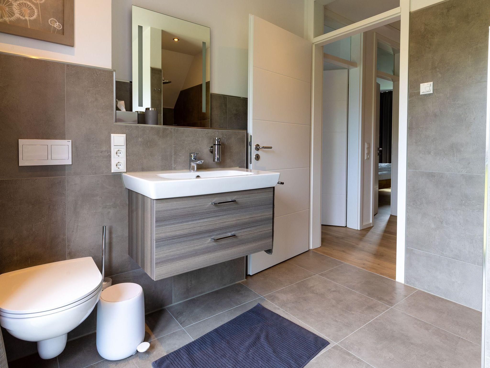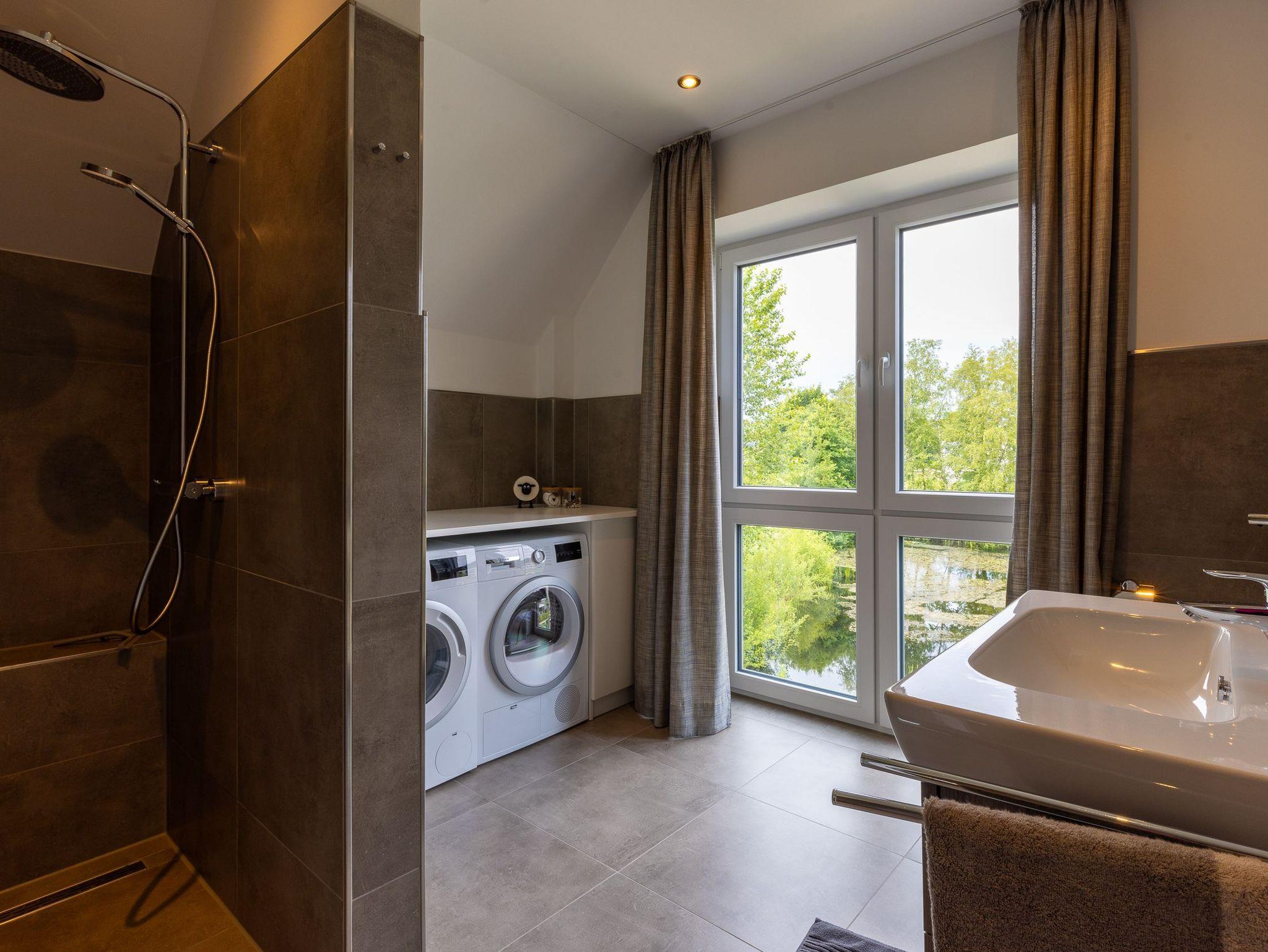 Im Ferienhaus stehen Ihnen zwei großzügig gestaltete Badezimmer zur Verfügung, die mit jeweils einer barrierefreien Dusche ausgestattet sind. Weiterhin verfügt die Wohnung über eine Waschmaschine und einen Trockner.