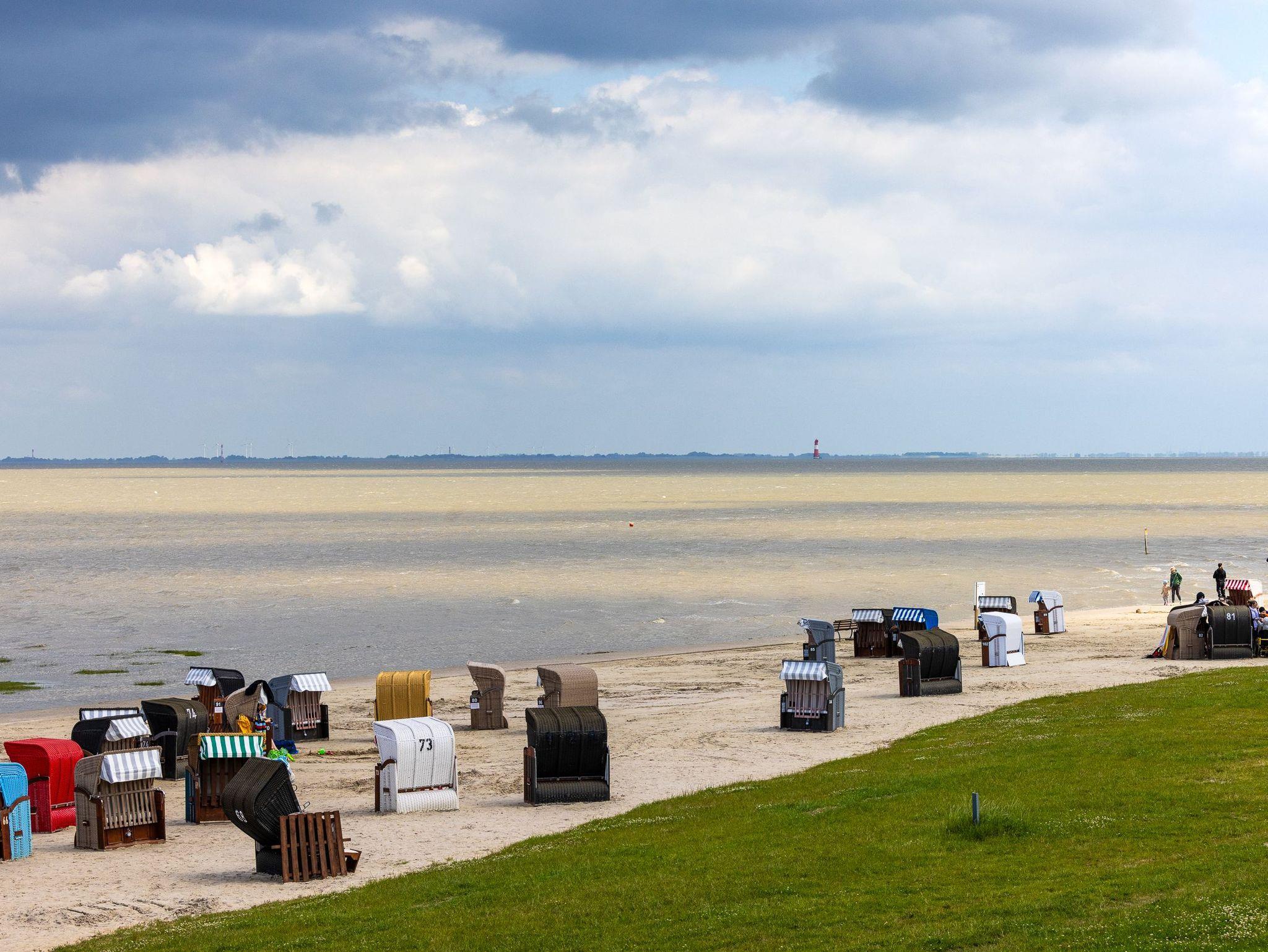 Für Spaziergänge auf dem Deich steht ein Bollerwagen zur Verfügung, der gerne genutzt werden darf. Auch Sandspielzeug liegt bereit.