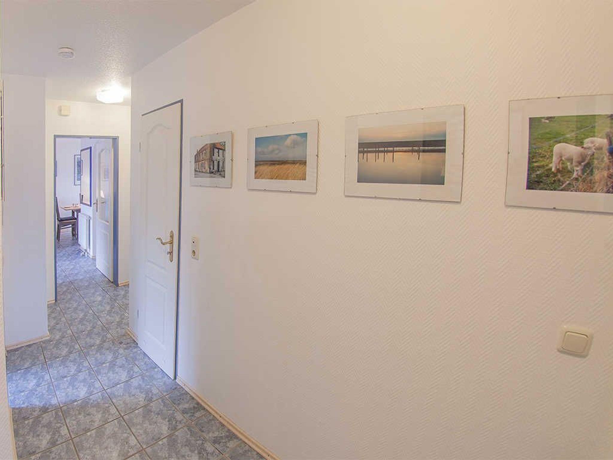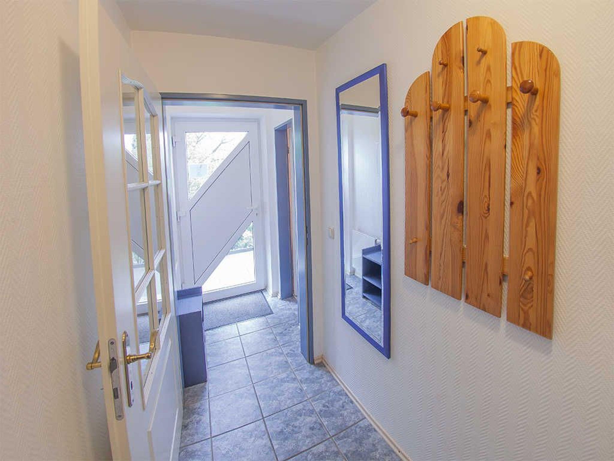 Die ebenerdig gelegene Ferienwohnung Fischer liegt orts- und strandnah mit eigenem Stellplatz direkt vor der Ferienhausanlage. Von einer großzügigen Diele mit Garderobe und Gäste-WC gelangen Sie zunächst in einen weiteren Flurbereich, der zu den anderen Räumen führt.