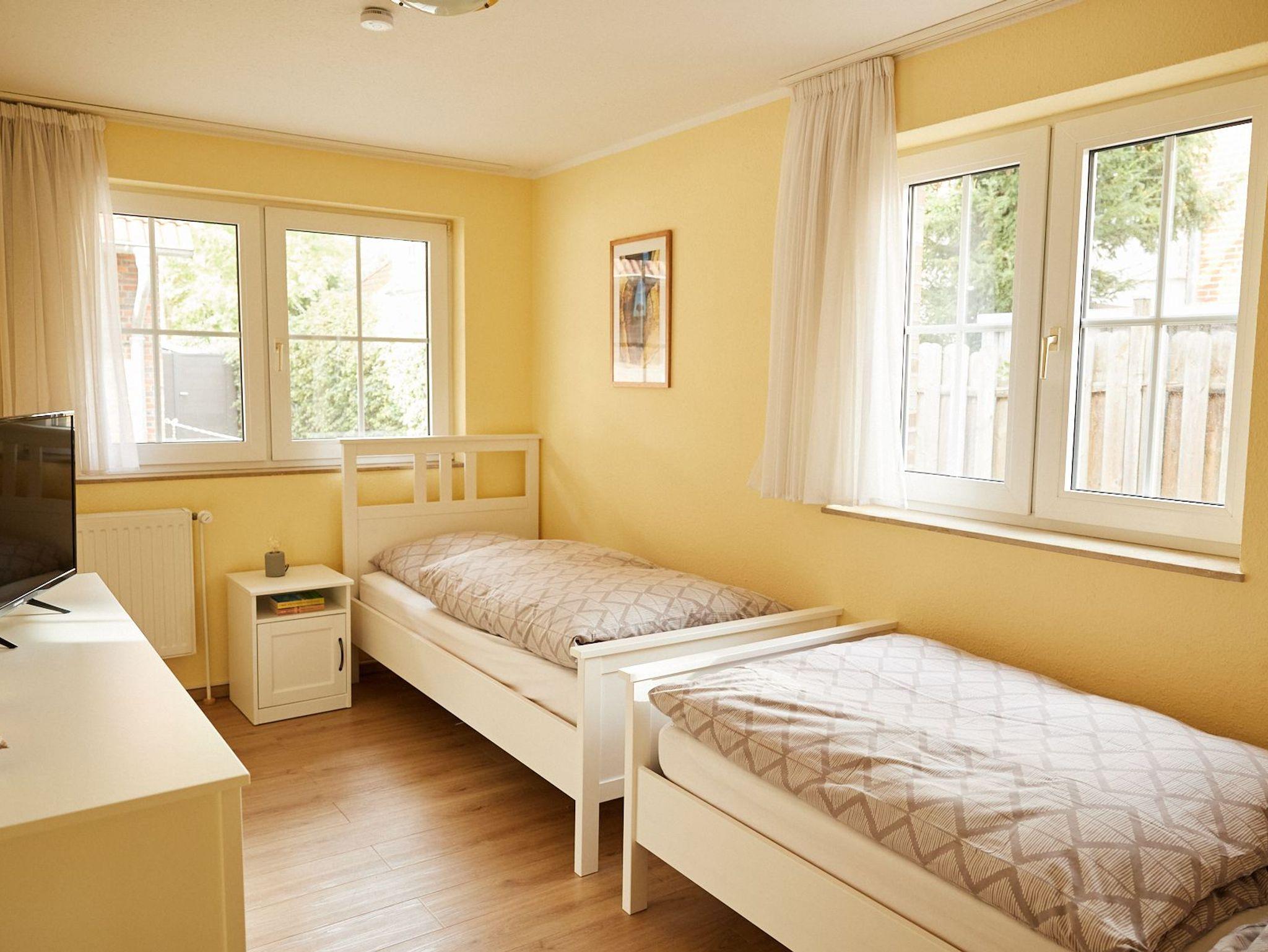zwei Schlafzimmer: 1 x mit Doppelbetten (200 x 200 cm), 1 x zwei Einzelbetten (90 x 200 cm)
